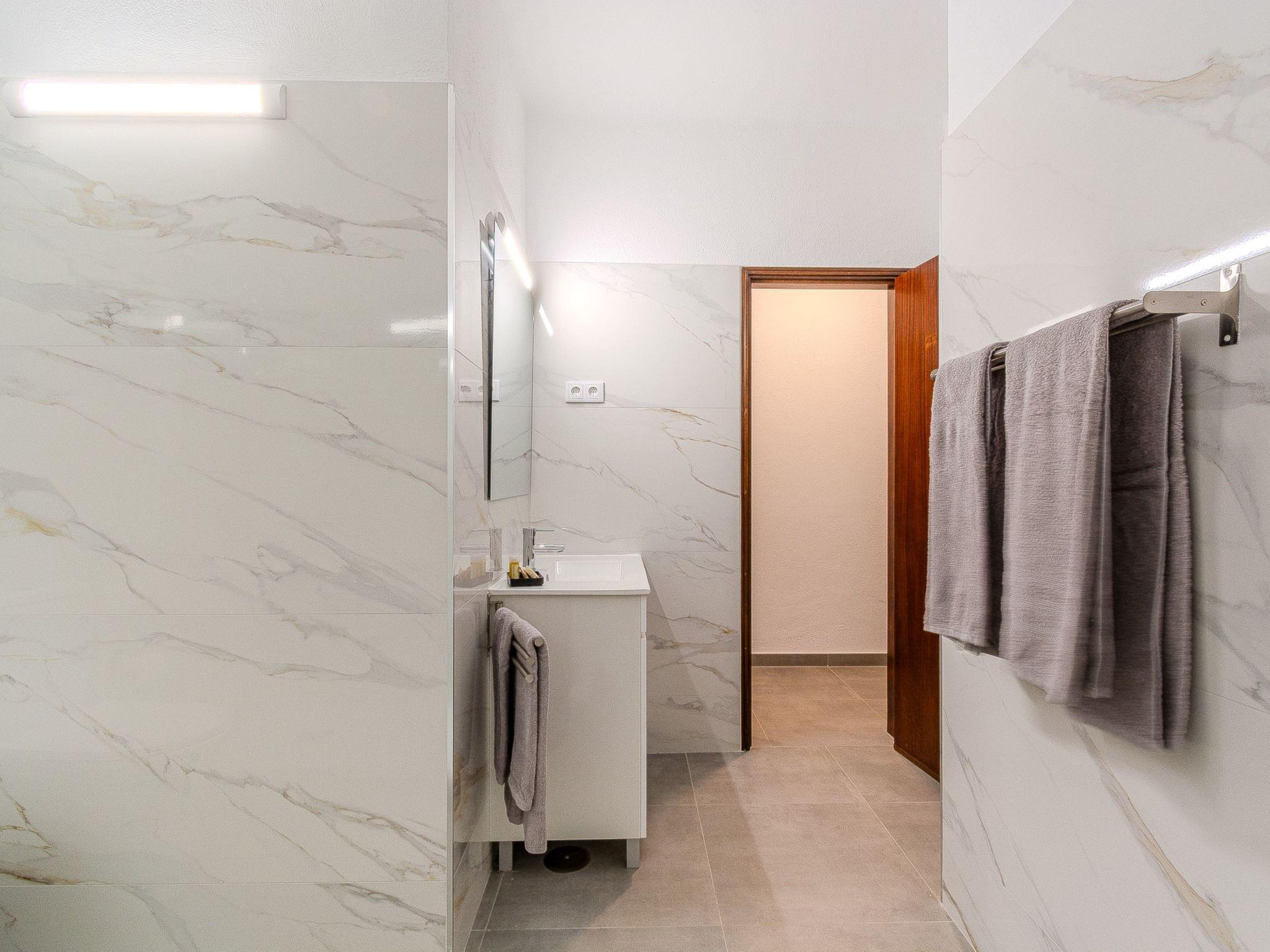 "Amélia - Sunny Way", 4-room villa 100 m2. Very practical and cosy furnishings: living room with dining table, cable TV, flat screen, air conditioning and forced-air heating. 1 room with 2 beds (90 cm, length 200 cm), shower/WC, air conditioning and forced-air heating. 1 room with 2 beds (90 cm, length 200 cm), air conditioning and forced-air heating. 1 room with 2 beds (90 cm, length 200 cm), air conditioning and forced-air heating. Kitchen (4 hot plates, dishwasher, toaster, kettle, microwave, freezer, electric coffee machine). Shower/WC. Small balcony. Balcony furniture. Facilities: washing machine, iron, hair dryer. Internet (WiFi, free). Please note: suitable for families. Fire extinguisher. 47034/AL