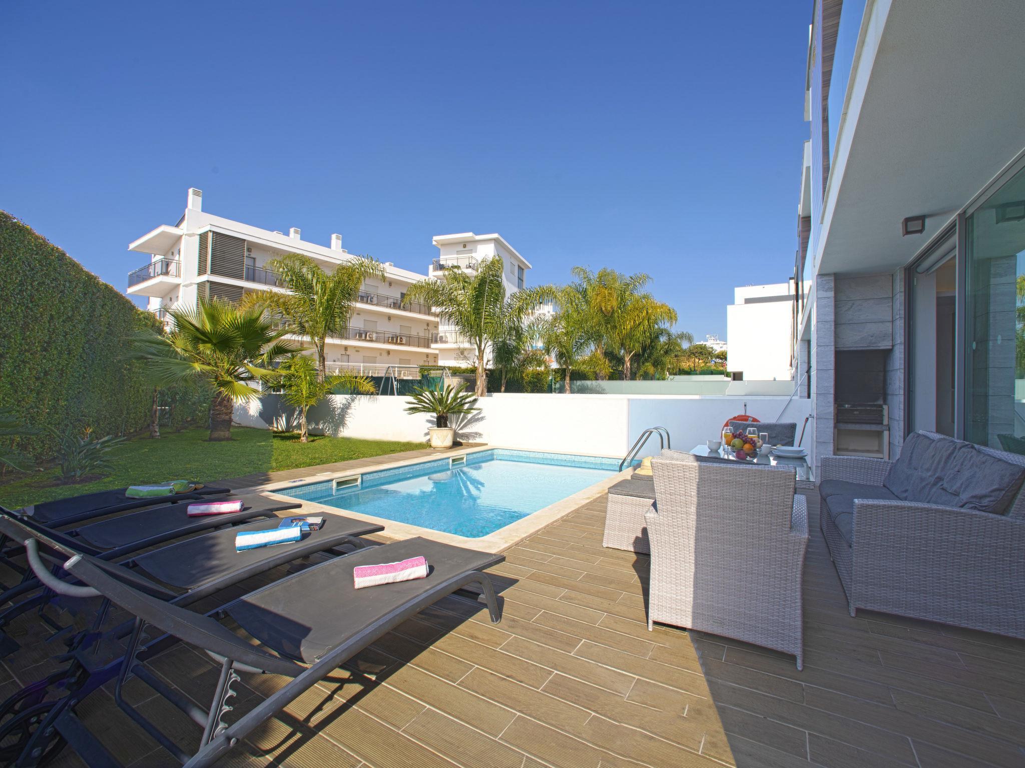 Very modern, cosy villa "Pires". In the resort 2.2 km from the centre of Albufeira, 1.6 km from the sea. Private: swimming pool angular, heated (4 x 8 m, depth 135 - 135 cm, seasonal availability: 01.Jan. - 31.Dec.). Barbecue. In the house: WiFi, air conditioning, washing machine, drying room. Parking at the house. Grocery 350 m, supermarket 1.1 km, shopping centre 1.2 km, restaurant 400 m, bar 800 m, bakery 350 m, café 350 m, bicycle rental 2.7 km, bus stop 280 m, railway station 5.4 km, sandy beach "Praia de Albufeira" 1.6 km, diving center 5.3 km. Marina 4.6 km, golf course (18 hole) 10.5 km, surf school 8.8 km, minigolf 800 m, riding stable 10.2 km, children's playground 1 km. Nearby attractions: Adventure Mini Golfe Park 800 m, Zebra Safri Tours 1.7 km, Algarve Shopping 9.2 km, Zoomarine 10.6 km, Krazy World 15.5 km, Faro Airport 39.5 km. Well-known lakes can easily be reached: Lagoa dos Salgados 13.3 km. Youth groups (under 25) will be required to pay an additional deposit per person on site. Pool heating service (20°-22°C) must be notified to KH 1 week in advance: €350/week. From 7 nights: €50/night extra.