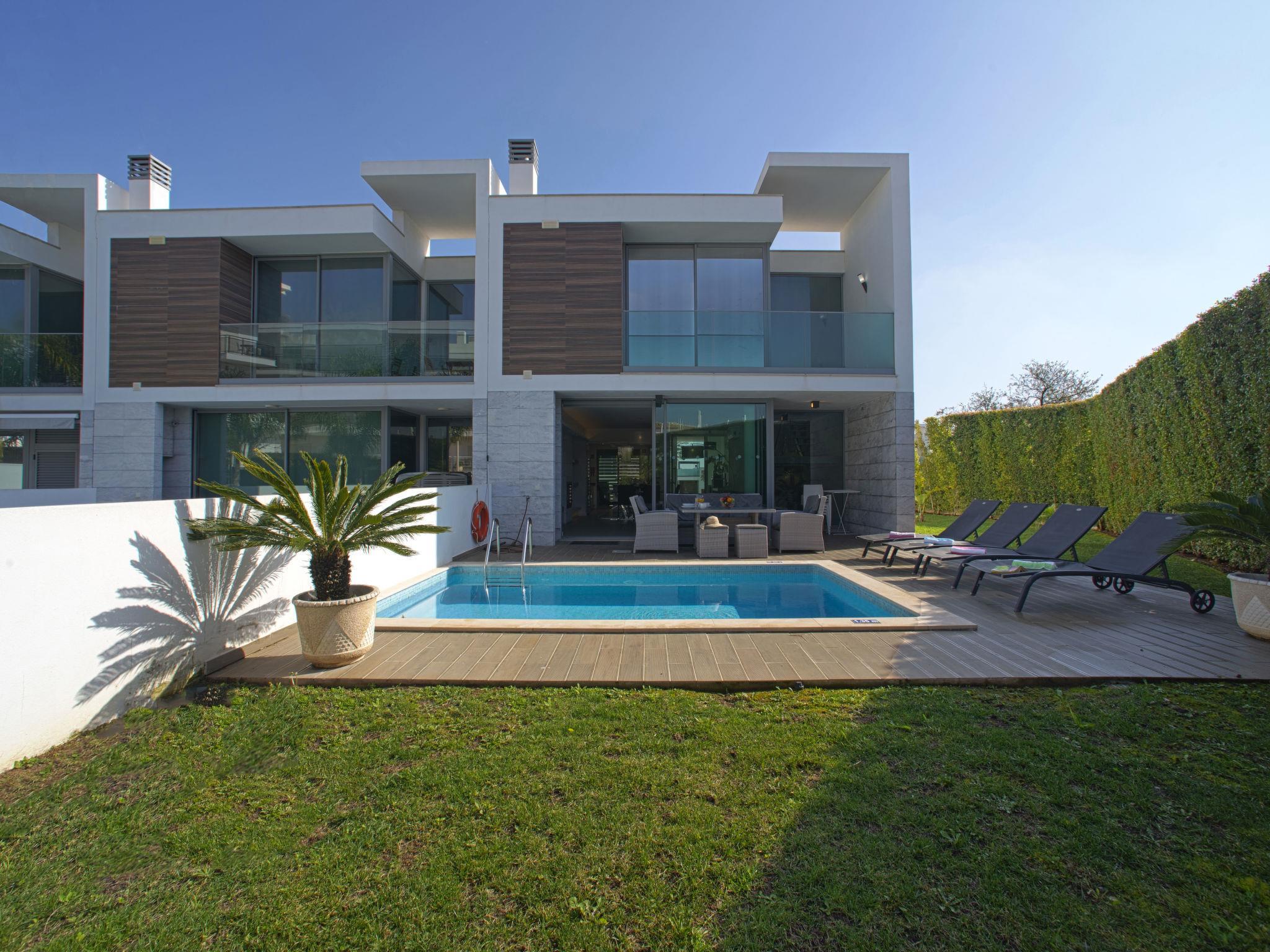 "Pires", 4-room house 150 m2. Comfortable and cosy furnishings: living/dining room with cable TV, international TV channels, flat screen, air conditioning and forced-air heating. Exit to the terrace, to the swimming pool. Kitchen (oven, dishwasher, 4 ceramic glass hob hotplates, toaster, kettle, microwave, freezer, electric coffee machine). Sep. WC. Upper floor: 2 rooms, each room with 1 french bed (160 cm, length 200 cm), air conditioning and forced-air heating. Exit to the terrace. 1 room with 1 french bed (160 cm, length 200 cm), bath/WC, air conditioning and forced-air heating. Exit to the balcony. Shower/WC. Terrace furniture, barbecue, deck chairs (4). View of the resort. Facilities: washing machine, iron, children's high chair, baby cot for up to 2 year olds (extra), hair dryer. Internet (WiFi, free). Parking at the house. Suitable for families. 91647/AL