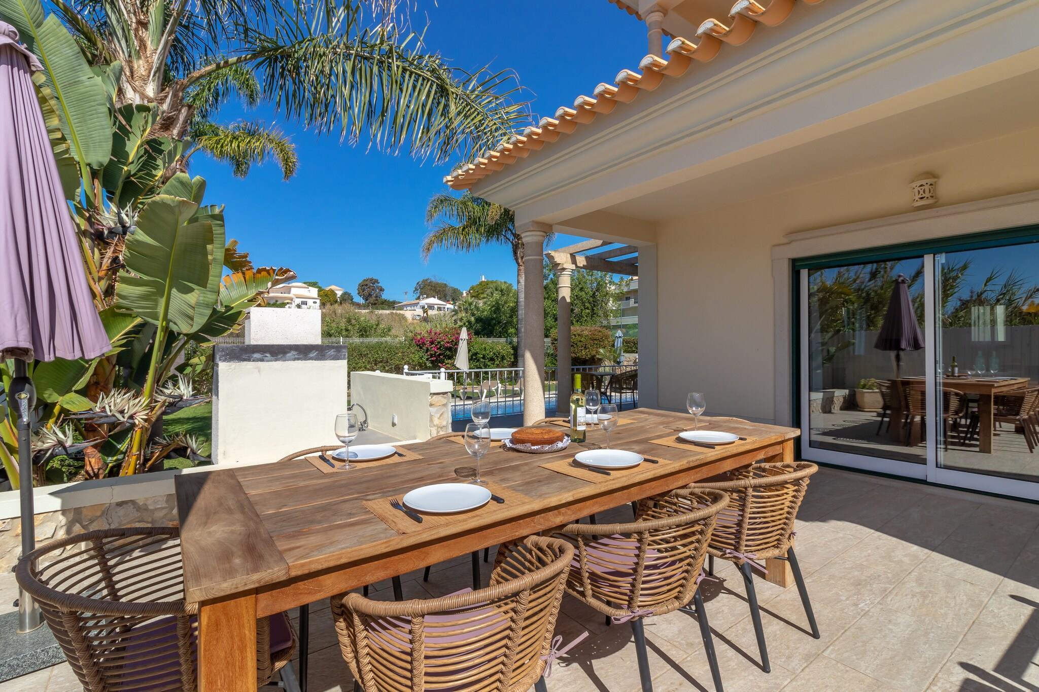 Denna bekväma villa ligger inom gångavstånd från stranden, vilket är trevligt! Och inte vilken strand som helst; det är vackra Praia São Rafael, strax väster om Albufeira. Här kommer du genast att bekanta dig med de vackra stränderna och vikar som Algarve är så känd för. Praia do Evaristo är precis en sådan strand, bara några minuters bilresa från boendet. Perfekt för familjesemestern. Fastigheten ligger i bostadsområdet Sesmarias, 5 km utanför Albufeira. Du kan slå en boll på golfklubben Salgados GC (8 km) och regionen har ett brett utbud av trevliga restauranger.Villan är bekvämt och modernt inredd och utrustad med ett komplett kök. Du har en helt inhägnad trädgård med gräsmatta och flera (delvis) täckta terrasser; perfekt för en avkopplande eftermiddag! Framför villan finns solterrassen med gott om solstolar, flera parasoller och den uppvärmda privata poolen (10 x 5 m) som mittpunkten. Dessutom finns en utomhusdusch och grillen ingår också.