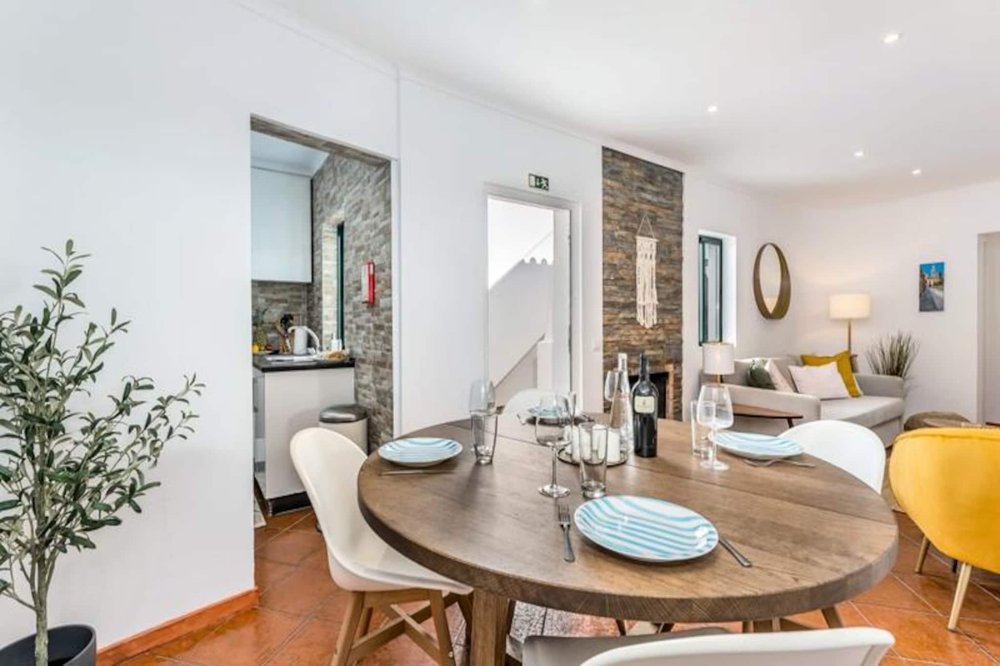 I hjärtat av Albufeiras historiska centrum inbjuder Casa dos Sonhos dig att uppleva den perfekta blandningen av modern komfort och traditionell portugisisk charm. Detta vackert renoverade familjehem, bara några steg från de livliga gatorna och en kort bilresa från Albufeiras huvudstrands gyllene sand, erbjuder en lugn tillflyktsort mitt i Algarves livliga atmosfär. Tänk dig att börja dagen med en kopp kaffe på takterrassen, badad i den varma morgonsolen, eller avsluta den med ett glas vin under stjärnhimlen. Detta hus med tre sovrum och tre badrum rymmer upp till sex gäster och är omsorgsfullt utformat för familjer eller små grupper. Interiören kombinerar modern elegans med kustinspirerade inslag, vilket skapar ett ljust och luftigt utrymme. Varje luftkonditionerat sovrum garanterar en god natts sömn, medan det öppna vardagsrummet och matplatsen flyter smidigt över i en charmig uteplats. Det fullt utrustade köket är perfekt för att laga mat, och takterrassen erbjuder en idyllisk miljö för att äta utomhus eller bara koppla av med panoramautsikt. När du kliver ut omges du av Albufeiras rika historia, kullerstensgator och ett stort utbud av restauranger, butiker och barer. De närliggande stränderna med sin gyllene sand och turkosa vatten är perfekta för solbad, simning eller utforskning av Algarvekustens dramatiska klippor. För den som vill utforska mer erbjuder regionen otaliga attraktioner, från pittoreska byar till golfbanor i världsklass. Oavsett om du söker avkoppling, äventyr eller en smak av portugisisk kultur är Casa dos Sonhos din port till en oförglömlig semester i Algarve. Boka din vistelse idag och skapa minnen för livet i denna förtrollande oas vid havet.