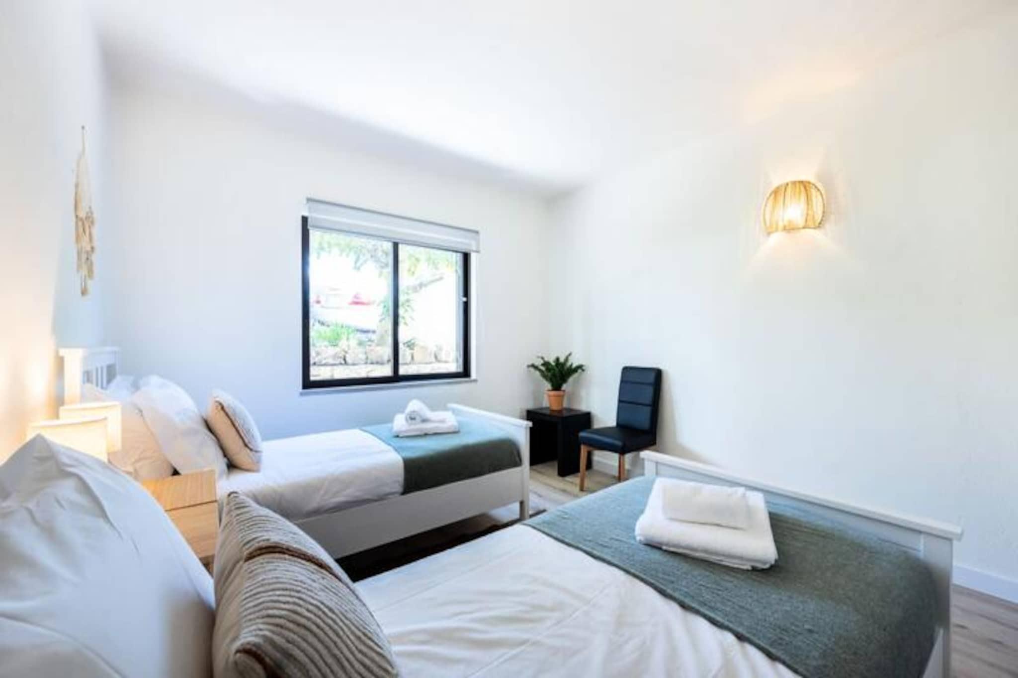 I hjärtat av Algarves gyllene kust erbjuder denna charmiga lägenhet på bottenvåningen i São Rafael en lugn tillflyktsort bara några minuter från Albufeiras pulserande energi. Tänk dig att vakna upp till den milda havsbrisen, omgiven av frodiga trädgårdar, och veta att den fantastiska stranden São Rafael bara ligger fem minuters promenad bort. Oavsett om du söker en lugn tillflyktsort eller en bas för att utforska Algarve, lovar denna fastighet en oförglömlig vistelse. Lägenheten är designad med komfort och avkoppling i åtanke och har två vackert inredda sovrum – ett med en queen size-säng och det andra med två enkelsängar, perfekt för familjer eller vänner. Det rymliga vardagsrummet, komplett med en bäddsoffa, erbjuder extra sovplats, medan det fullt utrustade köket inbjuder dig att laga läckra måltider med färska lokala ingredienser. Moderna bekvämligheter som gratis Wi-Fi, platt-TV och luftkonditionering garanterar en bekväm och praktisk vistelse. Gå ut till din privata trädgård, en perfekt plats för morgonkaffe eller ett kvällsglas vin. Bortom lägenheten lockar stranden São Rafael med sin gyllene sand och kristallklara vatten, perfekt för solbad, bad eller bara avkoppling. Området är fullt av utmärkta restauranger och barer som erbjuder en smak av autentisk portugisisk mat och ett pulserande nattliv. För de som vill utforska ligger Albufeiras gamla stadsdel, med sina charmiga kullerstensgator och livliga marknader, bara en kort bilresa bort. Äventyrslystna kan njuta av båtturer, vattensporter eller ett besök i den närliggande parken Zoomarine, medan naturälskare kommer att uppskatta de natursköna kustlederna. Oavsett om du är här för att koppla av på stranden, utforska Algarves skatter eller njuta av dess kulinariska läckerheter, erbjuder denna lägenhet den perfekta hemmabasen. Boka din vistelse idag och skapa bestående minnen på en av Portugals vackraste destinationer.