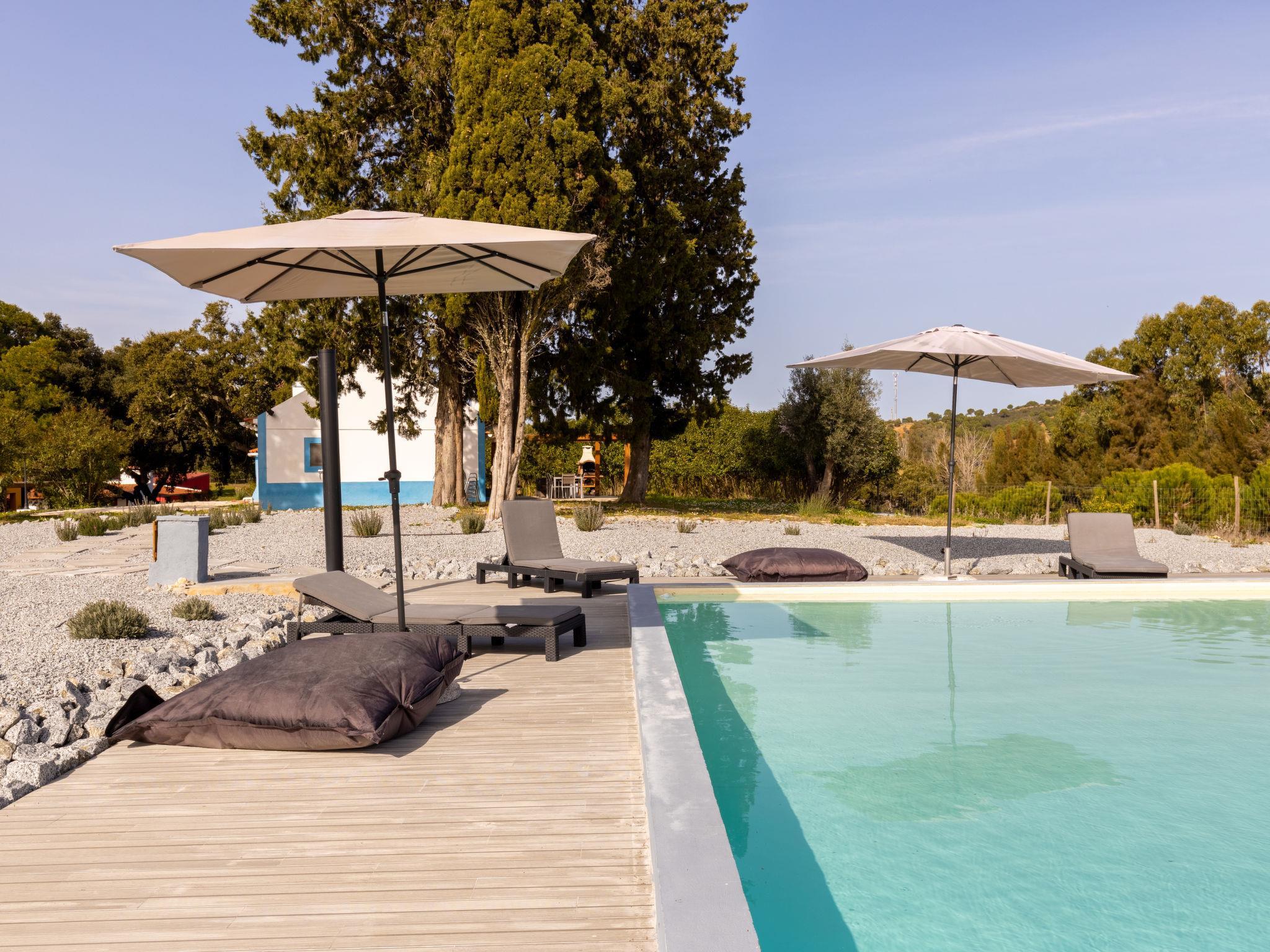 Very beautiful country house "Quinta de Santa Emilia", renovated in 2021. 5 houses in the residence. In the hamlet Monte do Vale, in a secluded position, 44 km from the sea, in the countryside, in the woods. For shared use: property 37 ha with lawn, lawn for sunbathing, natural pond, swimming pool angular (14 x 6 m, depth 90 - 200 cm, seasonal availability: 01.Jan. - 31.Dec.). Outdoor shower, terrace. In the house: lounge, billiard table, playroom, washing machine (for shared use). Motor access (3 km via unmade road). Parking on the premises. Supermarket 16 km, shopping centre 40 km, restaurant 7 km, sandy beach "Comporta" 44 km. Nearby attractions: Alcácer do Sal 15 km, Setúbal 40 km, Aeroporto Lisboa 80 km. The owner does not accept any youth groups. Please note: the owner lives on the same property. Motorway 100 m from the property. Additional accommodations can be booked. Property ref. PT7580.1&.1.2.3 is situated on the same property.