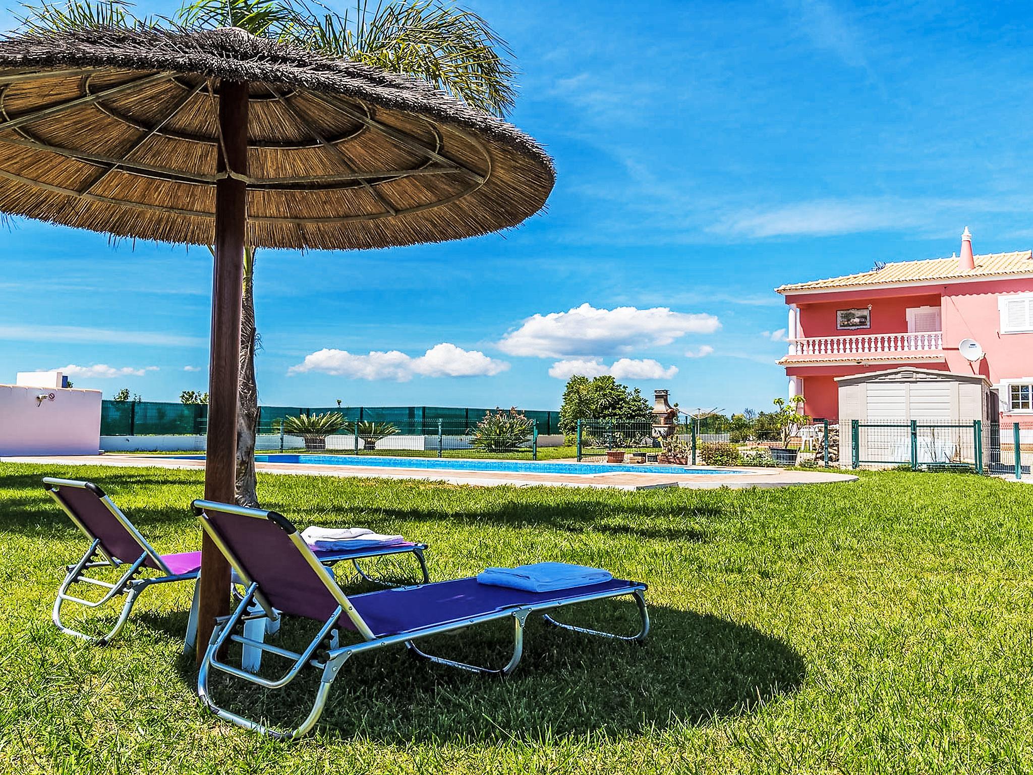 Villa "Casa das Amendoeiras", 2 storeys, detached. 9.3 km from the sea. Private: property 2'000 m2 (fenced), beautiful garden to relax, swimming pool angular, heated, fenced (depth 80 - 150 cm, seasonal availability: 01.Jan. - 31.Dec., extra) with salt-electrolysis pool-cleaning system. Outdoor shower, barbecue. In the house: WiFi, air conditioning, burglar alarm system, washing machine. Airport transfer. Parking (for 5 cars). Shop 6.2 km, grocery 5.6 km, supermarket 6.2 km, shopping centre 10.7 km, restaurant 5.6 km, bar 9.3 km, bakery 6.2 km, café 5.6 km, internet café 9.3 km, pub garden 9.3 km, bus stop 2.5 km, sandy beach "Praia de Armação de Pêra" 9.3 km. Golf course (9 hole) 4.6 km. Nearby attractions: Zoomarine 9.3 km, Slide e Splash 19.7 km, Algarve Shopping Guia 10.7 km.