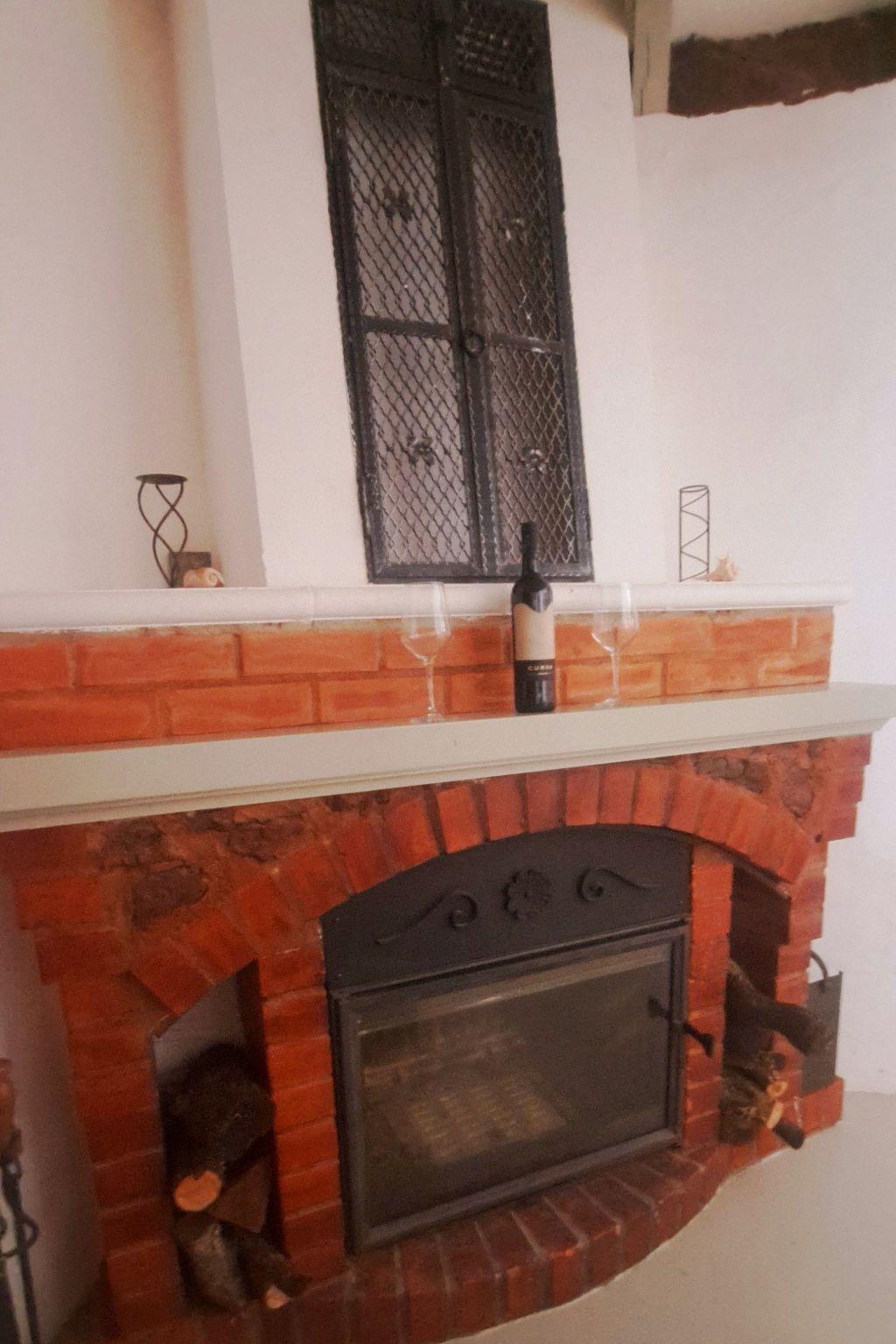 On the ground floor there is a large living room: dining area with fireplace and open-plan kitchen. A room with a metal double bed (140 cm) and a sofa bed (for 2 people) is separated from the kitchen by a sliding door. From the kitchen you can access the sheltered patio, where the outside staircase to the roof terrace is located. Garden furniture is available.