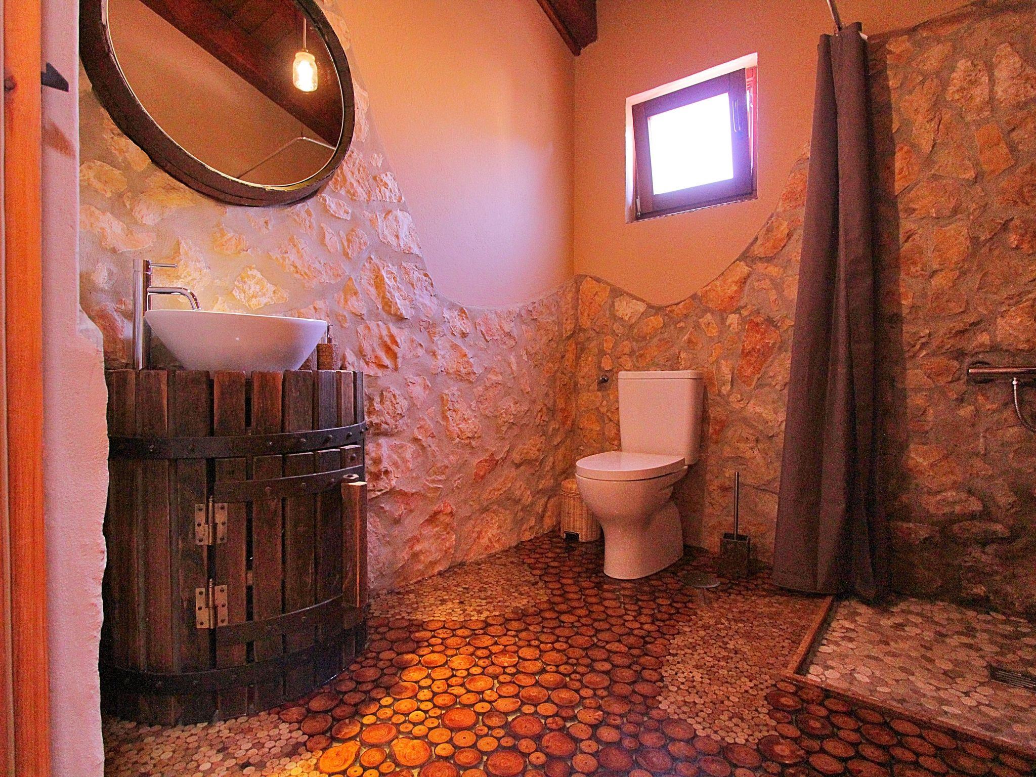 for lounging, sitting, or doing yoga. On the other side we have a tiled outside area – for extra sun exposure in the morning and on windy days. Through this side you can also access your vehicle’s parking area, located just 30 meters away from the apartment, at the end of a wide, slate-paved path. Our guests also have access to several social areas such as the beautifully constructed yoga platform and the bio-dynamic farm.