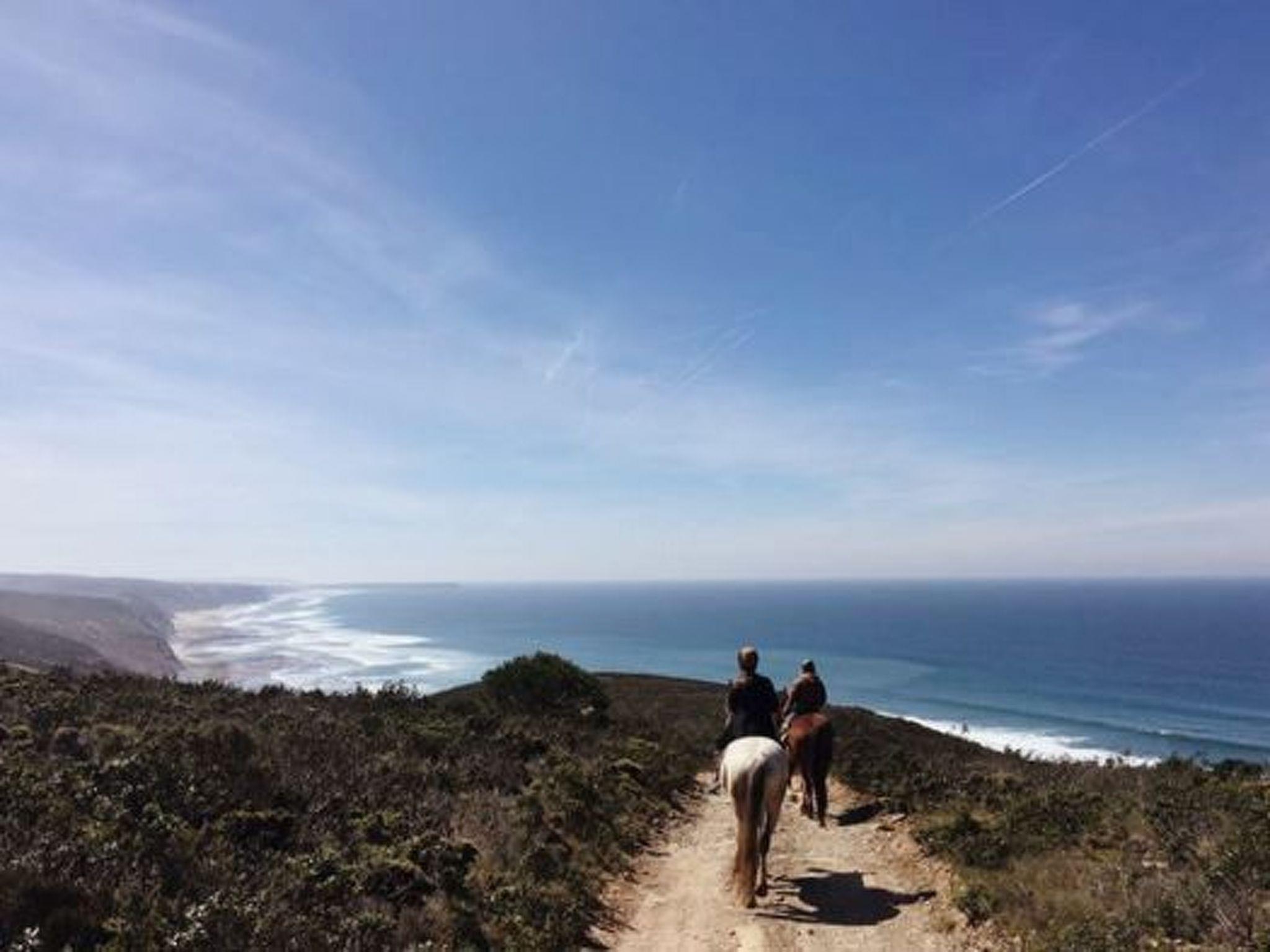 During the day and especially at night it is so quiet you can hear a pin drop, the nocturnal animals sing their songs and the stream that divides the Algarve and the Alentejo trickles endlessly over the land. Apart from our houses that are built as ecologically as possible we have a beautiful biodynamic garden that produces lovely food for you to enjoy. Great walks and strolls by the river stream can be undertaken. If you want some more movement but not too much you can take a bike, walk or drive to Odeceixe, a little sleepy town where time has stood still. Around the area traditionalism is very tangible, agriculture and fishery are one of the main activities. An area where donkeys are still ploughing the fields and the fish is served straight from the boat onto your plate. Odeceixe Beach is a 1st price winning beach in the huge Natural Park that surrounds it. The beach is great for surfing, body boarding and sunbathing. It lends itself for playing lots of games and because of its width during low tide it’s almost a round beach. The stream that runs over our land flows into the sea. At the riverside the ocean’s waves are cancelled out and harnesses great opportunity for families with smaller kids. Recently the Rota Vicentina has been installed, an unbelievable experience for trekking minded people. A trail that runs right by our land goes for hundreds of kilometres over the coastline and partly inland as well. Whether you're looking for rest, nature or an activity holiday this is the right spot.