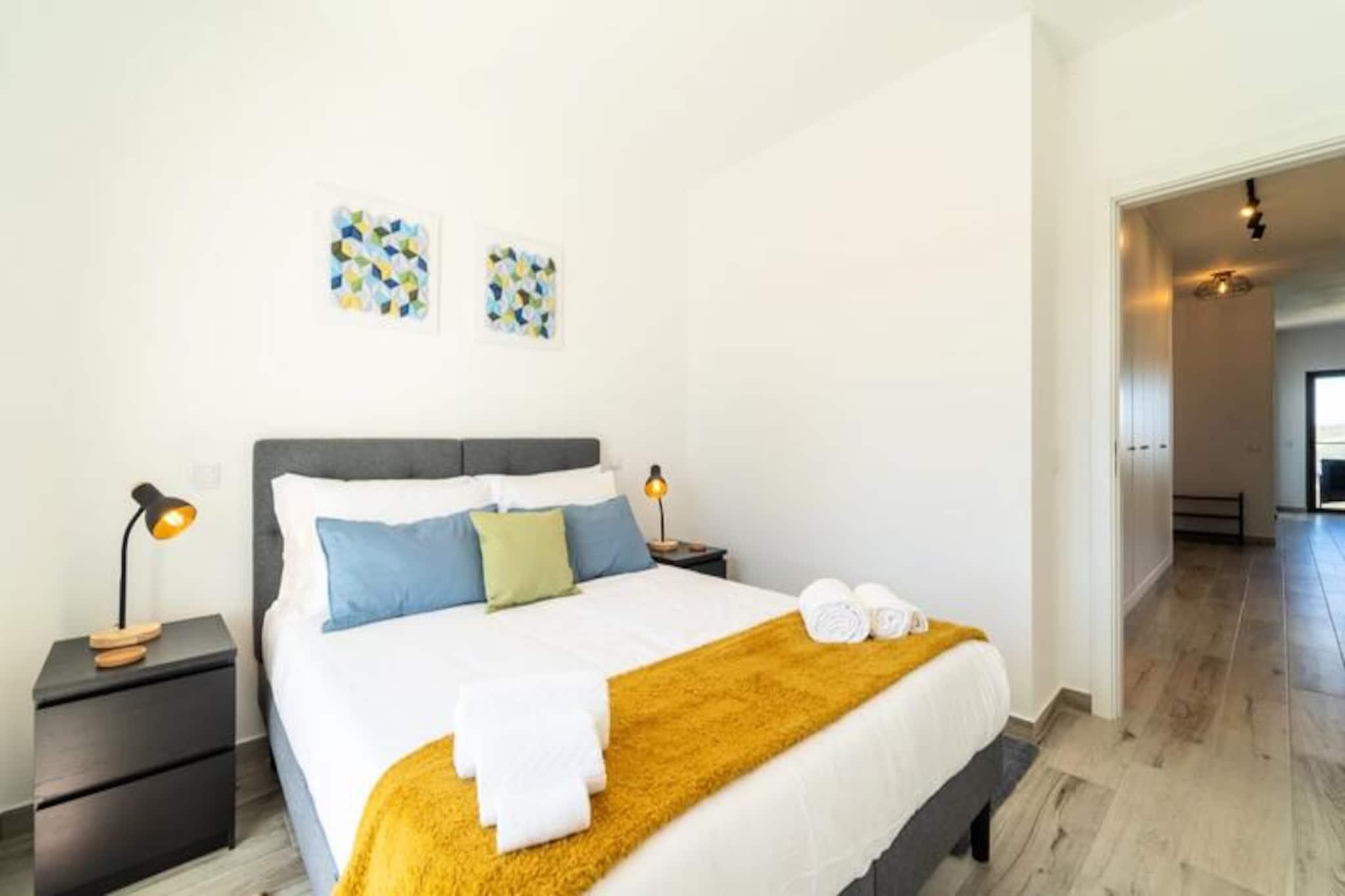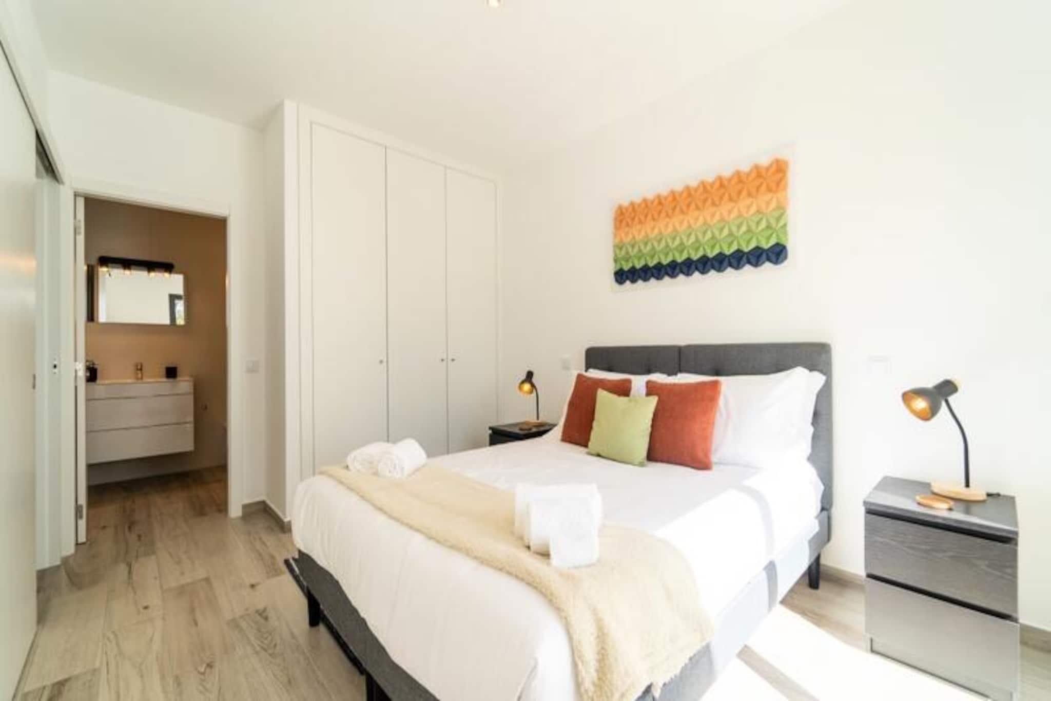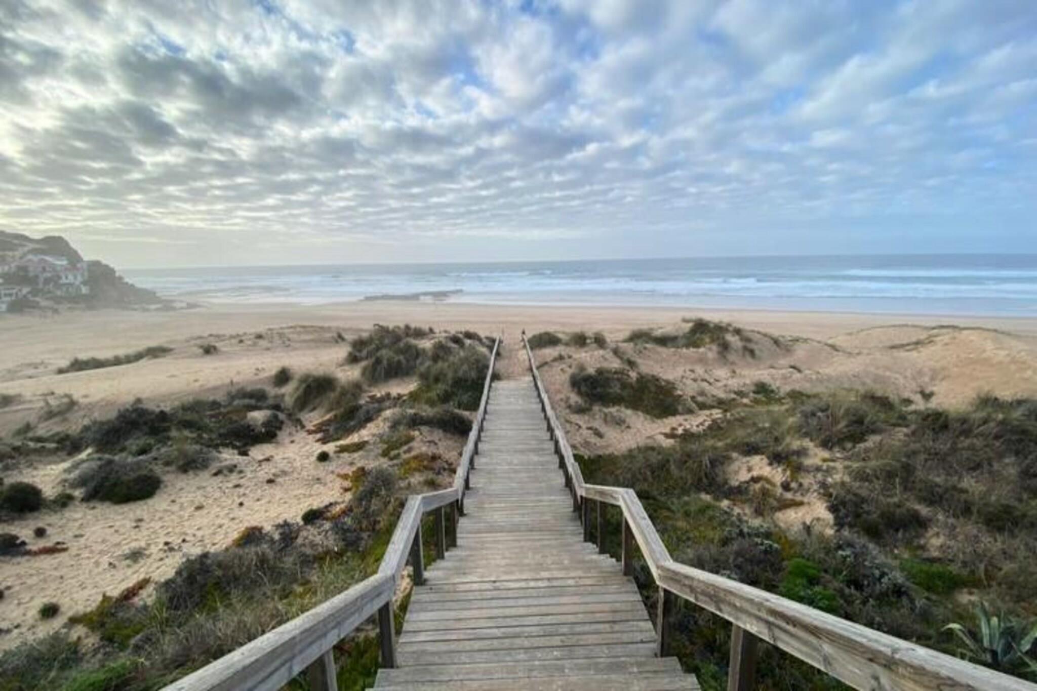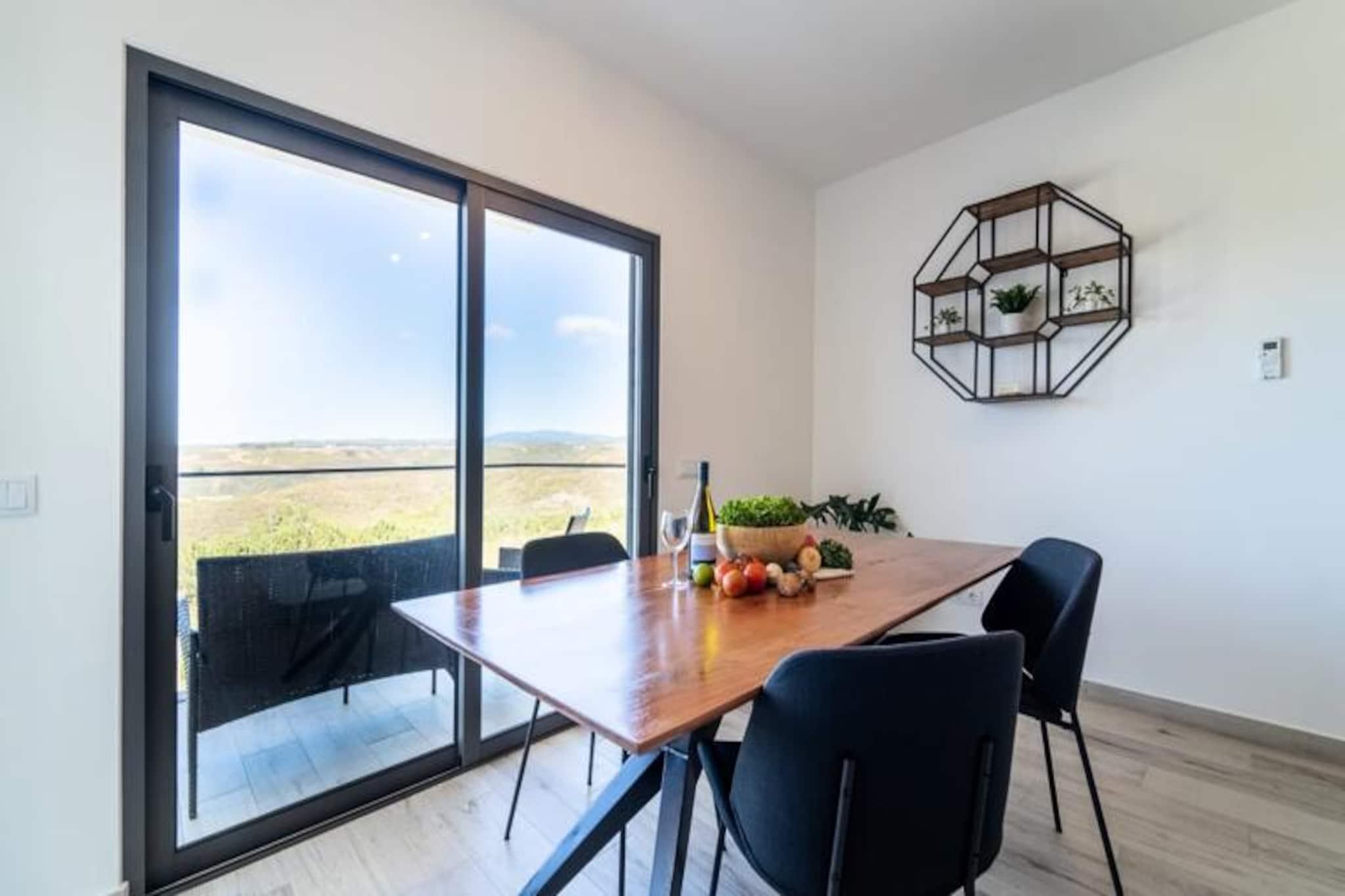 Väck dina sinnen i denna fridfulla lägenhet med 2 sovrum och 2 badrum, belägen i utkanten av Portugals hisnande naturpark Costa Vicentina. Med panoramautsikt över floden Amoreira och våtmarkerna erbjuder denna oas en perfekt blandning av lugn och ro och naturlig skönhet. Bara en kort promenad från den Blå Flagg-belönade stranden Monte Clérigo och den orörda stranden Amoreira, kommer du att befinna dig omgiven av den orörda charmen på Algarves västkust. Oavsett om det är soluppgångens gyllene glöd eller solnedgångens eldiga nyanser, erbjuder de två terrasserna en plats på första parkett till naturens dagliga skådespel. \n\nInuti är lägenheten omsorgsfullt utformad för komfort och stil. Det stora sovrummet har ett eget badrum med badkar och bidé, medan båda sovrummen är prydda med queen size-sängar, lyxiga portugisiska sängkläder och originalkonstverk av en lokal konstnär. Vardagsrummet inbjuder till avkoppling med sin plyschiga bäddsoffa och 50\