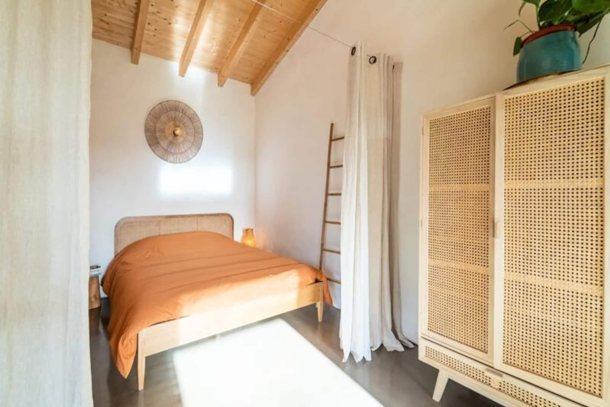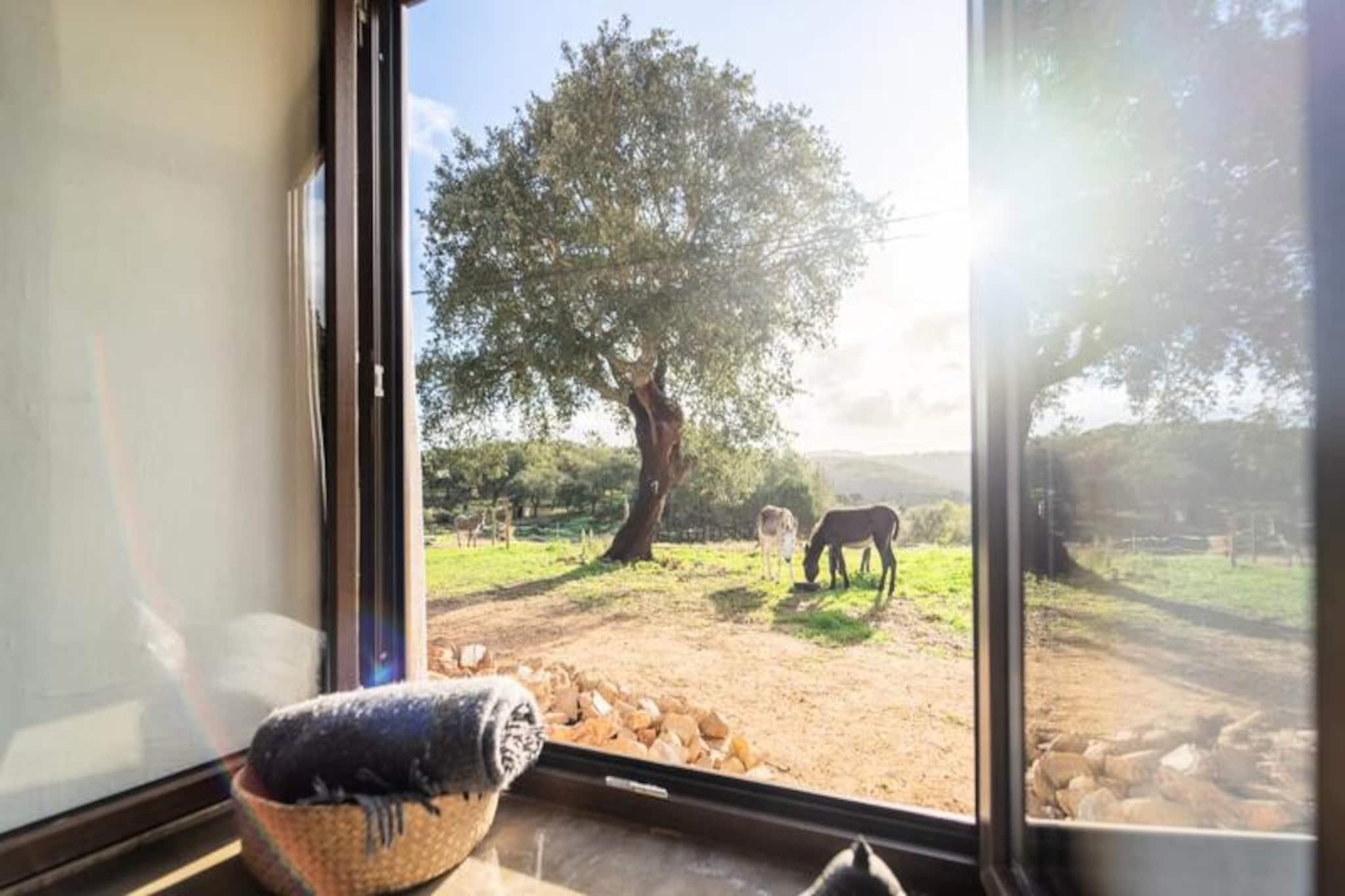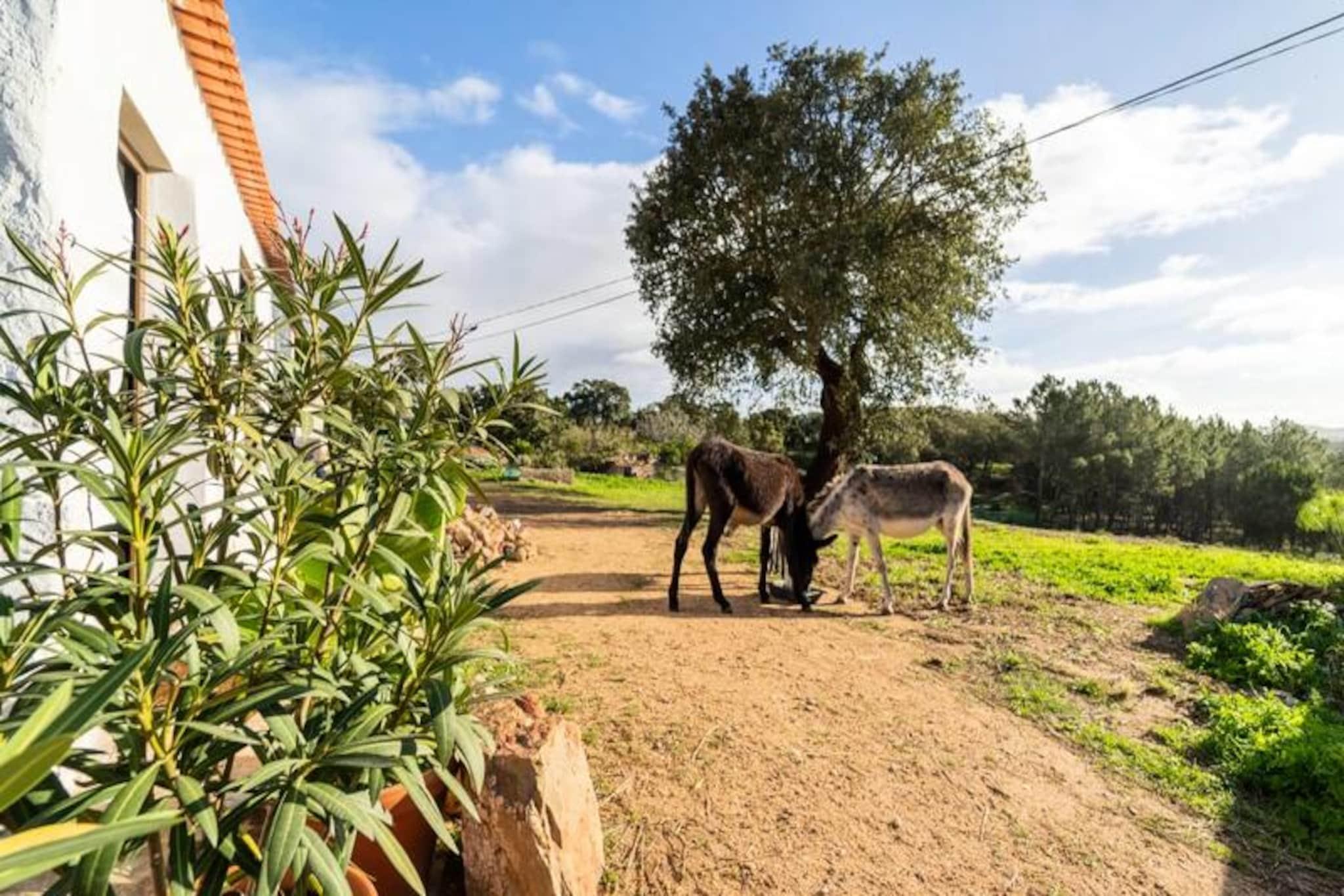 Mitt i Algarves fridfulla landsbygd, bara några minuter från den charmiga staden Aljezur, ligger en härlig studio på bottenvåningen som utlovar en tillflyktsort fylld av lugn och naturlig skönhet. Här börjar morgnarna med det mjuka praslandet av löv och enstaka hälsningar från gårdens vänliga åsnor, medan kvällarna är perfekta för att varva ner på den privata verandan under en stjärnklar himmel. Detta är en plats där naturens rytm sätter tonen för din semester. \n\nStudion är omsorgsfullt utformad för att rymma upp till fyra gäster, med en rymlig dubbelsäng och en mezzanin som är perfekt för två barn. Stora fönster översvämmar vardagsrummet med ljus och erbjuder vidsträckt utsikt över landskapet. Ett fullt utrustat kök inbjuder dig att laga mat med färska lokala råvaror, medan det privata badrummet garanterar komfort och bekvämlighet. Sängkläder, handdukar och Wi-Fi ingår, vilket gör din vistelse så smidig som möjligt. \n\nBeläget nära Aljezur befinner du dig i hjärtat av naturparken Costa Vicentina, en region som är känd för sina dramatiska klippor, orörda stränder och surfförhållanden i världsklass. Oavsett om du utforskar Aljezurs kullerstensgator, provar lokala delikatesser som Medronho eller honung, eller vandrar längs kustleder med ljudet av Atlantens vågor som soundtrack, erbjuder detta område oändliga möjligheter till äventyr och avkoppling. \n\nQuinta da Paz är mer än bara ett ställe att bo på; det är en inbjudan att uppleva Algarves autentiska charm. Med sin lugna miljö, vänliga lantbruksdjur och närhet till både natur och kultur är denna studio perfekt för familjer eller par som söker en minnesvärd flykt. Låt Aljezurs skönhet och Quinta da Pazs värme skapa bestående semesterminnen.