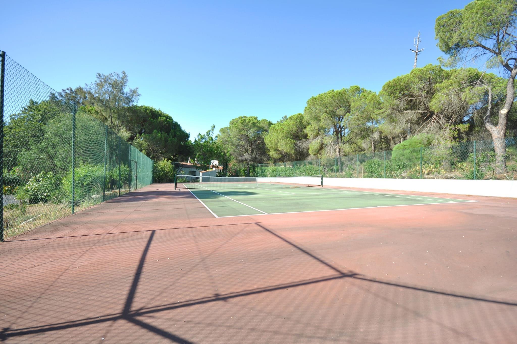 Comfortable & spacious, 4 bedroom traditional Villa with feature pine beam ceilings, terracotta tiled floors and open fire. Set in the Ria Formosa National Park with 4 acres of mature gardens which includes an orchard, the property boasts a large swimming pool on its own very large patio area, acrylic Tennis court and three hole golf green. This feature includes an all-weather three hole putting/chipping green with fringe surround and three nylon tee surfaces set at different elevations around it and Huxley Rotanet for practice of full irons and woods shots off a 4th Tee. The property is located within an area known as 'The Golden Triangle' (between Almancil, Quinta do Lago and Vale do Lobo) and is convenient for the exclusive sports and shopping facilities of Quinta do Lago (2 miles) and Vale do Lobo (3 miles) with its additional golf, tennis and beach restaurants and the town of Almancil (2 miles). All these features make this property ideal both for families and golf enthusiasts. The accommodation consists of: - Fully fitted kitchen - Living room - dining room - 1 en-suite bedroom with double bed - 1 en-suite bedroom with twin beds (can be put together) - 2 Twin bedrooms (one of which also has a sofa bed which can convert to a third full size single bed and a private patio) - 3 bathrooms (2 en-suite) Features: - Large Private pool - Large private gardens with orchard parking - Garden furniture (table, chairs, sun loungers and parasol) - BBQ - Microwave - Washing machine - Dishwasher - Satellite TV - DVD - Wi-Fi Internet - Air conditioning - Tennis court - 3 hole golf green