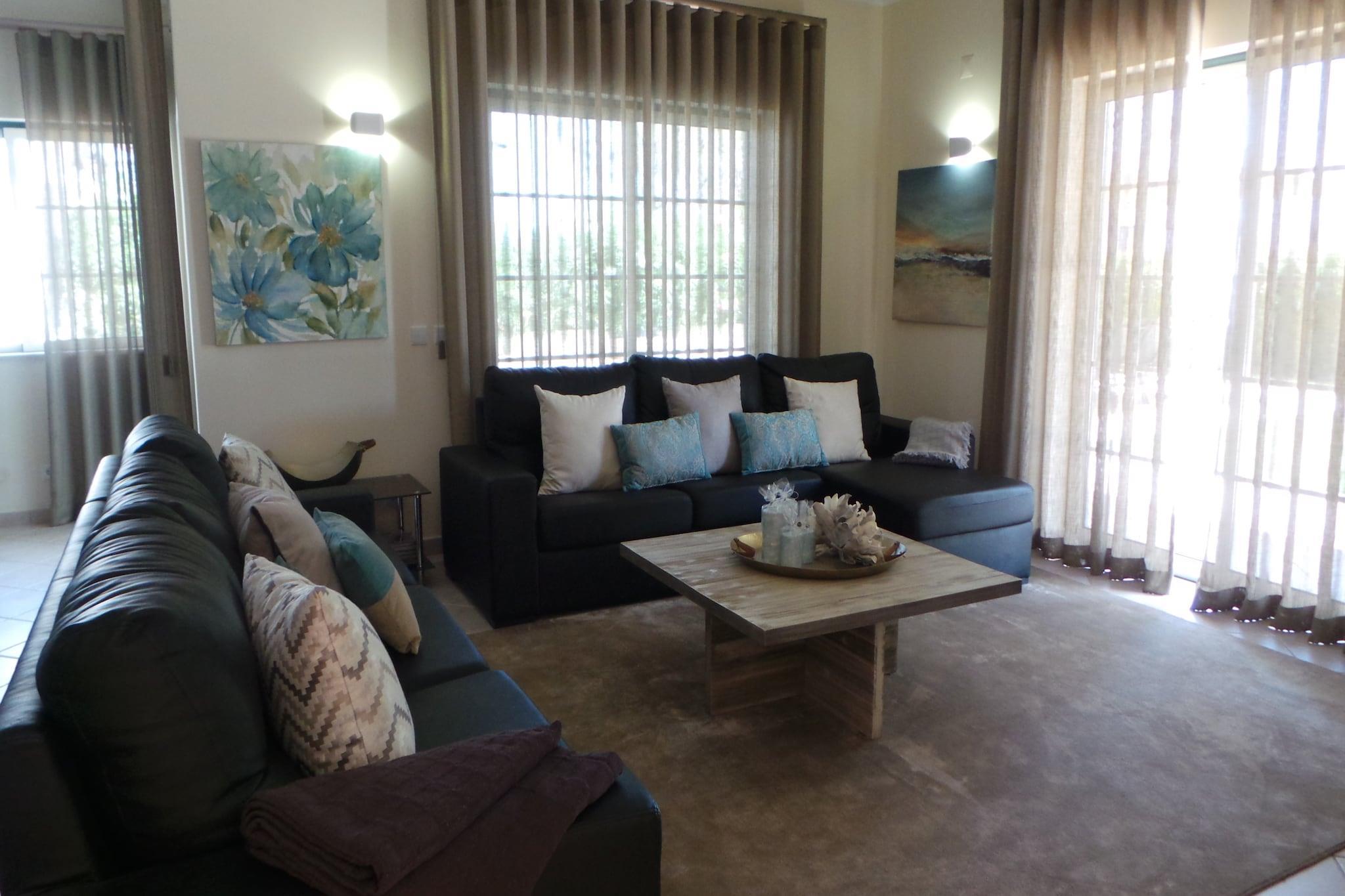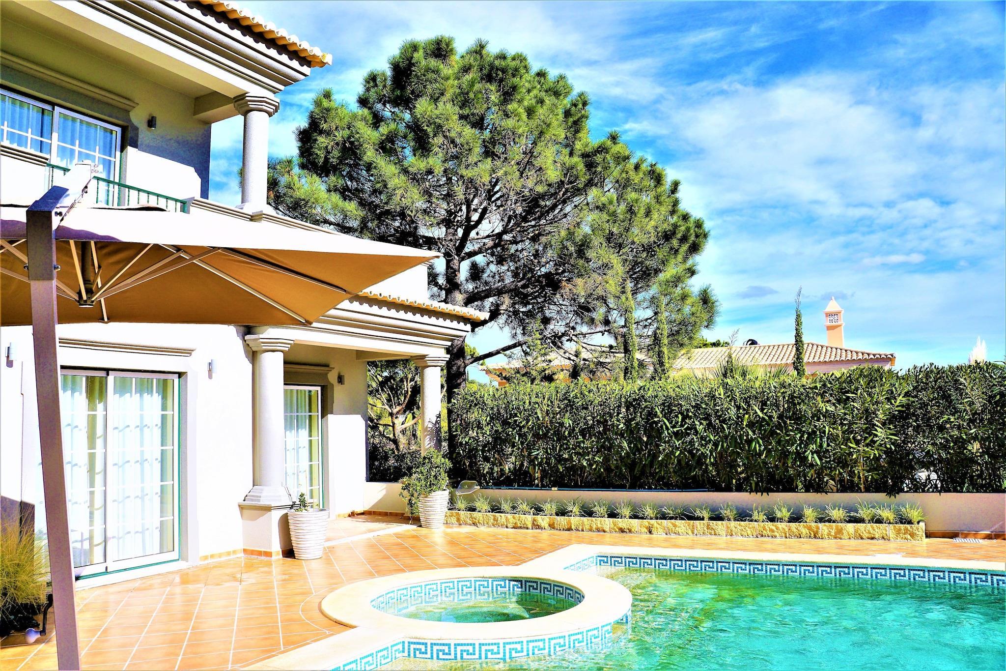 Lyxig, nyrenoverad villa med 4 sovrum, smakfullt inrett, med pool, terrasser och trädgård belägen mellan Quinta do Lago och Vale do Lobo, 5 minuters promenad från stranden. Området är omgivet av många golfbanor. Luftkonditionering i alla sovrum och i vardagsrum / matsal. Gratis höghastighets wifi. Ett idealiskt läge för familjer med barn. Villan har ett fullt utrustat kök, vardagsrum med öppen spis och stora skjutdörrar till terrassen vid poolen. På baksidan av villan kan du njuta av grillplatsen med bord och stolar med utsikt över trädgården. Från sovrummen på bottenvåningen går du genom franska dörrar direkt på terrassen med solstolar och parasoll vid poolen. Sovrummen på 1: a våningen har egna balkonger med bekväma stolar. Alla rum har klädkammare, luftkonditionering och rymliga badrum med massagebad. Det stora sovrummet har en TV och värdeskåp. Från takterrassen kan du se havet, stranden och de omgivande tallskogarna. Terrassen har bord och stolar för att njuta av solnedgången. Quinta Shopping Center och Quinta Gym Fitness Center ligger 8 minuters bilresa bort. Nationalparken Ria Formosa ligger inom gångavstånd för oändliga promenader.