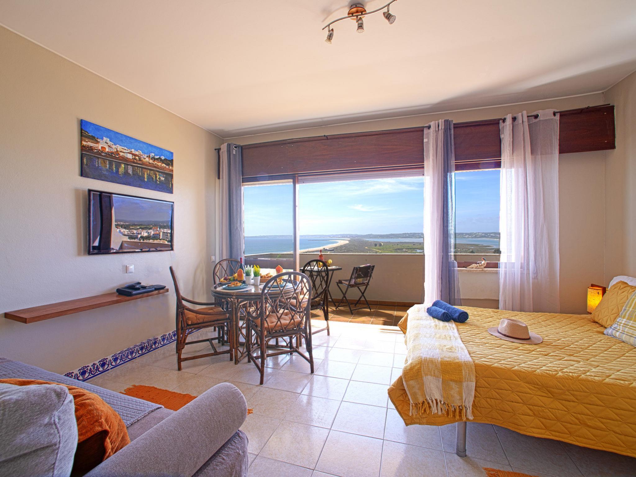 "Alvor Bay Dream", 1-room studio 26 m2, on the upper floor. Partly renovated in 2023, very practical and cosy furnishings: with 1 double bed (150 cm, length 195 cm), dining table, cable TV and flat screen. Exit to the balcony. Open kitchen (oven, 2 ceramic glass hob hotplates, toaster, kettle, microwave, freezer, electric coffee machine). Shower/WC. Terrace furniture. Marvellous panoramic view of the sea. Facilities: iron, children's high chair, baby cot for up to 3 year olds, hair dryer. Internet (WiFi, free). Please note: suitable for families. Fire extinguisher. 142310/AL