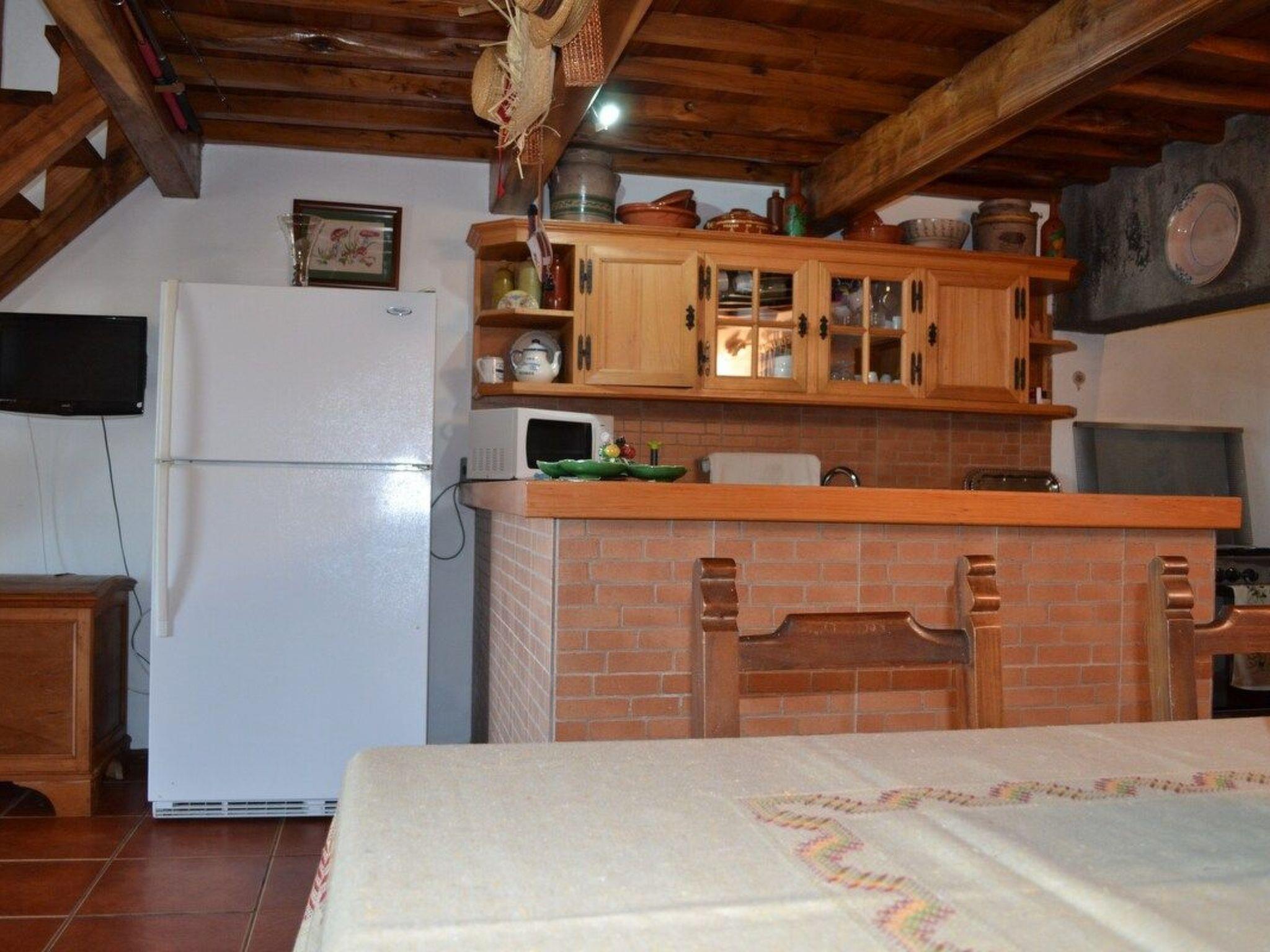 This rustic T2 house has a bedroom with plasma TV and a kitchenette complete with fridge, microwave, toaster, coffee maker, tea and other kitchen utensils.