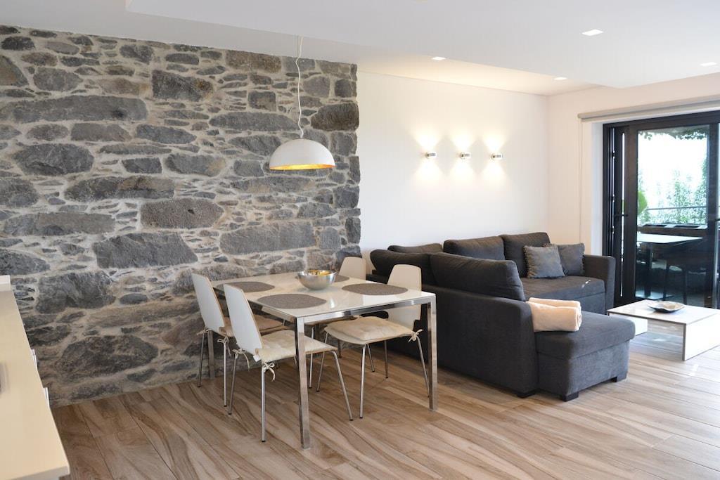 Lägenhet Villa Rosa: Ursprungligen stod en gammal herrgård från Madeira med tjocka basaltväggar på denna plats. Byggnadens skick, liksom våra höga krav på arkitektur och kvalitet, uteslöt en enkel renovering. Istället valde vi en symbios av modern arkitektur och bevarandet av de karakteristiska basaltstensmurarna. Projektet slutfördes i april 2016. Villa Rosa, som ligger på bottenvåningen, är den enda lägenheten i komplexet med två sovrum och två badrum. En rymlig, traditionell innergård framför huset inbjuder till avkoppling. Perfekt för familjer med barn eller två par.