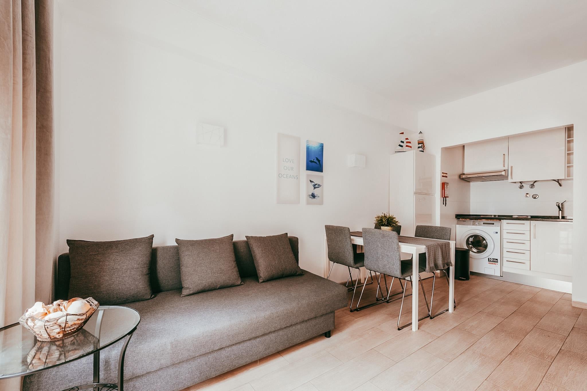 , öppet kök(vattenkokare, brödrost, kaffebryggare, mikrovågsugn, kylskåp, frys, ), ardags- och matrum(bäddsoffa, TV, matbord), sovrum(dubbelsäng), badrum(dusch, handfat, toalett ), Tillgång till Internet, tvättmaskin, balkong, strykjärn