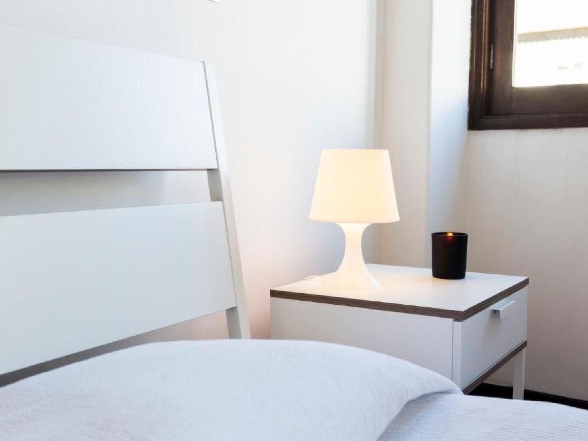 The main bedroom on the upper floor is equipped with a double bed, chest of drawers and wardrobe. It has a raised window, from which you can observe the entire architectural configuration of the historic center of Aveiro.