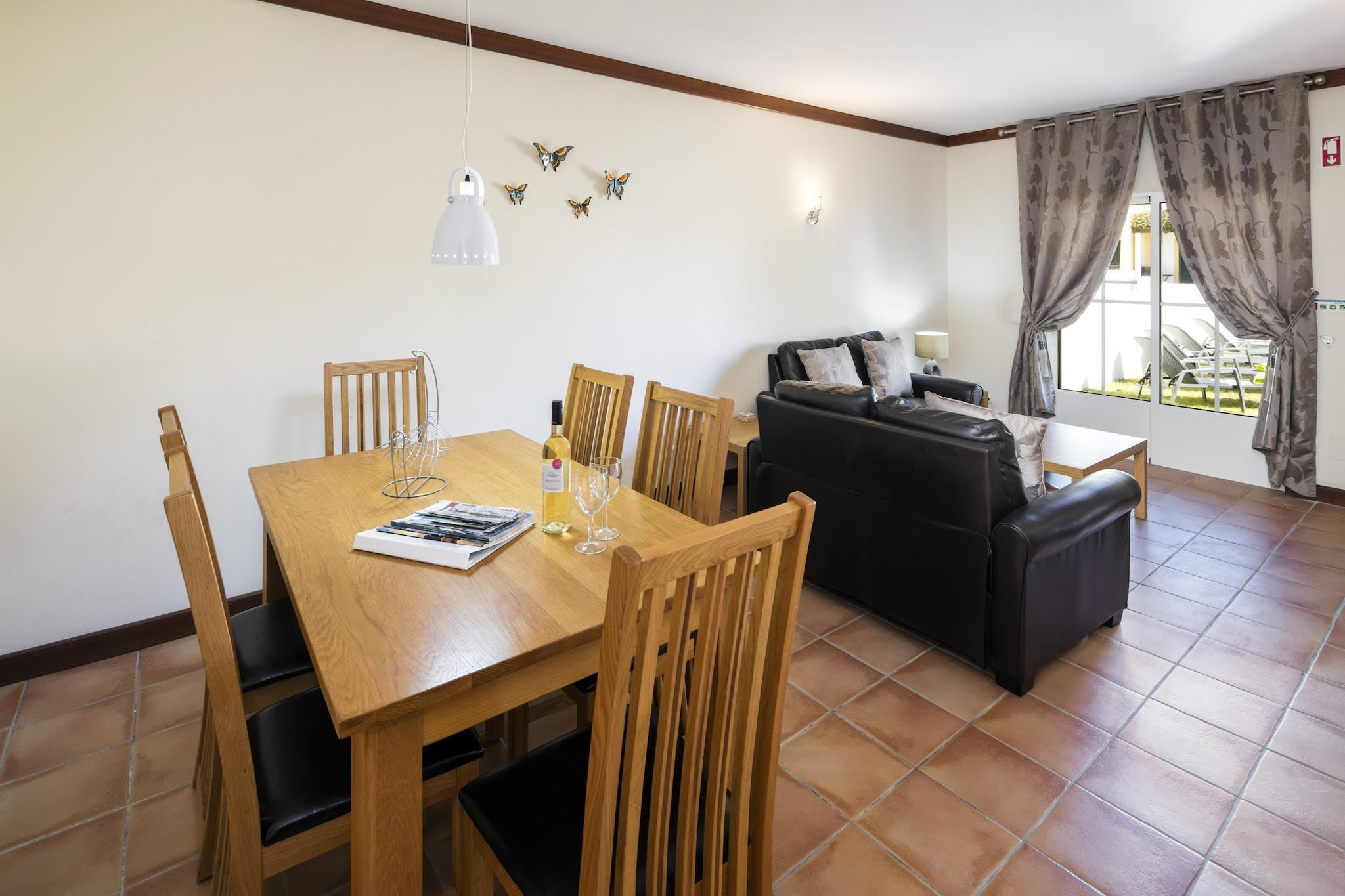 Välkommen till din drömresa i den charmiga kuststaden Benagil, där modern komfort möter hisnande havsutsikt. Detta förtjusande semesterhus är en idyllisk tillflyktsort för familjer, par eller grupper av vänner som söker en avkopplande flykt. Bara en lugn 190-meters promenad från Praia de Benagils gyllene sand, inbjuder denna fastighet dig att sola dig, utforska den fantastiska kustlinjen och föryngra dig i en fridfull miljö. För dem som är ivriga att utforska, inkluderar närliggande attraktioner den pittoreska stranden Praia do Carvoeiro, livliga lokala marknader, natursköna vandringsleder och golfbanor i världsklass, vilket garanterar en mängd olika aktiviteter för alla åldrar. Med sitt idealiska läge och moderna bekvämligheter erbjuder detta semesterhus i Benagil den perfekta duken för att skapa oförglömliga minnen i den fantastiska Algarve-regionen. Boka din vistelse idag och fördjupa dig i skönheten i detta kustparadis! Gå ut på den privata terrassen, där du hittar utemöbler och en grill, vilket gör det till en perfekt plats för möten utomhus under solen. En gemensam pool väntar bara några steg bort, och erbjuder en uppfriskande tillflyktsort med fantastisk havsutsikt för de varma, soliga dagarna.