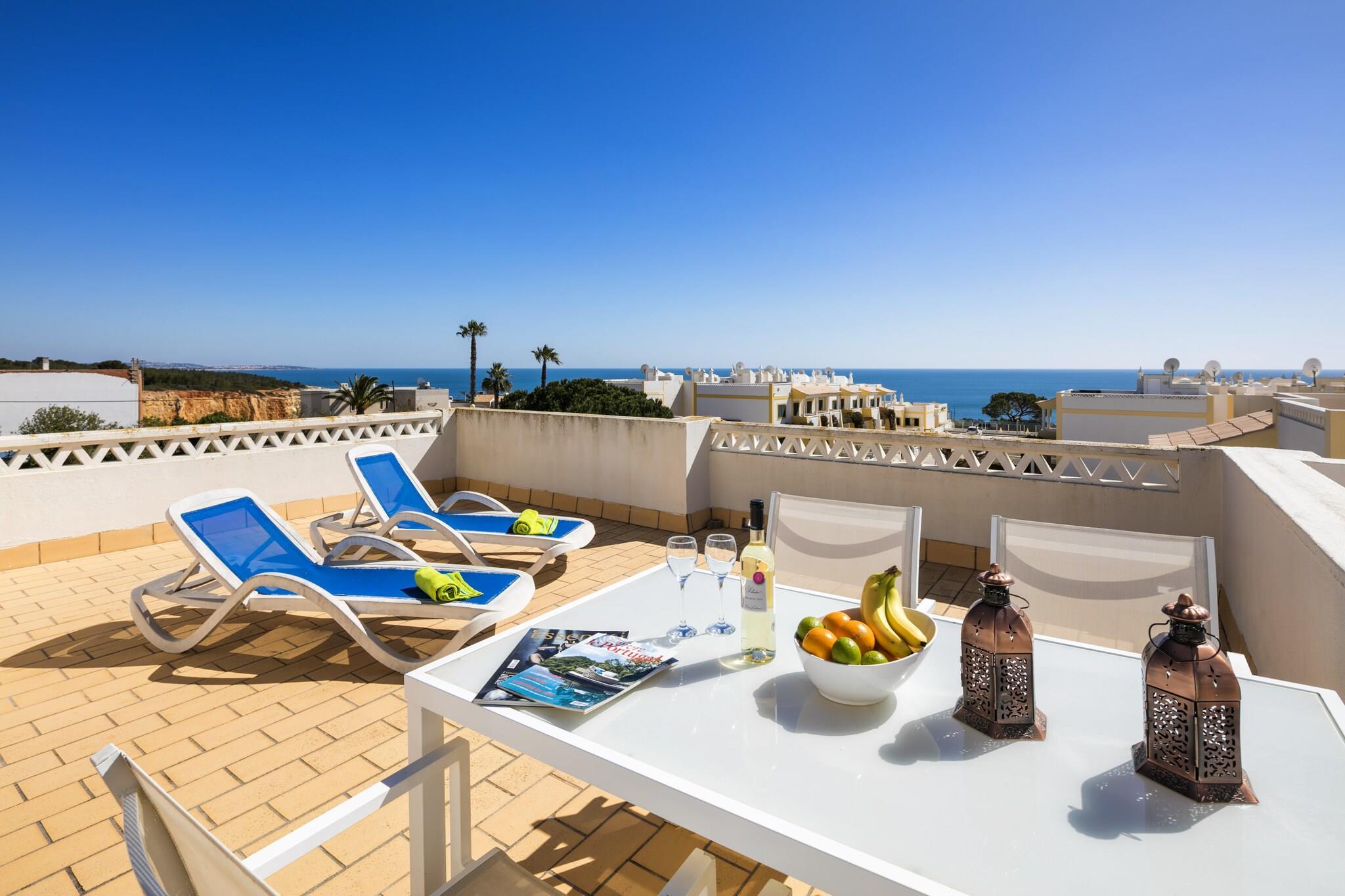 Fly till en fridfull oas i den pittoreska byn Benagil, bara några steg från den fantastiska Atlantkusten. Detta charmiga boende med två sovrum är perfekt designat för familjer, par och små grupper som söker en oförglömlig upplevelse i Algarve. Med en inbjudande atmosfär och ett utmärkt läge, erbjuder det den perfekta blandningen av komfort och äventyr för din semester. Inuti hittar du en rymlig layout med två vackert inredda sovrum – ett med en lyxig king size-säng och det andra med två bekväma individuella sängar. Tre elegant designade badrum, inklusive två med uppfriskande duschar och ett med ett avkopplande badkar, garanterar avskildhet och bekvämlighet för alla gäster. Det fullt utrustade oberoende köket ståtar med moderna bekvämligheter som gör att du kan njuta av en trevlig måltid. område eller på den fantastiska möblerade terrassen med hisnande havsutsikt. Utanför kan du njuta av fantastiska bekvämligheter, inklusive en solterrass, balkong och en gemensam saltvattenpool som mäter 14m x 6m, perfekt för att svalka dig under varma dagar. Beläget bara 190 meter från Praia de Benagil och nära andra vackra stränder som Praia do Carvalho, ger denna fastighet enkel tillgång till Algarves naturliga skönhet. Med närliggande restauranger, strandklubbar och lokala attraktioner är denna tillflyktsort i Benagil den perfekta basen för en oförglömlig portugisisk semesterupplevelse.
