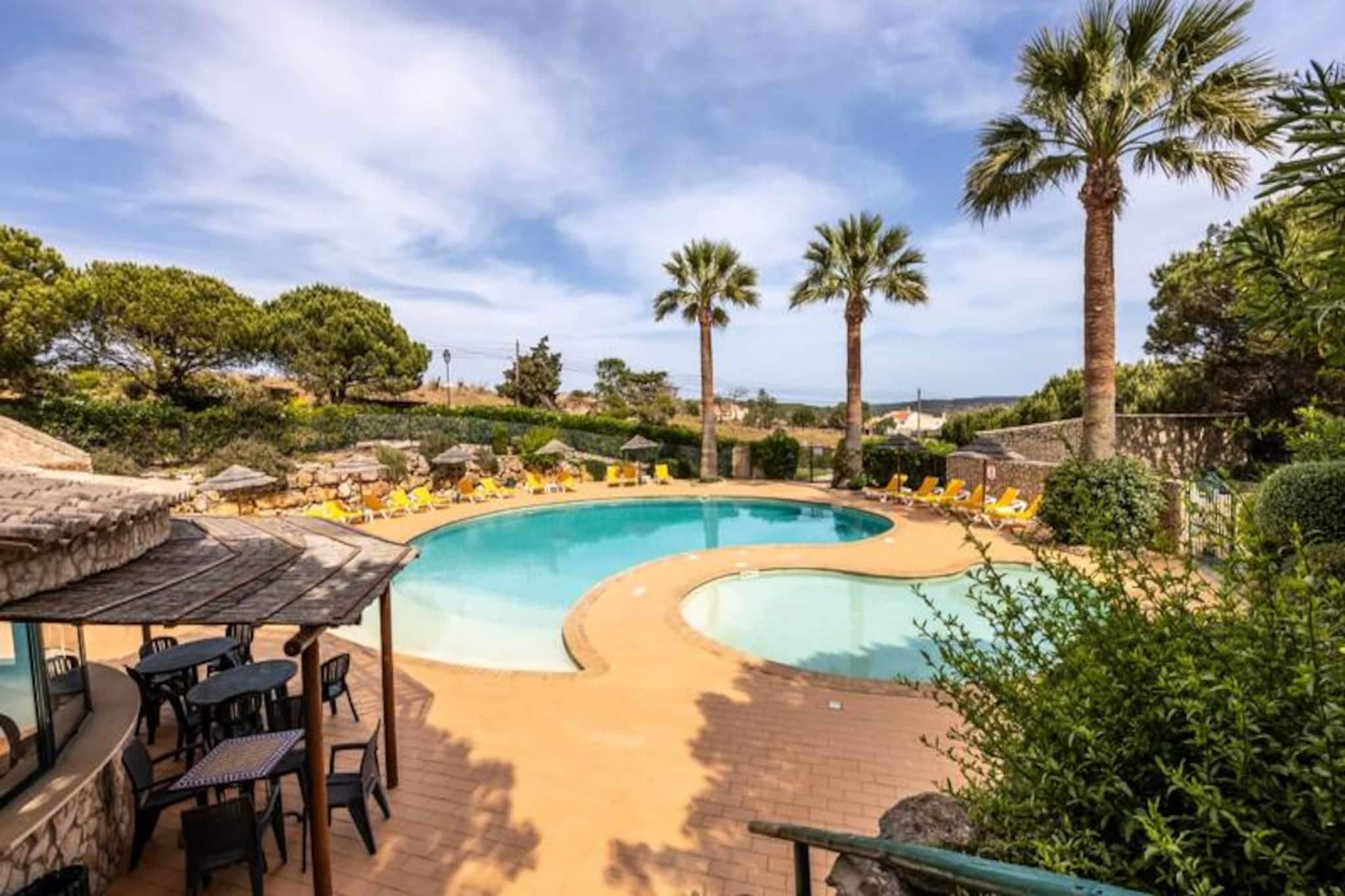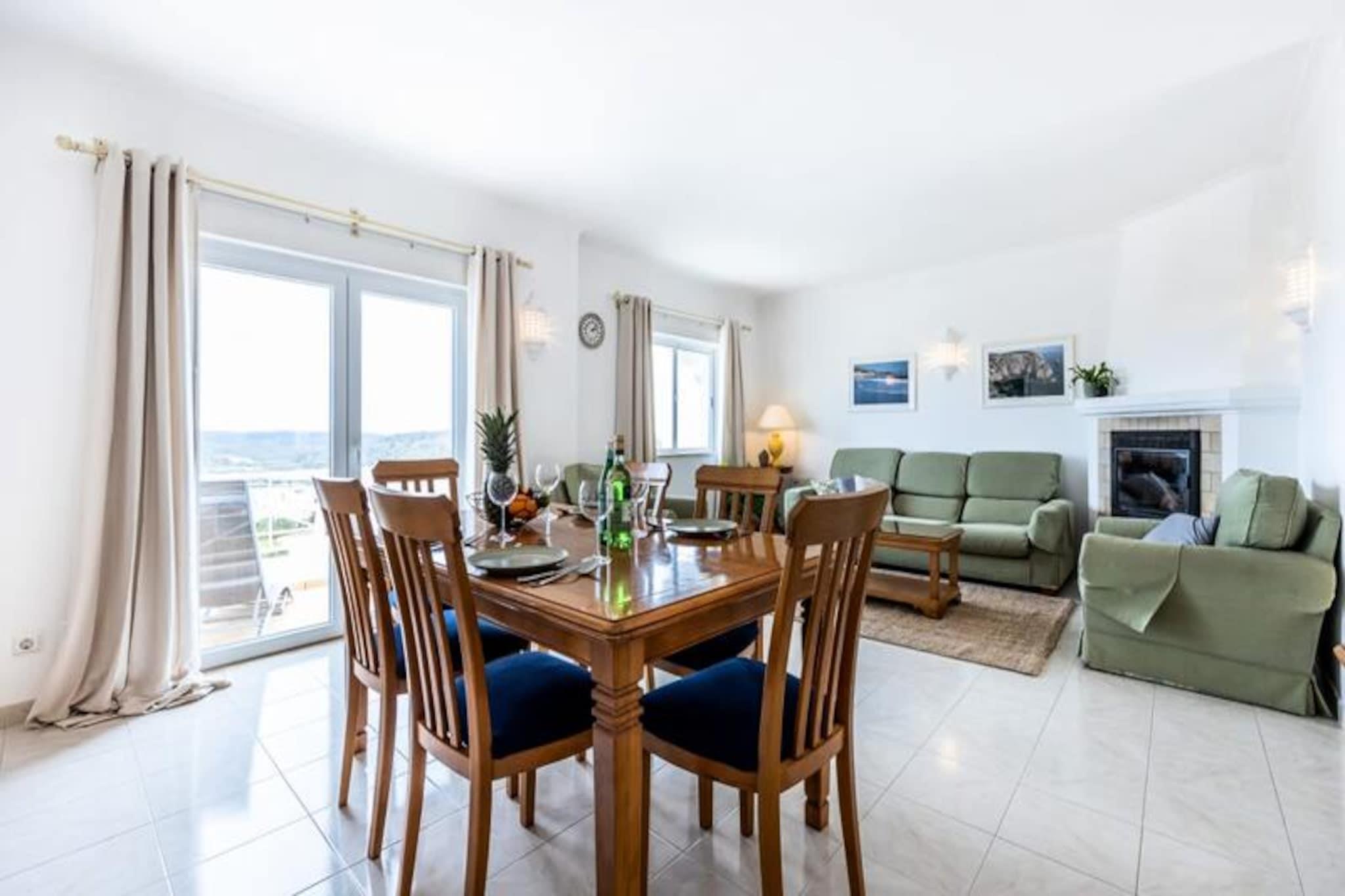 Beläget på en naturskön sluttning med vidsträckt utsikt över Costa Vicentina naturpark och Atlanten, erbjuder detta tvåvåningshus i Budens en lugn tillflyktsort för naturälskare, golfare och strandentusiaster. Bara 5 minuters promenad från byns centrum hittar du charmiga kaféer, restauranger och en bekväm stormarknad, allt inom räckhåll från denna idylliska tillflyktsort. På husets övre våning välkomnas du av ett rymligt vardagsrum, där franska dörrar öppnar upp mot en balkong som är perfekt för att äta utomhus medan du njuter av den fantastiska utsikten mot sydost. Det moderna köket är fullt utrustat med allt du behöver, inklusive kyl och frys, elektrisk ugn, spis, diskmaskin och tvättmaskin. En gästtoalett och ett förråd finns bekvämt placerade nära ingången. På den nedre våningen finns två mysiga sovrum som erbjuder avkopplande boende. Master bedroom har två enkelsängar som kan kopplas ihop, eget badrum, inbyggda garderober och direkt tillgång till en privat terrass. Det andra sovrummet har också utgång till terrassen och gott om förvaringsutrymme. Terrassen, omgiven av grönska, erbjuder en lugn plats med ett stenbord och bänkar, omgivna av blommande träd. Bostadens anlagda trädgård leder till en gemensam pool, som är uppvärmd under större delen av året, och slingrande stigar som förstärker charmen i omgivningen. För golfentusiaster ligger golfbanan Santo António bara några minuter bort, medan de orörda stränderna i Salema och Boca do Rio ligger mindre än 5 minuters bilresa bort. Naturparken Costa Vicentina erbjuder oändliga möjligheter till utomhusäventyr, från vandring och mountainbike till ridning. I närheten ligger de pittoreska byarna Burgau och Praia da Luz bara 10 minuters bilresa bort, och den livliga staden Lagos ligger bara 15 minuter bort. Oavsett om du söker avkoppling eller äventyr är detta semesterhus den perfekta basen för att utforska skönheten i Portugals Algarve-region. Med sin fantastiska utsikt, moderna bekvämligheter och utmärkta läge är det ett idealiskt val för din nästa semester.