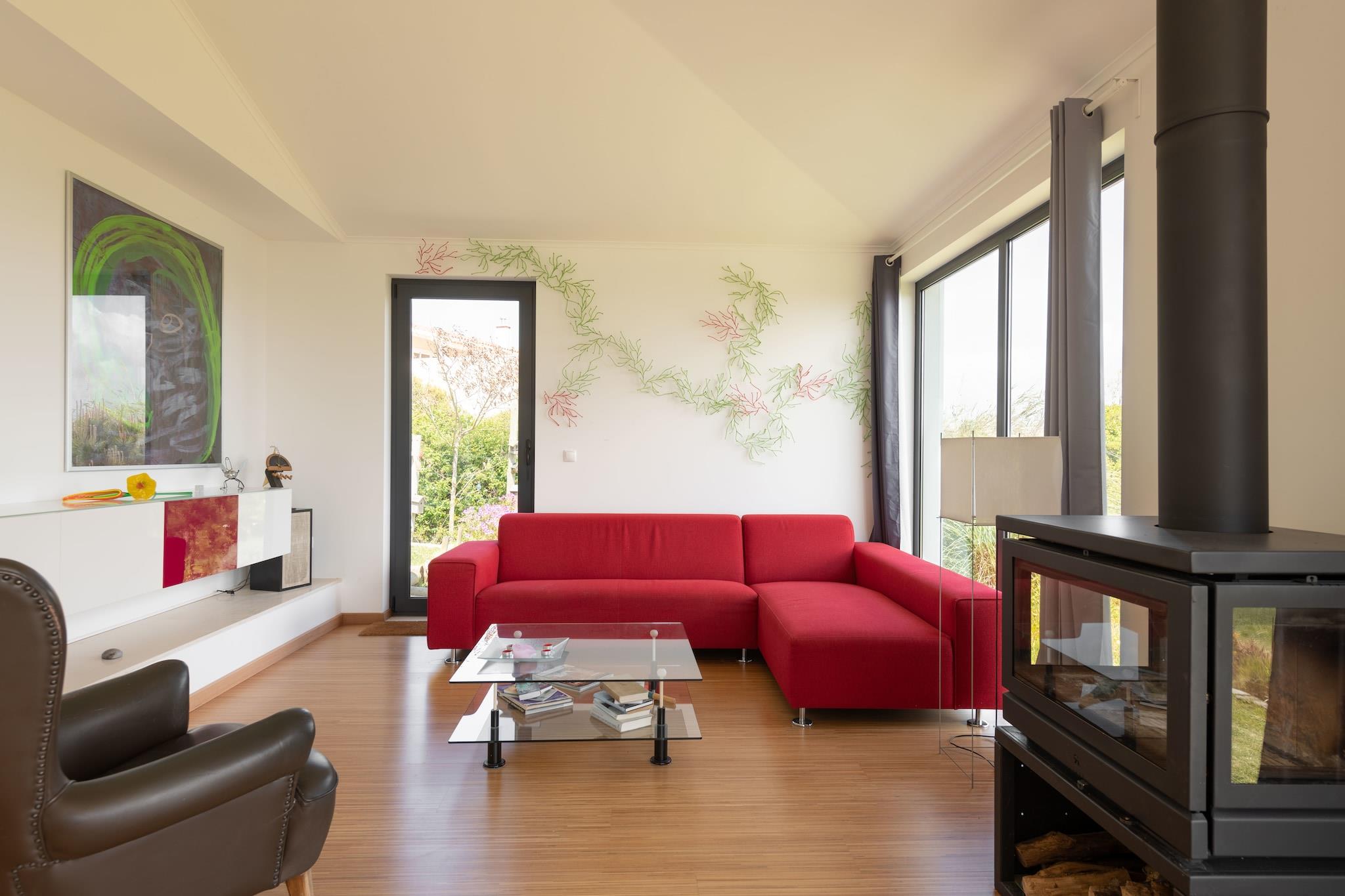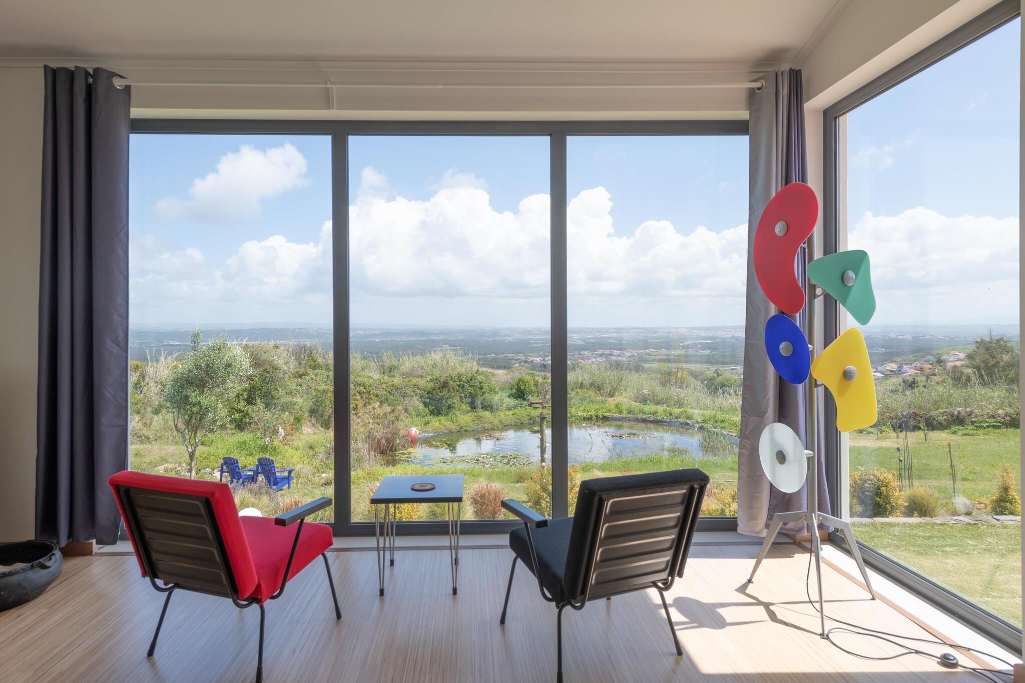 Fly till denna charmiga villa i den fridfulla regionen Serra do Bouro nära Caldas da Rainha. Belägen på en av de högsta klipporna längs den portugisiska kusten erbjuder den en fantastisk panoramautsikt över Atlanten, bara 200 meter bort. Villan är utformad för familjer, vänner och naturälskare och har ett modernt, öppet vardagsrum och matplats med ett fullt utrustat kök och en mysig öppen spis. Det finns två ljusa sovrum och ett eget badrum. Utomhus finns en helt inhägnad trädgård med en anlagd damm, solstolar, parasoll och grill, perfekt för att koppla av medan du njuter av utsikten över dalen och havet. Vackra stränder som Foz do Arelho, Salir do Porto och São Martinho do Porto ligger bara 5 km bort och erbjuder kaféer och restauranger längs kusten. Utforska den medeltida staden Óbidos, klostret Alcobaça eller kyrkan i Batalha, som alla ligger en kort bilresa från villan. Caldas da Rainha, 8 km bort, har en livlig marknad, kaféer och butiker, medan golfbanor, cykelvägar och naturreservat erbjuder ytterligare möjligheter till utomhusäventyr. Husdjur är inte tillåtna, vilket garanterar en lugn och bekväm vistelse.
