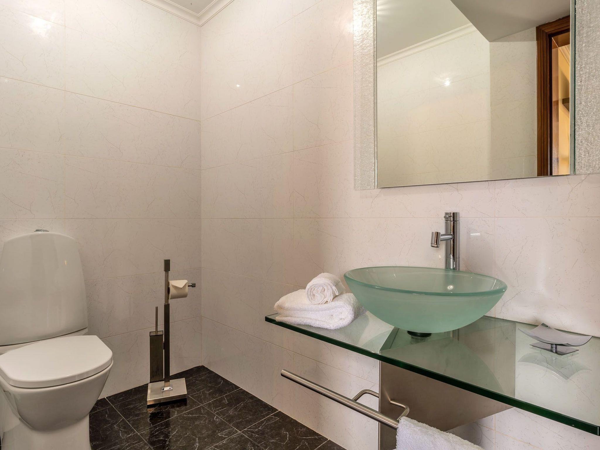 Terrace with private heated swimming pool, garden furniture and sunshade /own balcony, grill/barbecue. Parking possibilities. Property is detached.