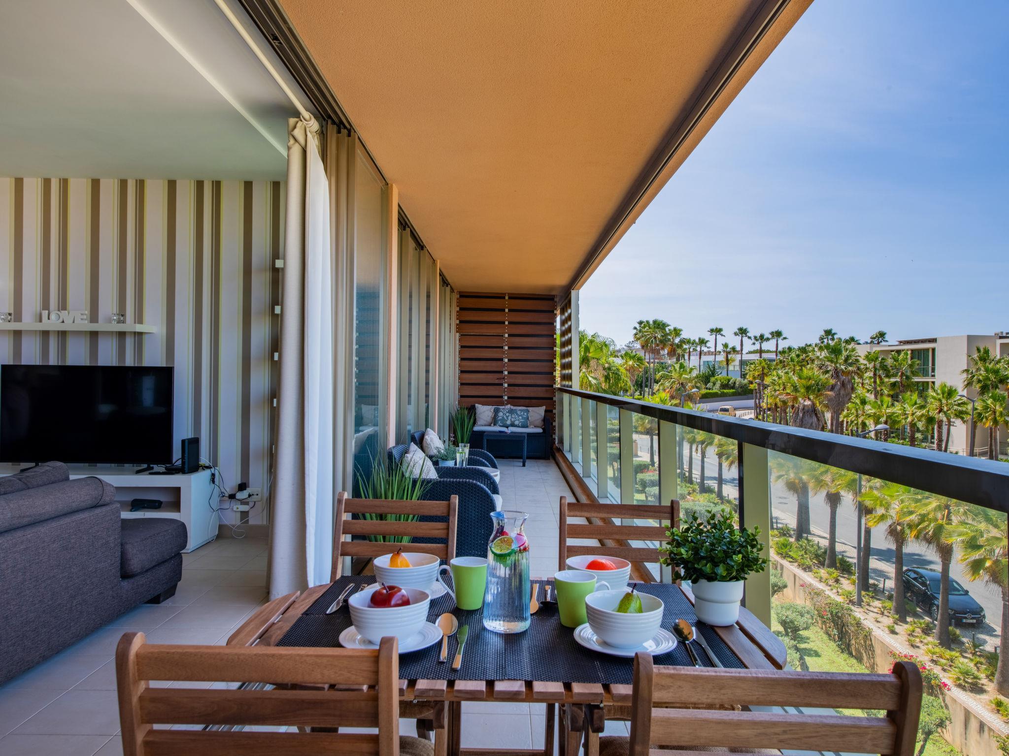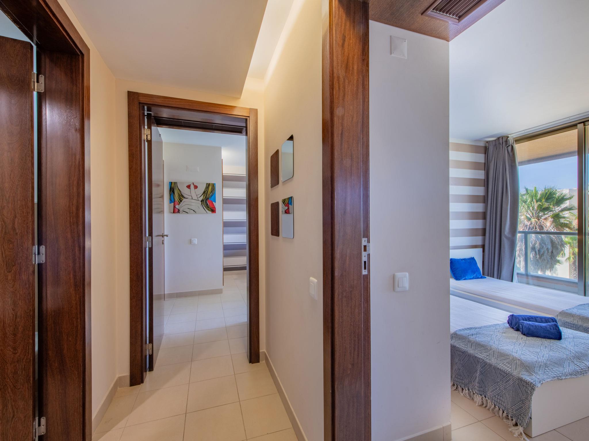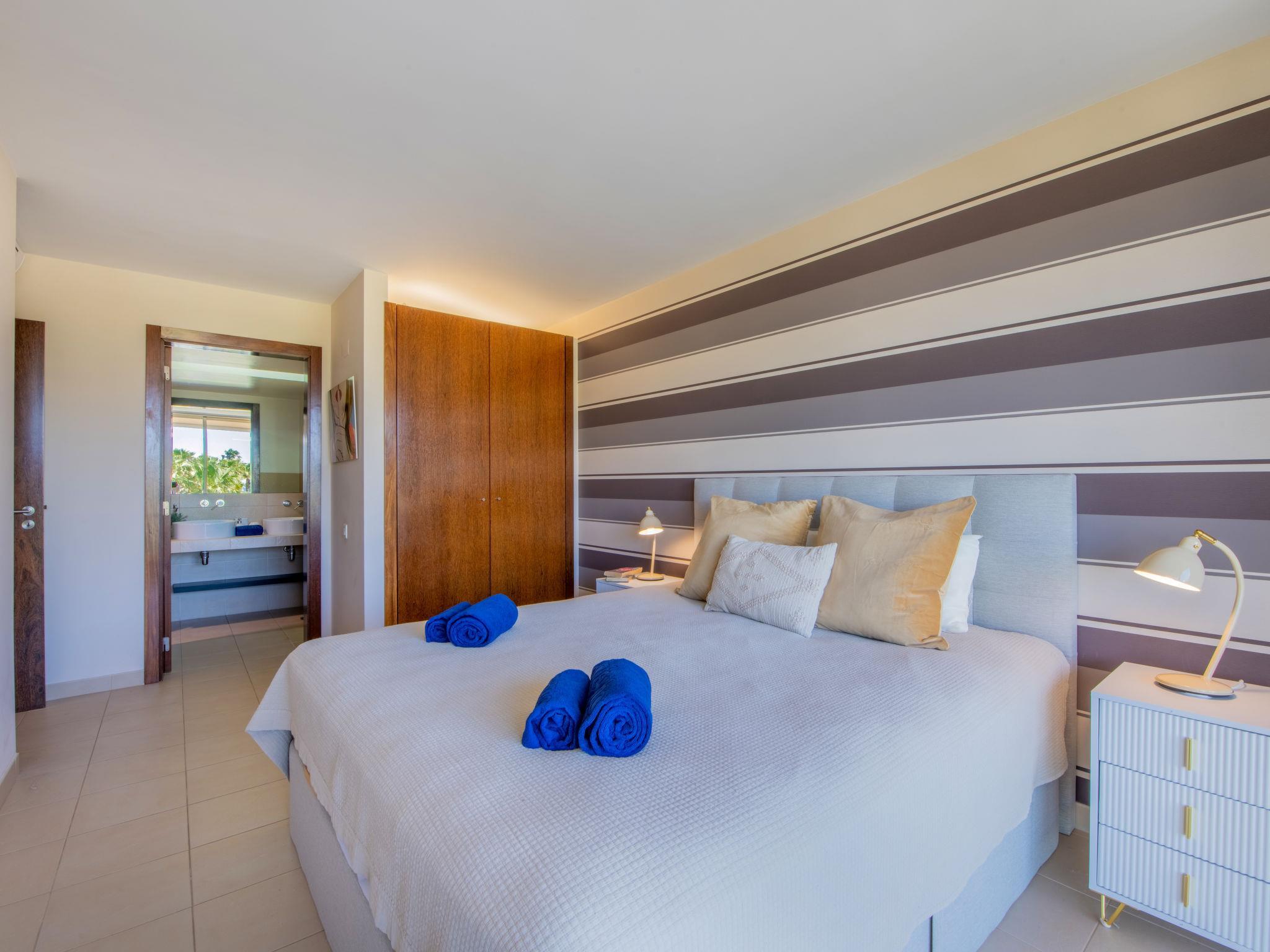 "Algarve Sun-Sea Retreat", 3-room apartment 104 m2 on 3rd floor. Spacious and bright, practical and cosy furnishings: open living/dining room with 1 double sofabed, TV, international TV channels, flat screen, air conditioning and forced-air heating. Exit to the terrace. 1 room with 1 french bed (180 cm, length 200 cm), hip bath/WC, double hand-basin, air conditioning and forced-air heating. Exit to the terrace. 1 room with 2 beds (90 cm, length 200 cm), air conditioning and forced-air heating. Exit to the balcony. Open kitchen (oven, dishwasher, 4 ceramic glass hob hotplates, toaster, kettle, microwave, freezer, electric coffee machine, Capsules for coffee machine (Delta not incl)) with air conditioning and forced-air heating. Exit to the terrace. Bath/WC, sep. WC. Boiler (200 litres). Large terrace. Terrace furniture. Facilities: washing machine, iron, children's high chair, baby cot for up to 2 year olds, hair dryer. Internet (WiFi, free). Parking space n 13 3D (roofed). Please note: suitable for families. Non-smokers only. Fire extinguisher. 59585/AL