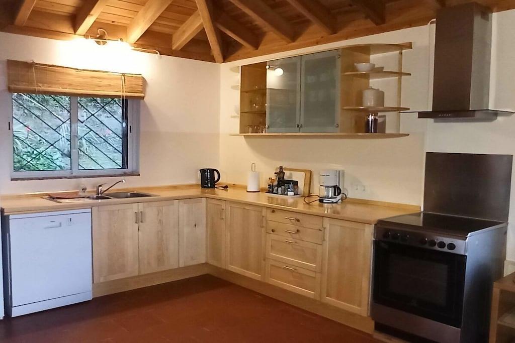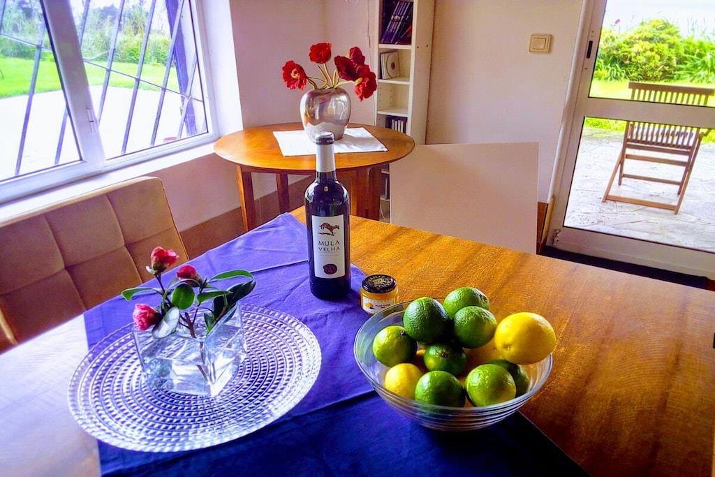 Ett kärleksfullt möblerat semesterhus för hela familjen! Om ni bara är två, fråga oss gärna om vår mindre stuga för två personer. Besök vår webbplats azorenurlaub.info för mer information, inklusive våra två mindre stugor för två. Mysigt och bekvämt, detta semesterhus i lantlig miljö lovar en underbar semester. Från vardagsrummet/matsalen har ni en magnifik panoramautsikt över Atlanten, med dess spektakulära vågor och hisnande solnedgångar – en njutning i varje säsong. Den vackra trädgården, den täckta terrassen och den rymliga grillplatsen inbjuder er att koppla av och varva ner när som helst.