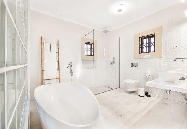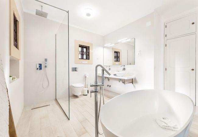 Quinta dos Loendros is magnificent for groups and families as sleeps up to 8 people in its four spacious rooms, the master suite bathroom has bathtub, shower and double sink, two suites with shower and double sink, and one suite with shower and sink. All the bedrooms have TV, WIFI and all of them have fabulous country views. The spacious living room is decorated with all the comfort and quality, a giant tv screen with French, English and Portuguese channels, wifi, and has direct access to the garden and pool.