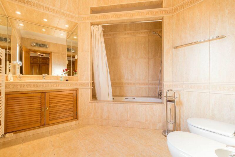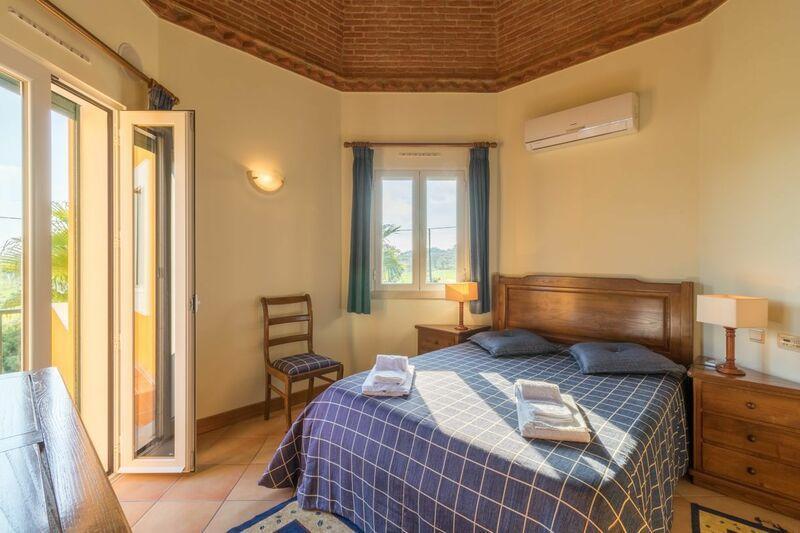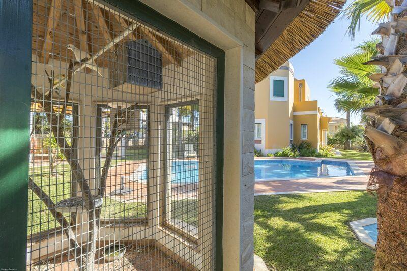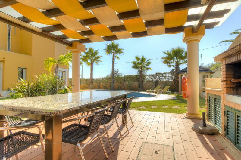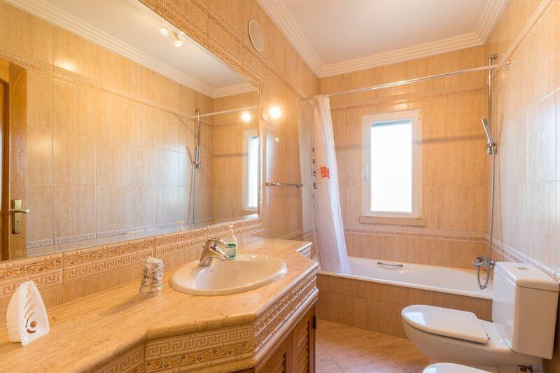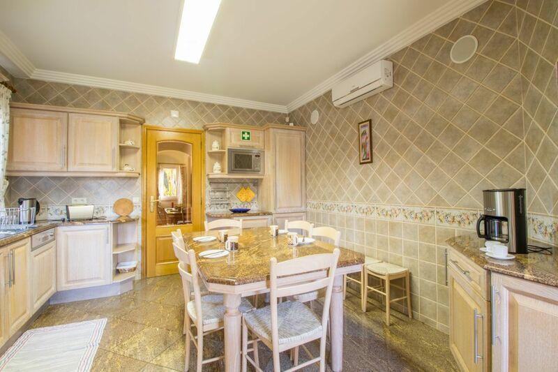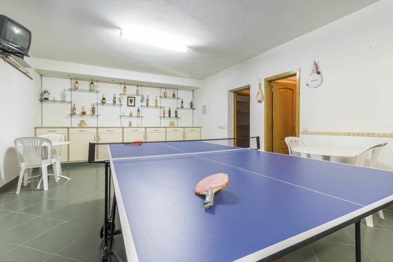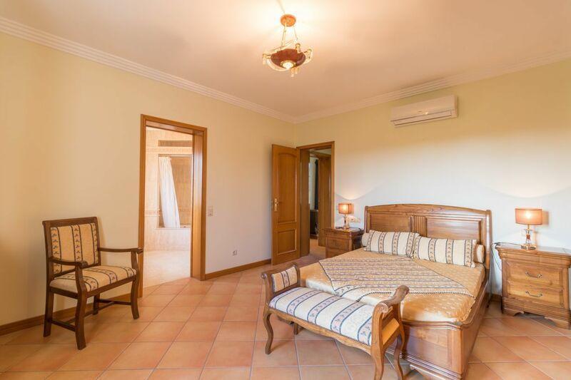 Holiday villa with 4 bedrooms, air conditioning, internet, private pool, garden, barbecue and fireplace, small lake, private parking, 6km form the beach, for 8 people.Description4 Bedooms1 bedroom with double bed, en suite.3 bedrooms with double bed.4 Bathrooms2 full bathrooms with bath.2 full bathroom with shower.Living room with sofa, chairs, fireplace and access to a second lounge room with sofa followed by dining room with table and chairs. Kitchen with electric hob, electric oven, dishwasher, refrigerator, toaster, kettle, coffee maker, table and chairs, direct access to the outside.Washing machine, abroad.Air conditioning in bedrooms and living roomsInternetPrivate poolLoungers Garden with pondBarbecue with benchOutdoor furniture for meals: table and chairs in shaded area.Private parking inside the property.Garage with table tennis and snokker tableWater included expenses, electricity, cleaning.Supply of sheets and towels for the number of people mentioned in the reservationPets Allowed under request DistancesBeach: 6kmGolf: 7kmAirport: 40 km - FaroRestaurant: 300mSupermarket: 1kmShopping: 2kmPharmacy: 1kmHospital: 5kmAlbufeira: 5kmMarina: 4kmGuia 1kmNo heated swimming pool
