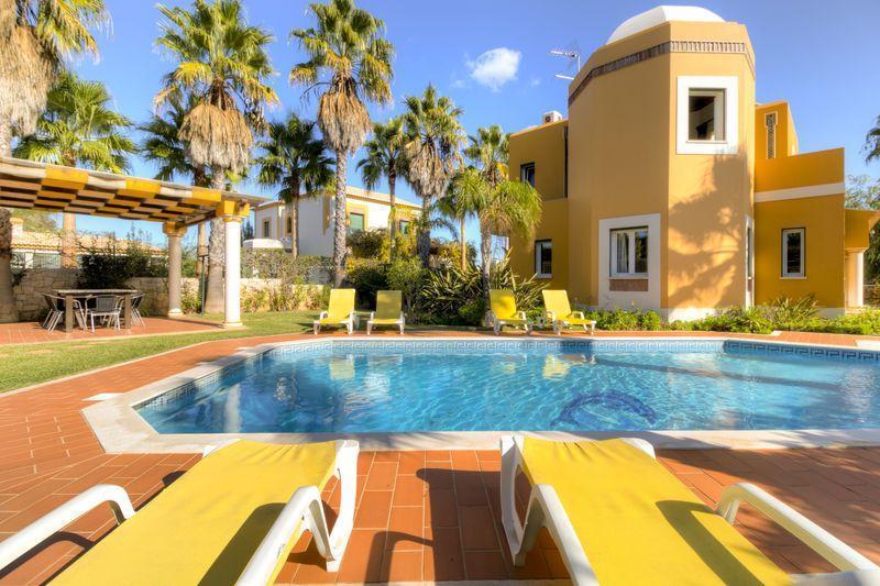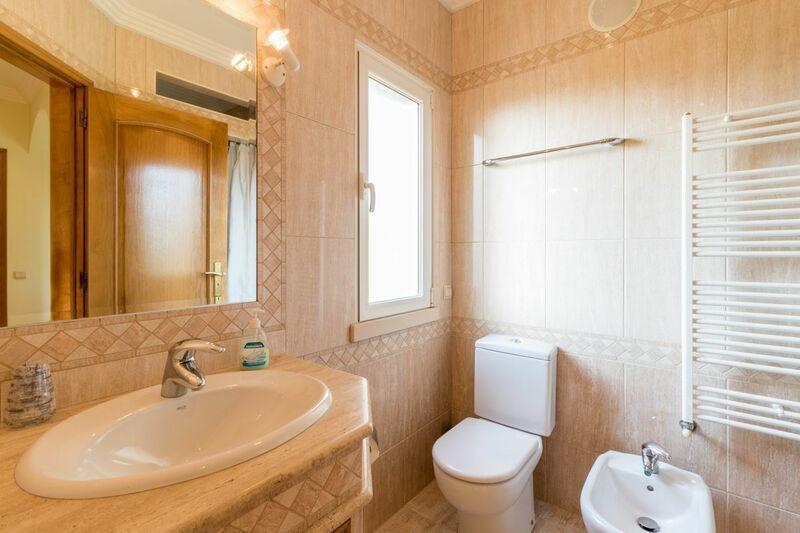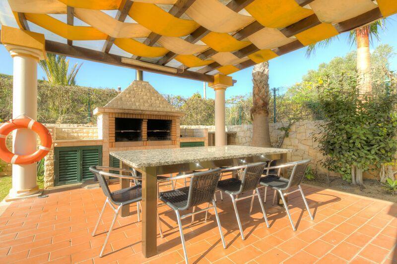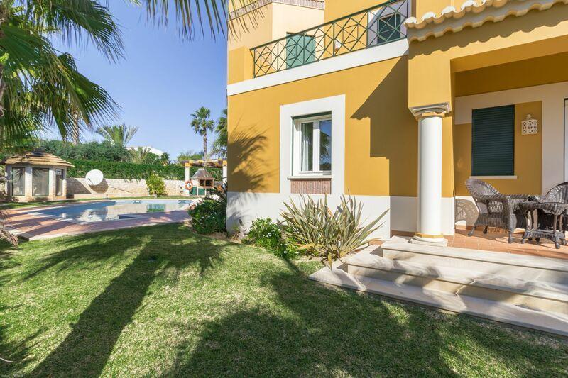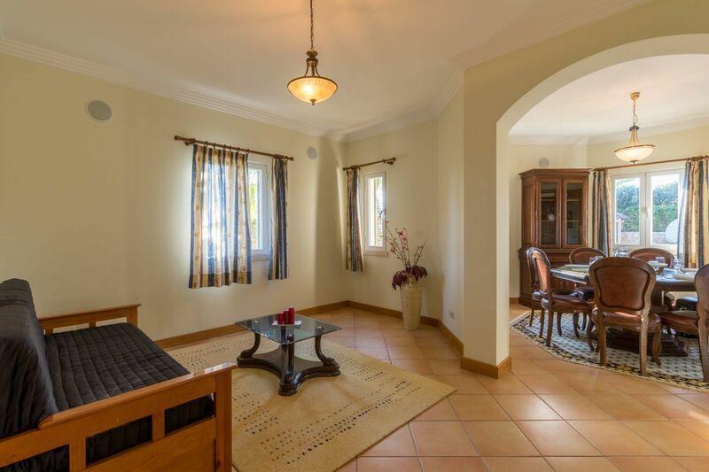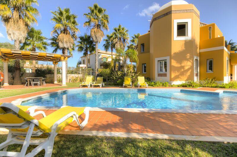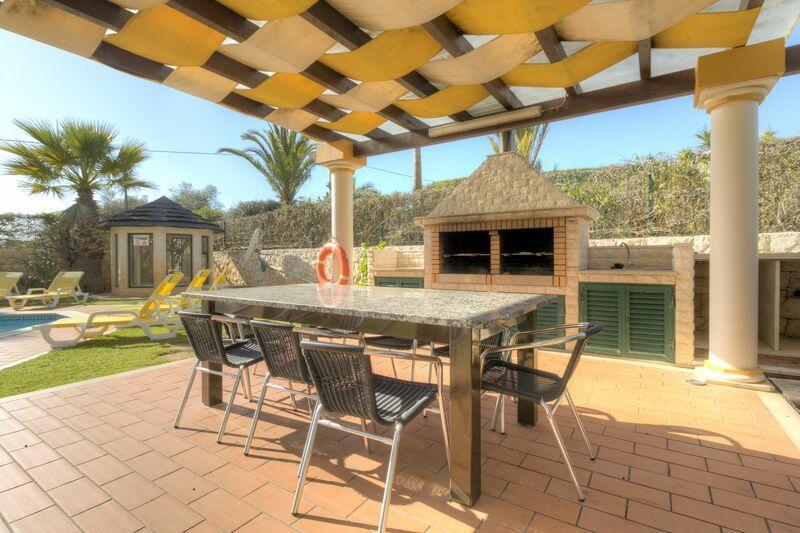 Holiday villa with 4 bedrooms, air conditioning, internet, private pool, garden, barbecue and fireplace, small lake, private parking, 6km form the beach, for 8 people.Description4 Bedooms1 bedroom with double bed, en suite.3 bedrooms with double bed.4 Bathrooms2 full bathrooms with bath.2 full bathroom with shower.Living room with sofa, chairs, fireplace and access to a second lounge room with sofa followed by dining room with table and chairs. Kitchen with electric hob, electric oven, dishwasher, refrigerator, toaster, kettle, coffee maker, table and chairs, direct access to the outside.Washing machine, abroad.Air conditioning in bedrooms and living roomsInternetPrivate poolLoungers Garden with pondBarbecue with benchOutdoor furniture for meals: table and chairs in shaded area.Private parking inside the property.Garage with table tennis and snokker tableWater included expenses, electricity, cleaning.Supply of sheets and towels for the number of people mentioned in the reservationPets Allowed under request DistancesBeach: 6kmGolf: 7kmAirport: 40 km - FaroRestaurant: 300mSupermarket: 1kmShopping: 2kmPharmacy: 1kmHospital: 5kmAlbufeira: 5kmMarina: 4kmGuia 1kmNo heated swimming pool