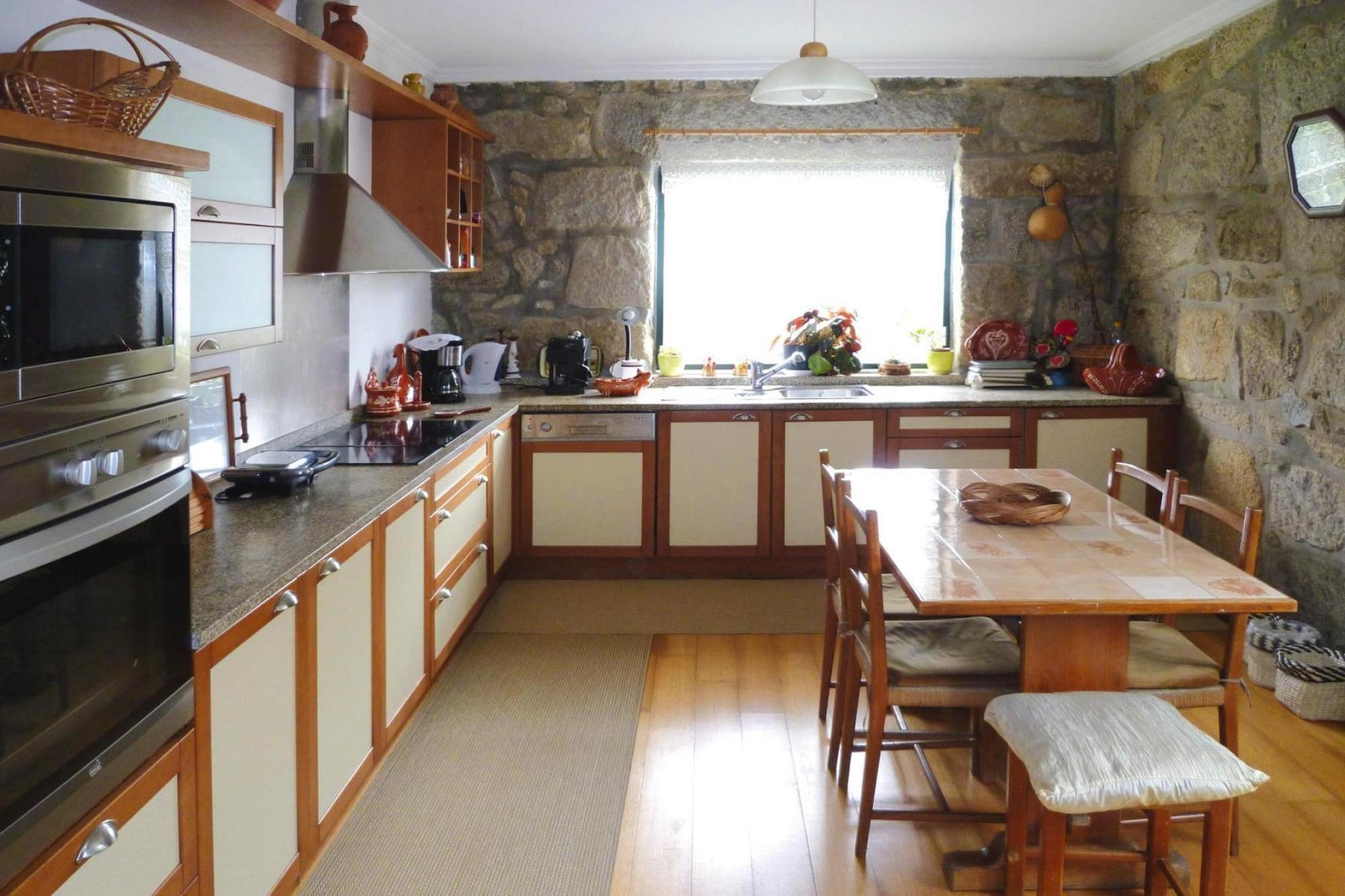 Smakfullt inrett granitstenhus med pool och vacker utsikt över TÂmega-reservoaren. Godset på cirka 3 000 kvadratmeter i ett lugnt område är täckt av vinrankor och träd. Dagsturer till Porto och havet på cirka 55 kilometer är värt besväret. I området hittar du flodbadstränder. Detaljer: WiFi Sängkläder, handdukar, slutstädning Inte lämplig för personer med nedsatt rörlighet