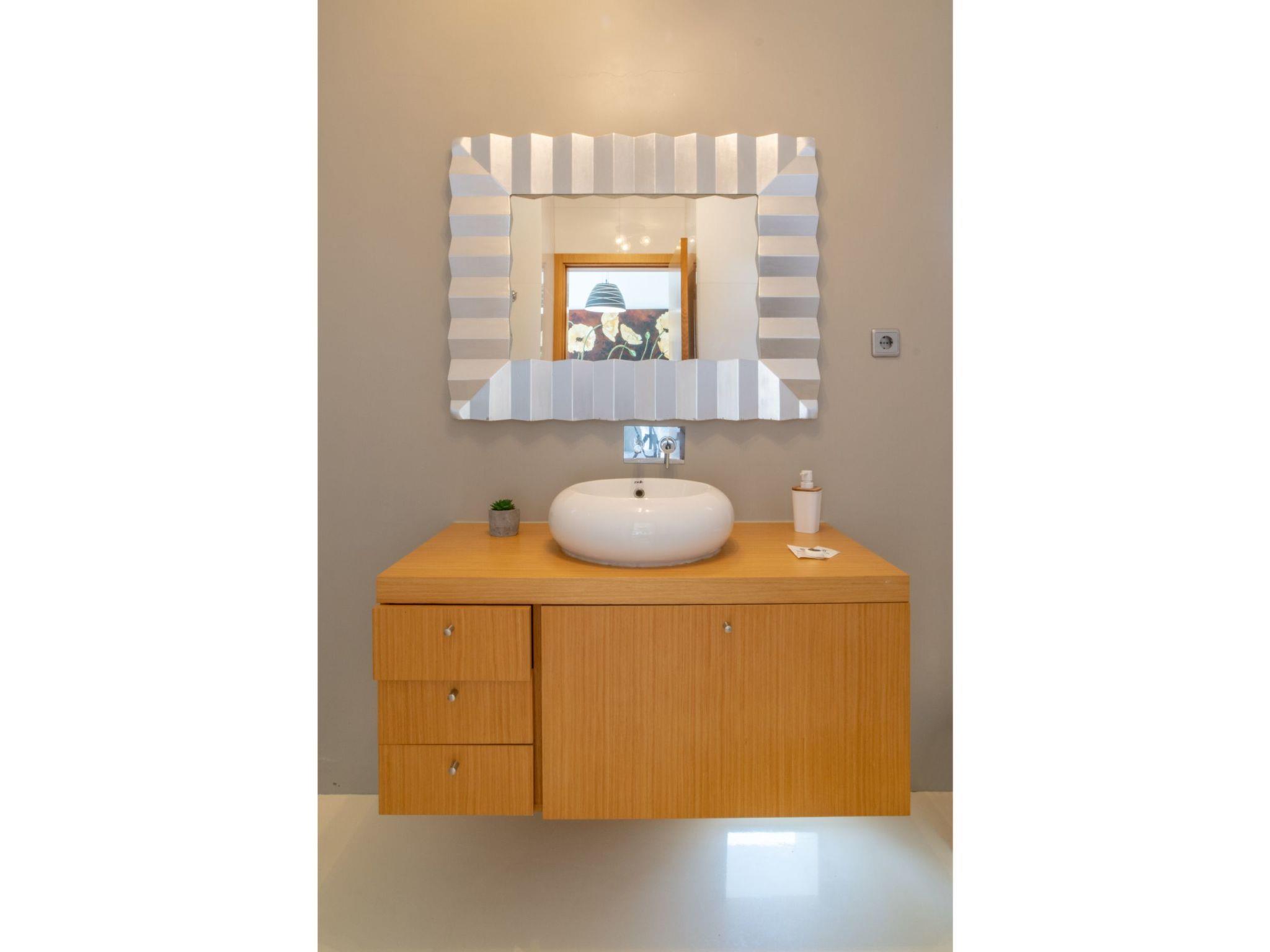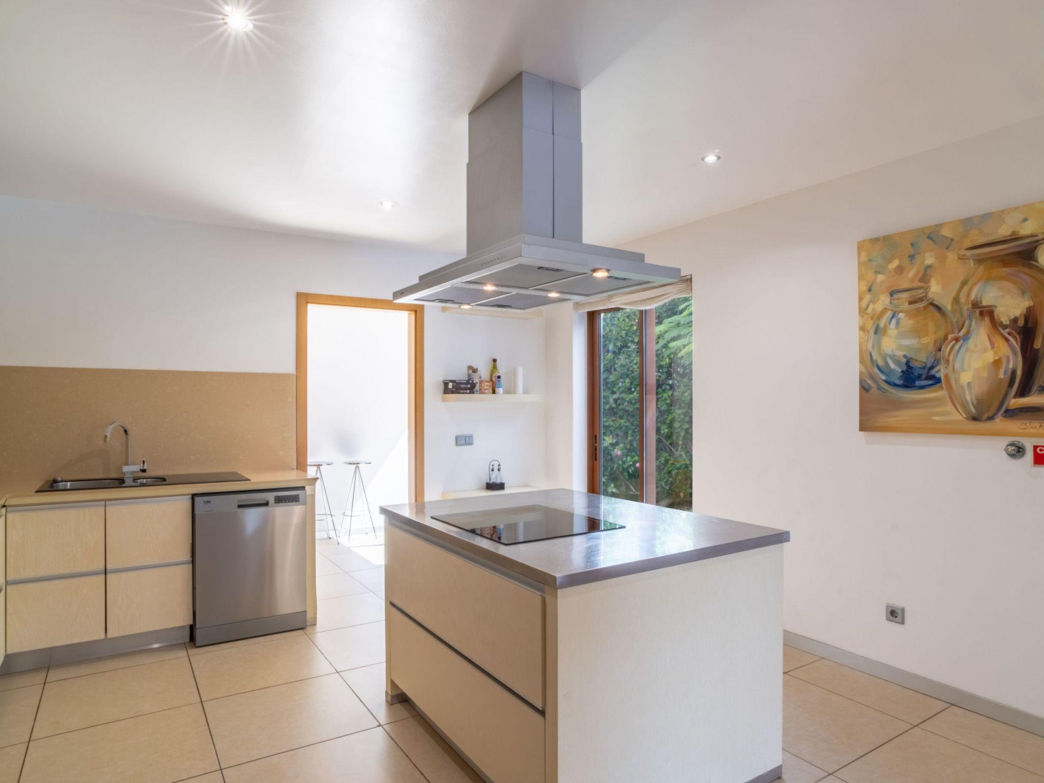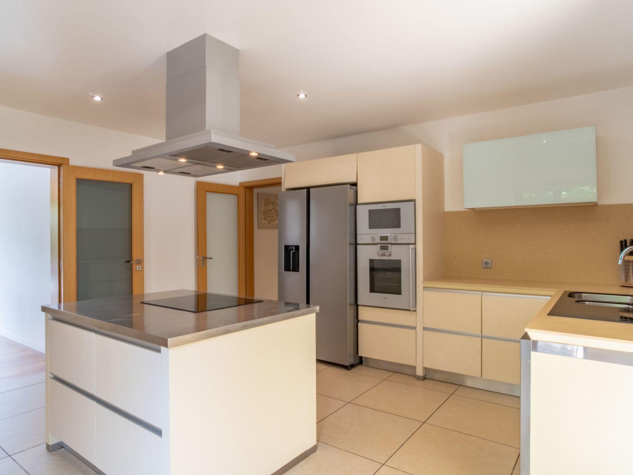 The property features garden views. The villa comes with a flat-screen TV. The accommodation is equipped with a kitchen. Equipped with today s high-tech technology, this special house with a floor space of 380 m² on two floors of modern comfort and room for eight people. The materials used are of the highest quality, taste and comfort. 4 comfortable bedrooms and ultra-modern bathrooms are on the upper floor, while the living room, the kitchen and another bathroom on the ground floor. The three gorgeous bedrooms guarantee a wonderful nights sleep. a great bathroom. All areas are well above average and equipped with beautiful cabinets in a modern design. large living and dining room also offers guests a high comfort. Located in the elegant dining table with modern rocking chairs found eight people. The modern kitchen is large and spacious.