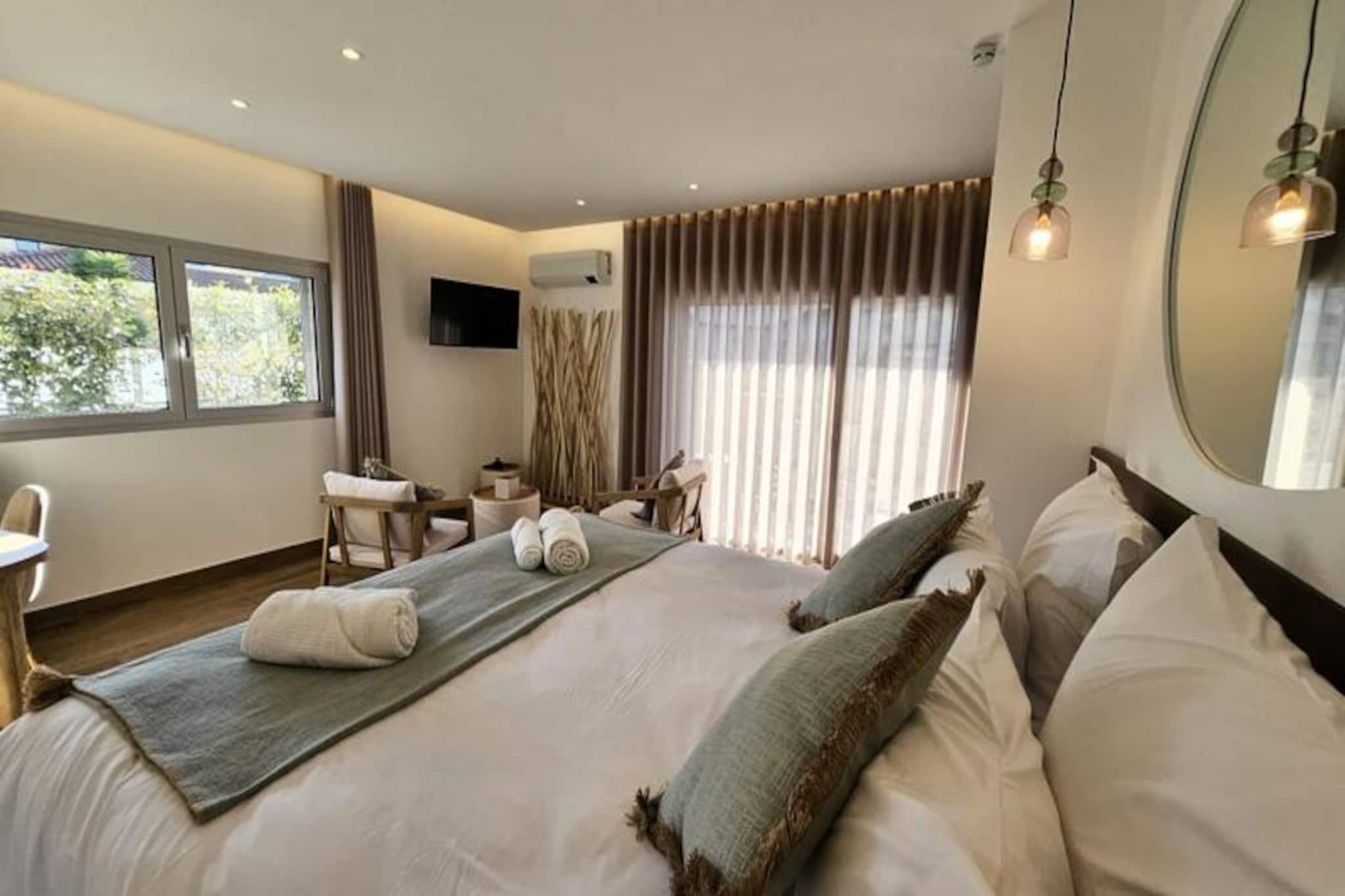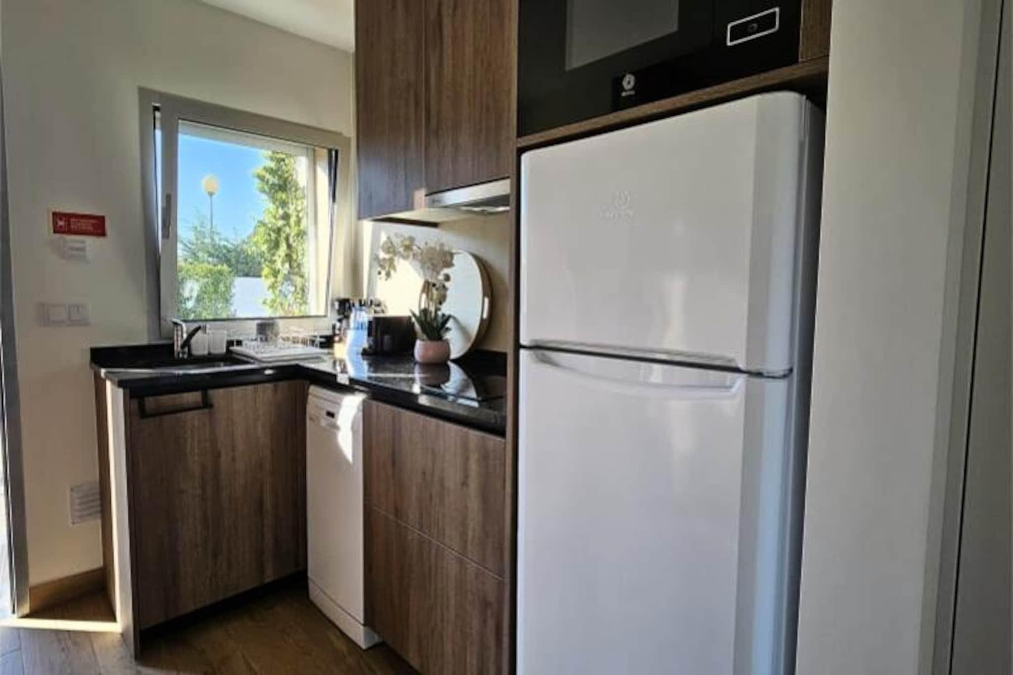 Denna moderna lägenhet erbjuder uppvärmt och luftkonditionerat boende, perfekt för både affärs- och fritidsvistelser. Sovrummet har en bekväm king size-säng (180 cm), med gott om förvaringsutrymme. Badrummet har dusch och toalett, medan vardagsrummet har en TV och en kontorsplats för distansarbete. Lägenheten är helt oberoende, med säker åtkomst via elektriska grindar. Husdjur är inte tillåtna. Perfekt läge, lägenheten ligger bara 10 minuter med bil från närmaste stränder och 30 minuter med cykel. Det ger enkel tillgång till att utforska Portugal, från Porto till Lissabon, med närliggande cykelvägar för cykelentusiaster. Lokala kaféer, marknader och bekvämligheter finns inom räckhåll, medan Leiria ligger bara 10 minuter bort med bil. Lägenheten har ett fullt utrustat kök med mikrovågsugn, spis, kyl-frys, diskmaskin, brödrost och kaffebryggare. Njut av moderna bekvämligheter som fiberoptiskt internet, Netflix och YouTube på TV:n. Ytterligare bekvämligheter inkluderar en pool, ett gym, ett säkert garage och en TESLA-laddare (extra avgift). En deposition krävs före ankomst för att slutföra bokningen.