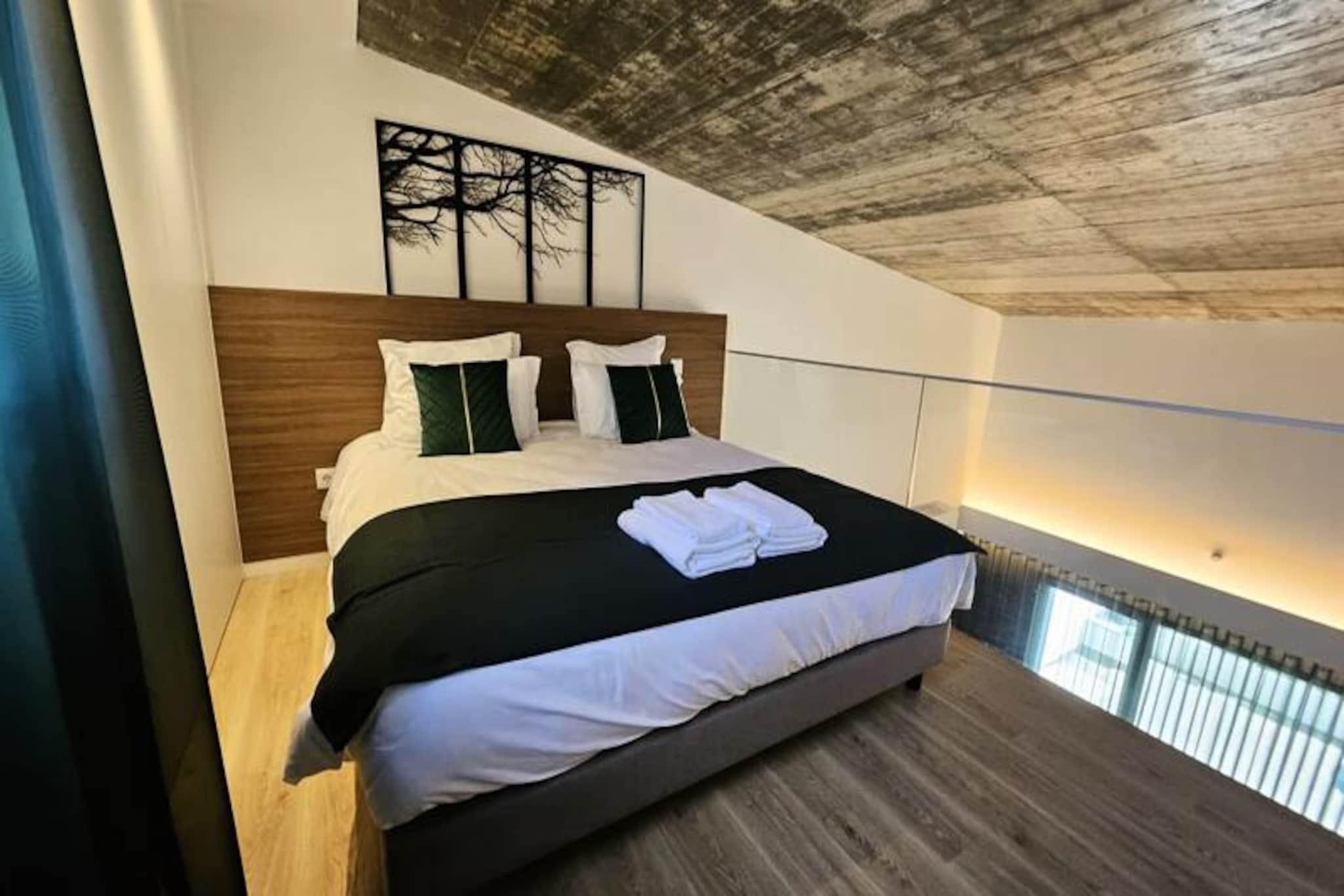 I hjärtat av Portugal, där modern bekvämlighet möter kustnära charm, erbjuder MARINHA GRANDE APARTAMENTOS en lugn tillflyktsort för både affärsresenärer, distansarbetare och fritidsresenärer. Med sitt utmärkta läge, bara 10 minuters bilresa från de gyllene stränderna på Costa da Prata och en kort bit från Leiria, är denna fastighet den perfekta inkörsporten för att utforska de pulserande städerna Porto och Lissabon eller den pittoreska kustlinjen som sträcker sig från Aveiro till Torres Vedras. För naturentusiaster lovar regionens omfattande cykelvägar oändliga äventyr mitt i frodiga landskap. Lägenheten GREEN LOFT nr 6 är en oas av komfort och stil. Den är fördelad på två våningar och har en välkomnande entréhall med gott om förvaring, ett fullt utrustat kök med moderna apparater och ett mysigt vardagsrum komplett med matplats och underhållningsalternativ som kabel-TV, Netflix och YouTube. På övervåningen har det lyxiga sovrummet en 180 cm bred säng, en kontorshörna och ett eget badrum med en elegant dusch. Genomtänkta detaljer som elektriska persienner, luftkonditionering och höghastighets-Wi-Fi säkerställer en smidig vistelse. Den privata terrassen inbjuder dig att varva ner, medan det smarta låssystemet ger problemfri åtkomst. Gästerna kan njuta av exklusiva bekvämligheter, inklusive en glittrande pool, ett gym och ett säkert garage med en Tesla-laddare tillgänglig mot en extra avgift. Veckovis städning och rena sängkläder ingår för vistelser längre än en vecka, vilket garanterar en bekymmersfri upplevelse. Oavsett om du är här för att arbeta, koppla av eller utforska, erbjuder MARINHA GRANDE APARTAMENTOS den perfekta blandningen av lyx och praktiskhet. Upptäck det bästa av Portugal från denna centrala och lugna bas.
