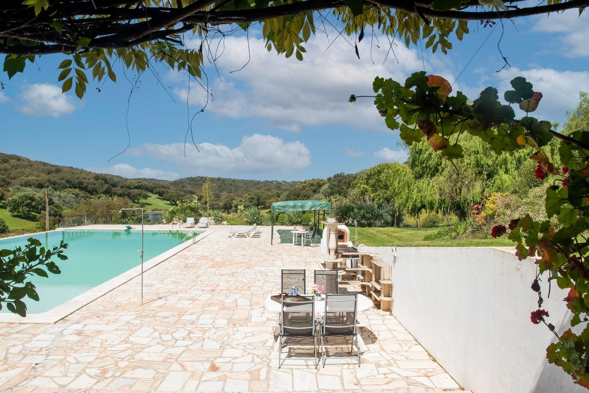 Autentisk bondgårdsvistelse i Alentejo, omgiven av naturen Beläget på den fridfulla landsbygden i Montemor-o-Novo, är detta traditionella bondgårdshus en inbjudande tillflyktsort för familjer eller grupper som söker en fridfull tillflyktsort. Omgivet av olivträd och öppna fält, blandar hemmet rustik charm med modern komfort. Med gott om inomhusutrymme och en privat terrass med utsikt över det vidsträckta landskapet, är det perfekt för långa, avkopplande vistelser. Gå ut för att njuta av gemensamma bekvämligheter som en stor pool, en fridfull damm och uteserveringar för oförglömliga grillkvällar under stjärnorna. Upptäck Alentejos skönhet och kulturarv Naturälskare kommer att finna glädje bara några steg bort i skogen, perfekt för lugna morgonpromenader. Montemor-o-Novo, bara en kort bilresa bort, erbjuder en glimt av Alentejos rika historia med sina slottsruiner på kullarna och charmiga vitkalkade gator. Regionen är beströdd med megalitiska monument och orörda landskap, vilket gör den till en fristad för vandrare och fotografer. Utforska närliggande Évora, en UNESCO-världsarvsstad bara 30 minuter bort, känd för sitt romerska tempel, katedral och det berömda kapellet Ben. Smaka på Alentejos kulinariska traditioner Njut av Alentejos rejäla mat på lokala restauranger bara 8 km bort, där rätter som açorda, migas och långkokt fläskkött tillagas med regional känsla. Kombinera dina måltider med rika lokala viner från närliggande vingårdar, kända för sina djärva röda viner. För en mer personlig upplevelse, köp färska ingredienser från den lokala marknaden och njut av matlagning i bondgårdens fullt utrustade kök eller grilla en måltid på terrassen.