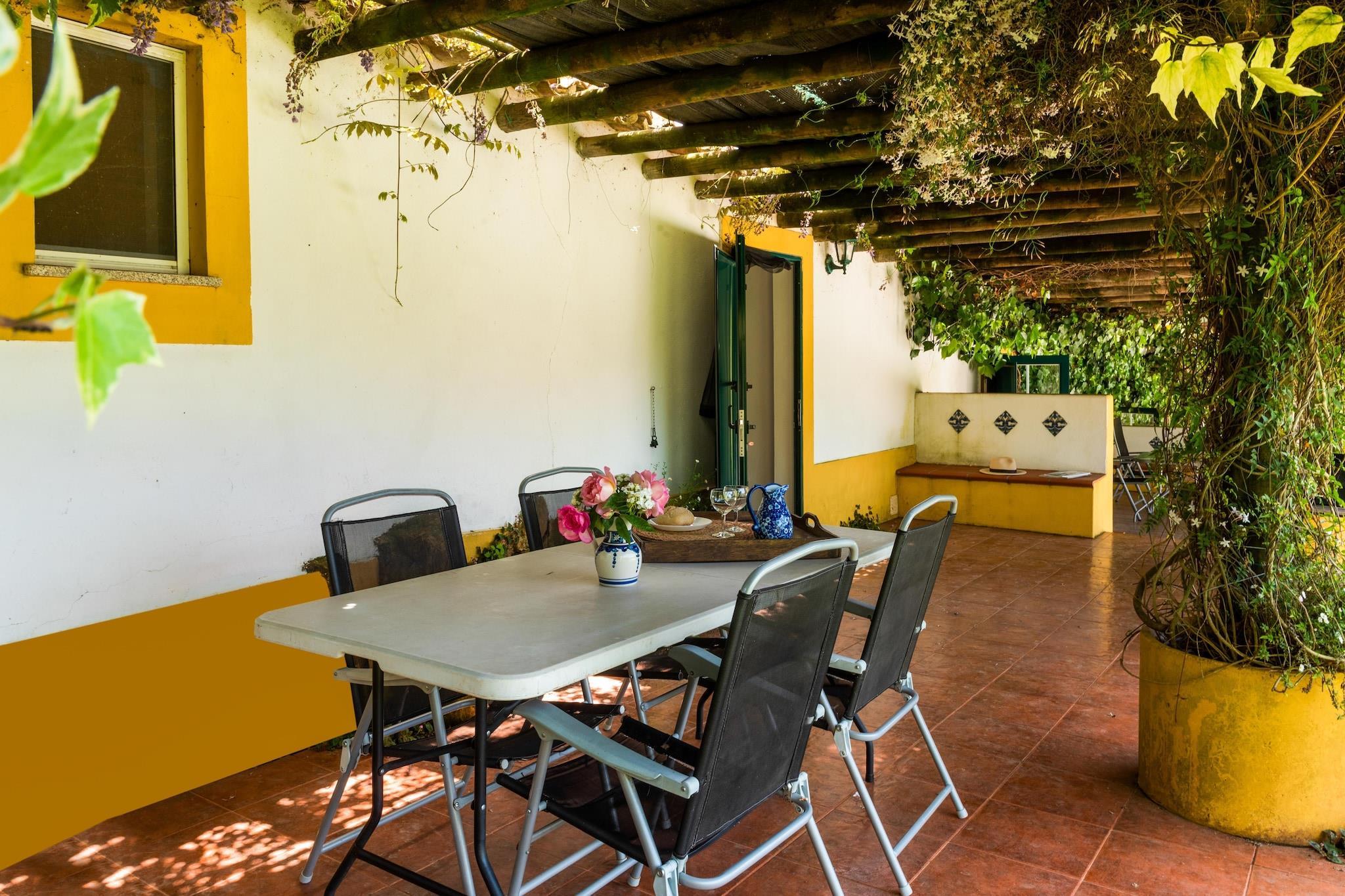 I naturens knä hittar du detta exklusiva bondgårdshus med 3 sovrum för 6 gäster i Montemor-o-Novo. Perfekt för vänner och familj, detta hem har också en gemensam pool, en privat terrass och en gemensam trädgård att koppla av i. Du bor bara några steg från närmaste täta skog, perfekt för att utforska naturstigarna i närheten. Planera en picknick till den närliggande sjön, 1 km bort, eller besök stadens centrum för att shoppa i stormarknader, 5 km bort. Du kan också njuta av ett uppfriskande dopp i den allmänna simhallen, 8 km bort. Detta barnvänliga semesterhus är möblerat med alla moderna bekvämligheter för att göra din vistelse trevlig. Värden tillhandahåller även en spjälsäng och en barnstol. Trädgården erbjuder den perfekta platsen för barnen att leka fritt, medan föräldrarna kopplar av på terrassen. Andra bekvämligheter inkluderar ett öppet kök, tvättmaskin och luftkonditionering. Det finns wifi på plats, vid poolen och de gemensamma arbetsområdena. Obs: Poolen kommer att vara stängd från 1 november till 1 april.