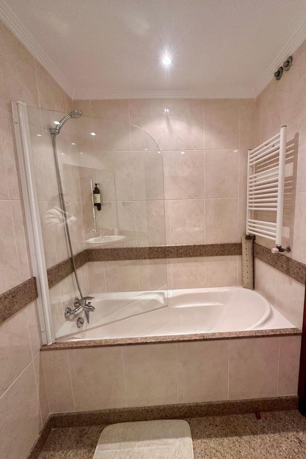 Every detail inside the Sea View Apartment has been thoughtfully curated to ensure a hassle-free stay. It features a fully equipped kitchen, allowing guests to prepare their meals with ease using a gas cooker, electric kettle, coffee machine, and dishwasher. The presence of a washing machine for exclusive use adds an extra layer of convenience, making it ideal for longer stays. Three meticulously arranged bathrooms, one of which is en suite, ensure privacy and comfort, complemented by a modern shower system to rejuvenate after a day of exploration.