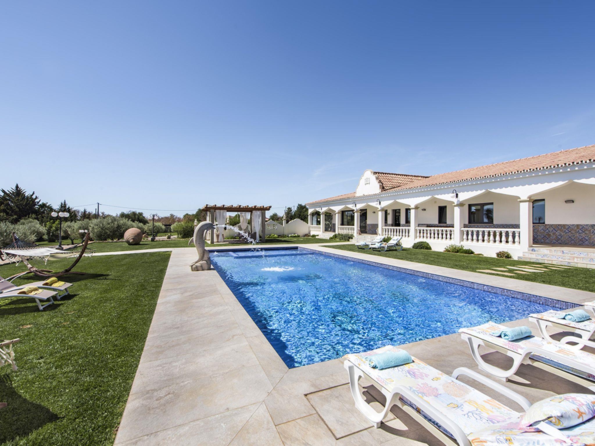 Very modern, beautiful villa "Flor de Lis". In the district Paderne, residential area (villas), 8.5 km from the sea. Private: wildlife garden and trees, beautiful garden to relax, swimming pool angular (5 x 10 m, depth 110 - 220 cm, seasonal availability: 01.Jan. - 31.Dec.). Outdoor shower, hot tub, table tennis, beach volleyball patio, arbour, pergola, garden furniture, barbecue, children's playground (slide, swing, sandbox). In the house: WiFi, hot tub, air conditioning, washing machine, drying room. Parking at the house. Grocery 4.4 km, supermarket 4.4 km, shopping centre 8.4 km, restaurant 600 m, bakery 4.4 km, café 4.5 km, bicycle rental 6.7 km, bus stop 600 m, sandy beach "Praia dos Pescadores" 8.5 km, diving center 10.2 km. Marina 10.6 km, golf course (18 hole) 12.5 km, surf school 12.1 km, tennis 12.2 km, riding stable 16.8 km, children's playground 8.6 km. Nearby attractions: Casa Museu do Paderne 4.4 km, Castelo de Paderne 7.3 km, Donkey Tours 7.3 km, Aqualand Algarve 18.2 km, Zoomarine Algarve 11 km, Krazy World 9.9 km. Please note: car recommended. Suitable for families. Loading and unloading of baggage is possible at the holiday house. All groups of young people under 25 years old must pay an extra deposit in cash on arrival.