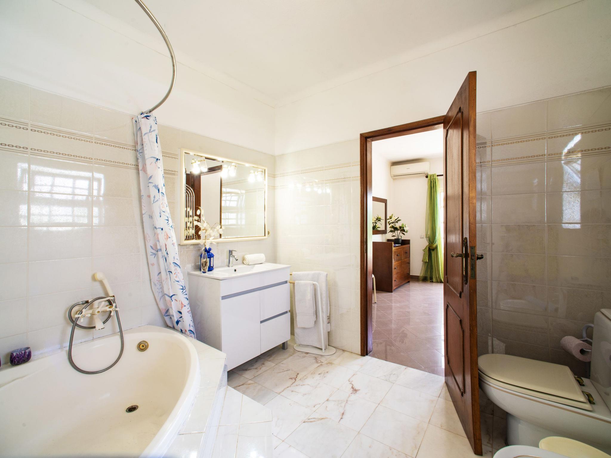 "Da Bela Vista", 4-room house 130 m2. Bright, beautiful and cosy furnishings: living/dining room with open-hearth fireplace, dining table, satellite TV and electric heater. Exit to the terrace. 1 room with 1 french bed (160 cm, length 200 cm), bath/WC, electric heating and air conditioning. Exit to the garden. 1 room with 2 beds (95 cm, length 195 cm), electric heating and air conditioning. 1 room with 2 beds (90 cm, length 185 cm), electric heater. Kitchen (oven, dishwasher, 4 gas rings, toaster, kettle, microwave, freezer, electric coffee machine) with dining table. Bath/WC. Heating (extra), air-conditioning (extra). Heating not available in all rooms. Terrace roofed. Terrace furniture, barbecue, deck chairs (6), box-room. Panoramic view. Facilities: washing machine, safe, iron, children's high chair, baby cot, hair dryer. Internet (WiFi, free). Please note: non-smokers only. Fire extinguisher. 62856/AL