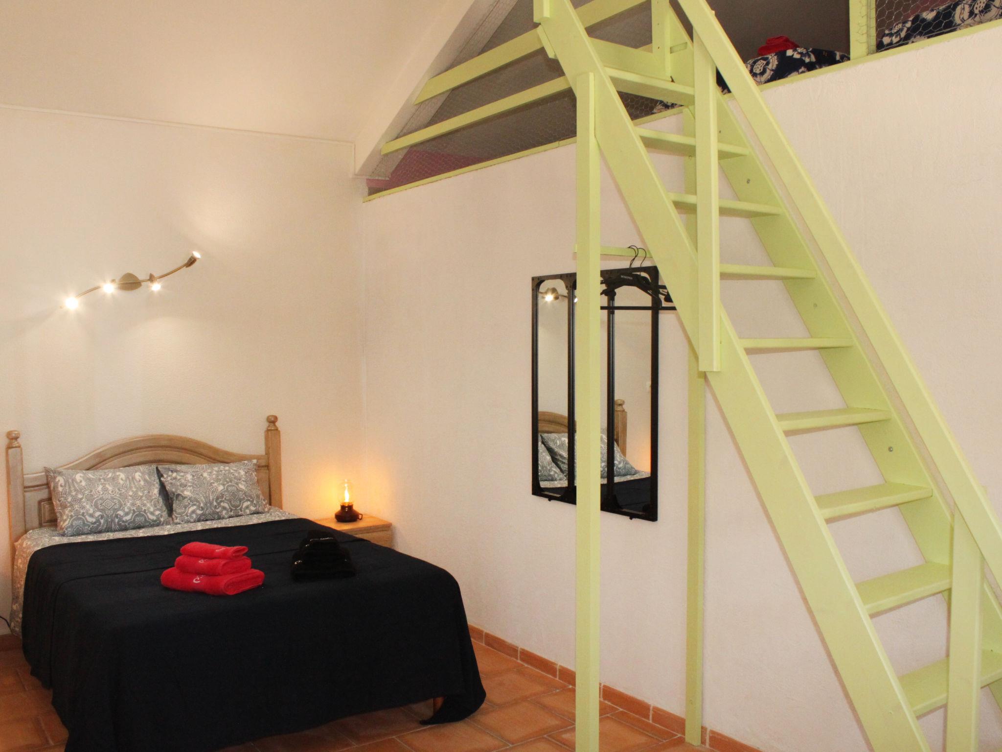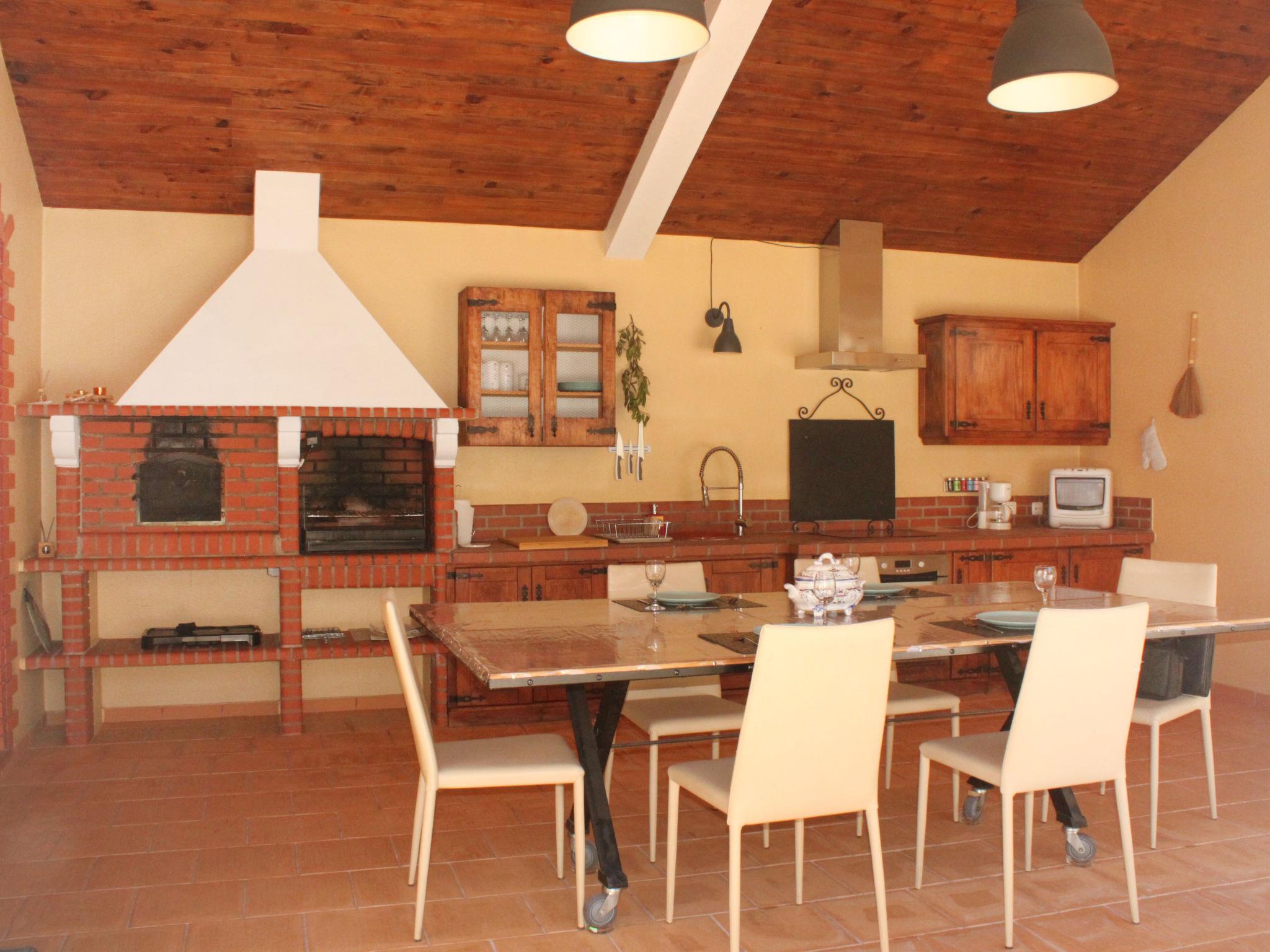 "Quinta Dahlia", 3-room semi-detached house 110 m2. Practical and rustic furnishings: walk-through room with 1 french bed (140 cm, length 200 cm). Small gallery with sloping ceilings with 2 beds (90 cm, length 195 cm). 1 room with 1 french bed (2 x 90 cm, length 200 cm). Exit to the terrace. Kitchen-/living room (oven, dishwasher, 4 ceramic glass hob hotplates, toaster, kettle, microwave, freezer, electric coffee machine, pizza oven) with Scandinavian wood stove, dining table, satellite TV and air conditioning. Exit to the terrace. Shower/WC, double hand-basin. Electric heating (extra). Heating not available in all rooms. Natural stone floors. Terrace partly roofed terrace partly roofed. Barbecue. Facilities: baby cot. Internet (WiFi, free). 132671/AL