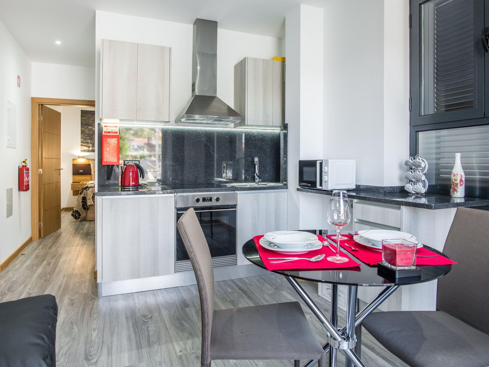 The kitchen and living room are combined. The bed is 1.60m (63in). Washing machine is available (and dryer upon request). Children up to 3 years old, do not pay for the stay and a crib is available for the baby (without extra charges). The apartments are ideal for a maximum of 3 persons, in this case, an extra bed (single - 0,80m or 31,5in) is installed in the living area of the apartment.