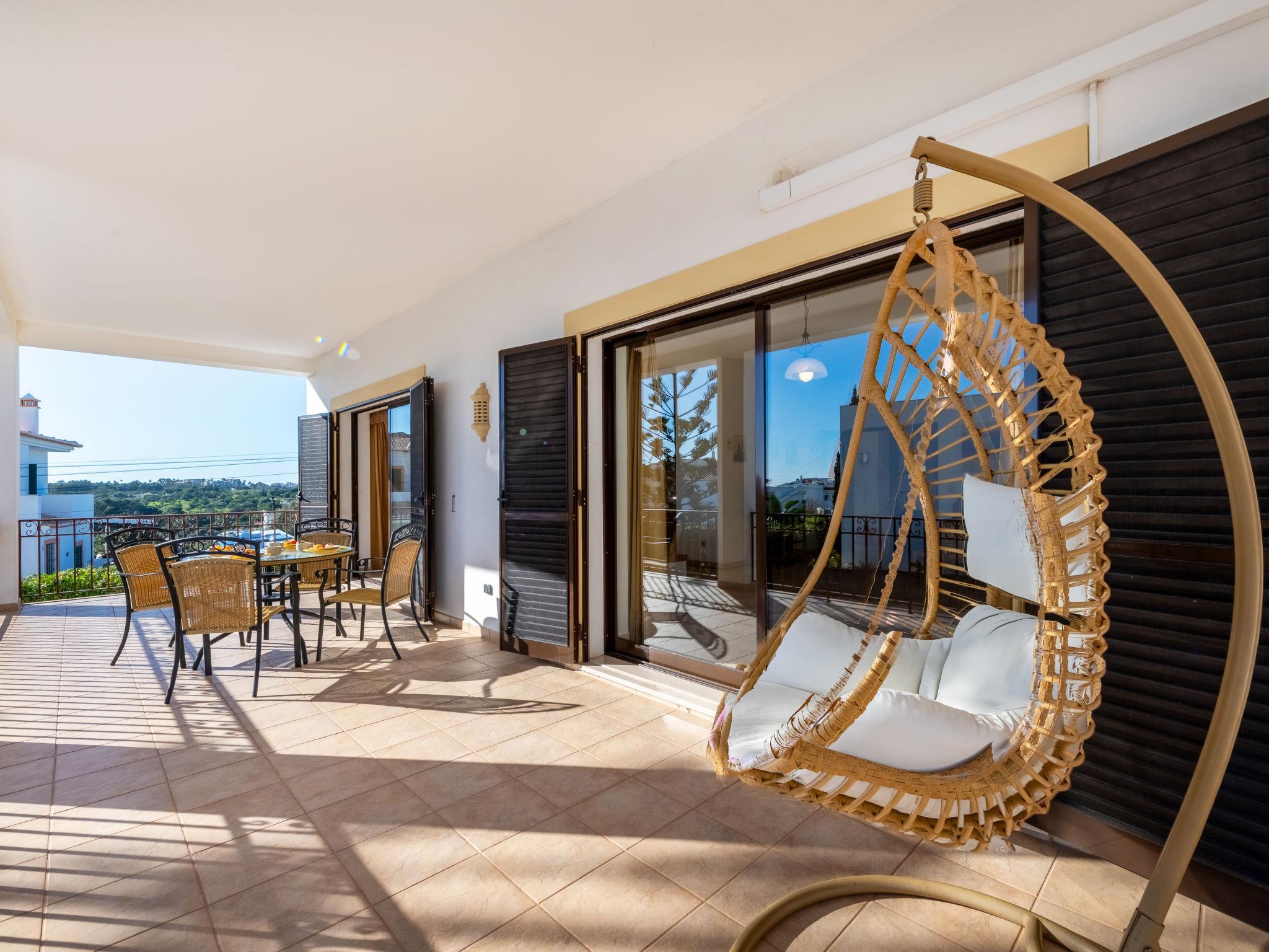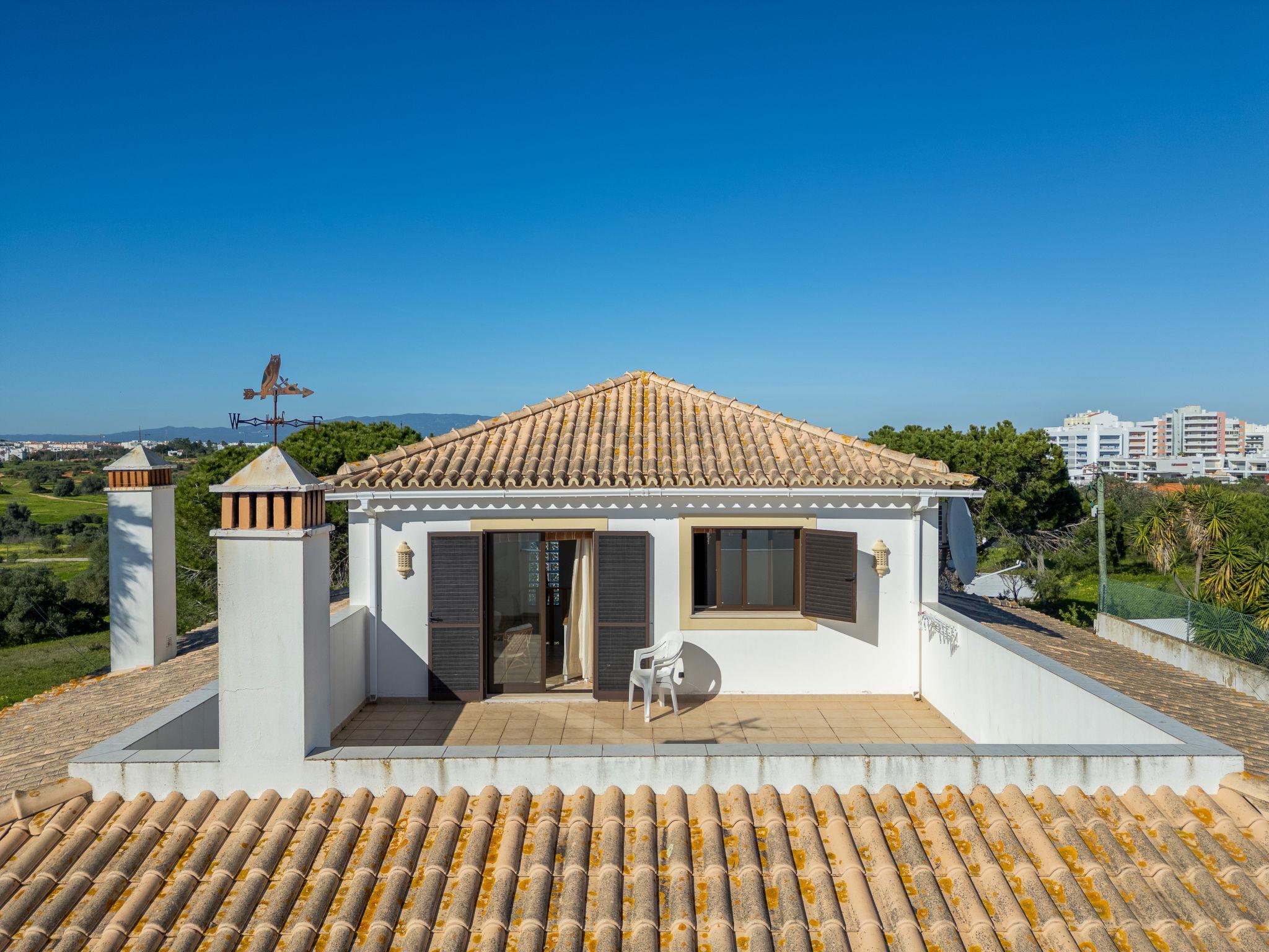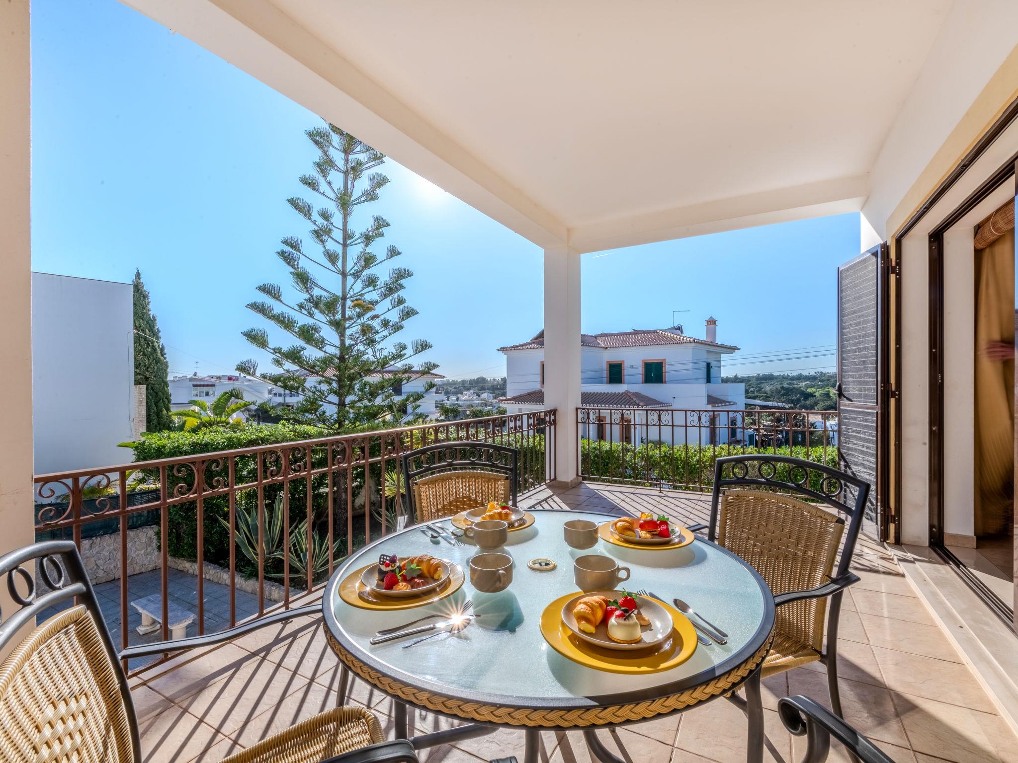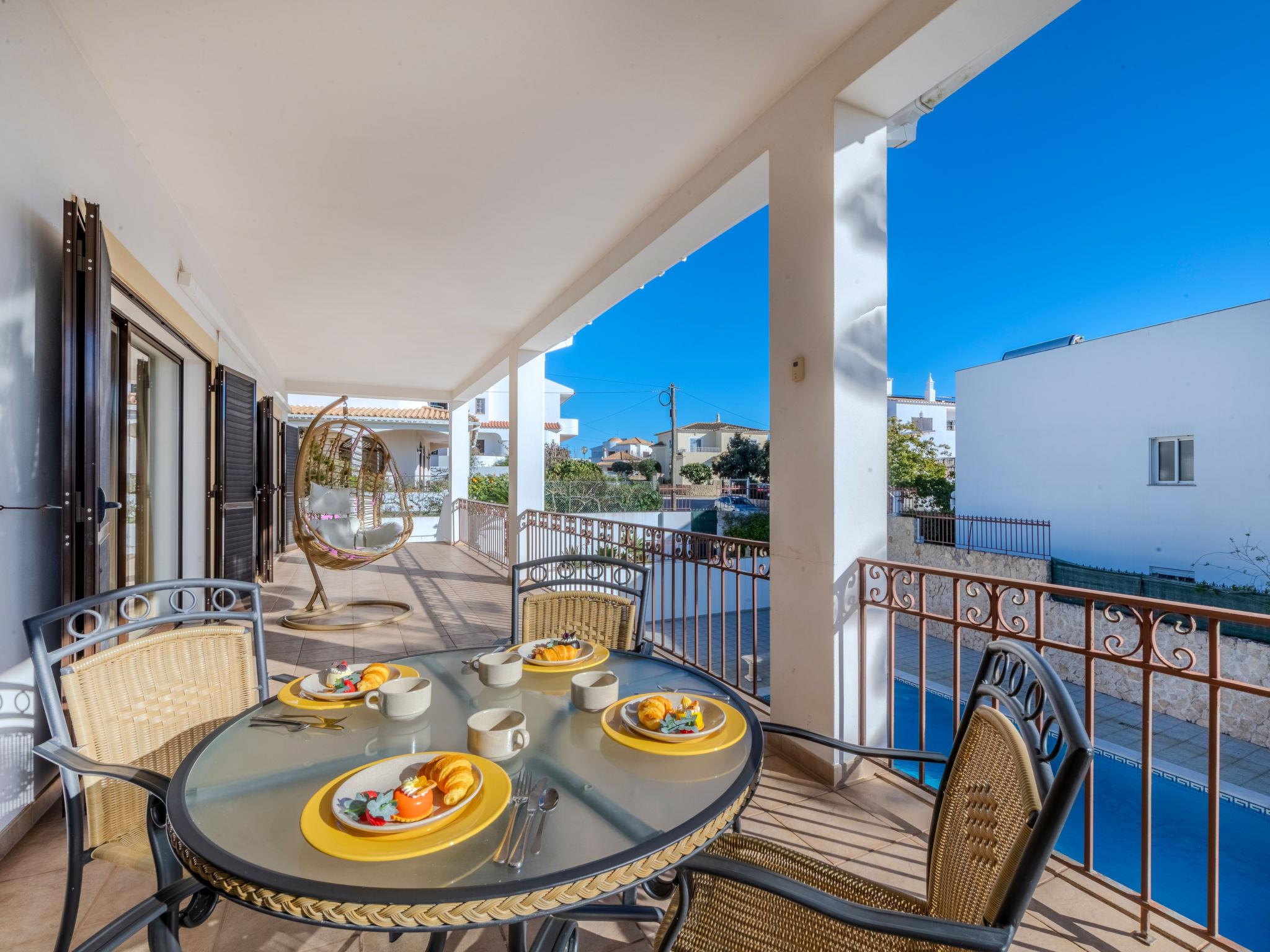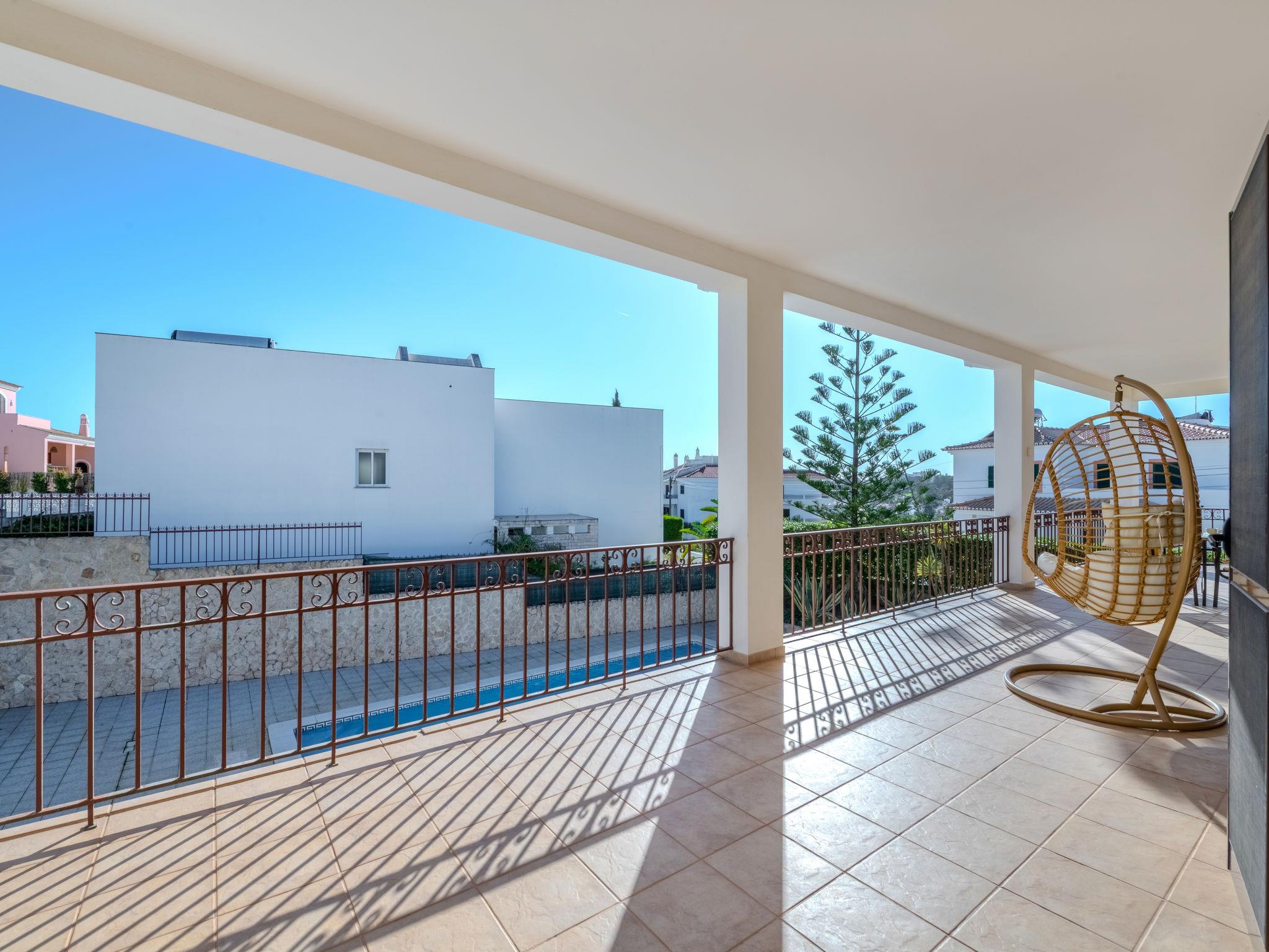 "Ninho do Mocho", 4-room house 270 m2 on 2 levels. Spacious, practical and comfortable furnishings: living/dining room with open-hearth fireplace, cable TV, flat screen, air conditioning and forced-air heating. Exit to the balcony. 1 large room with 2 beds (100 cm, length 200 cm), air conditioning and forced-air heating. Exit to the balcony. 1 room with 1 french bed (160 cm, length 200 cm). Open kitchen (oven, 4 induction hot plates, toaster, kettle, electric coffee machine, Capsules for coffee machine (Dolce Gusto) extra). 2 baths/bidet/WC, sep. WC. Underfloor heating. Heating available only from 01.11. to 31.03. Upper floor: 1 room with 2 beds (95 cm, length 195 cm), air conditioning and forced-air heating. Exit to the terrace. Shower/WC. Large balcony, large terrace, garden. Terrace furniture, deck chairs. Partial view of the sea, the swimming pool and the garden. Facilities: washing machine, dryer, iron, children's high chair, baby cot for up to 2 year olds, hair dryer. Internet (WiFi, free). Parking at the house. Maximum 1 small pet/ dog allowed. 36079/AL
