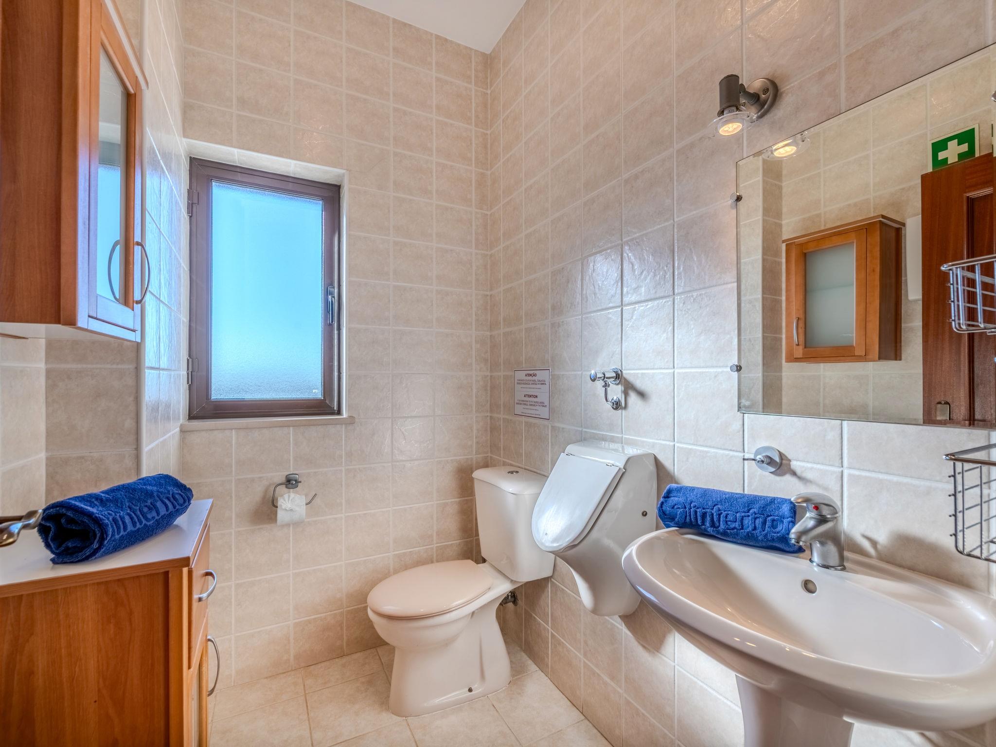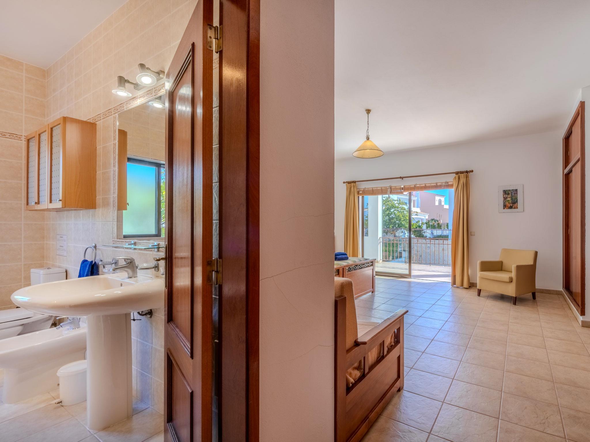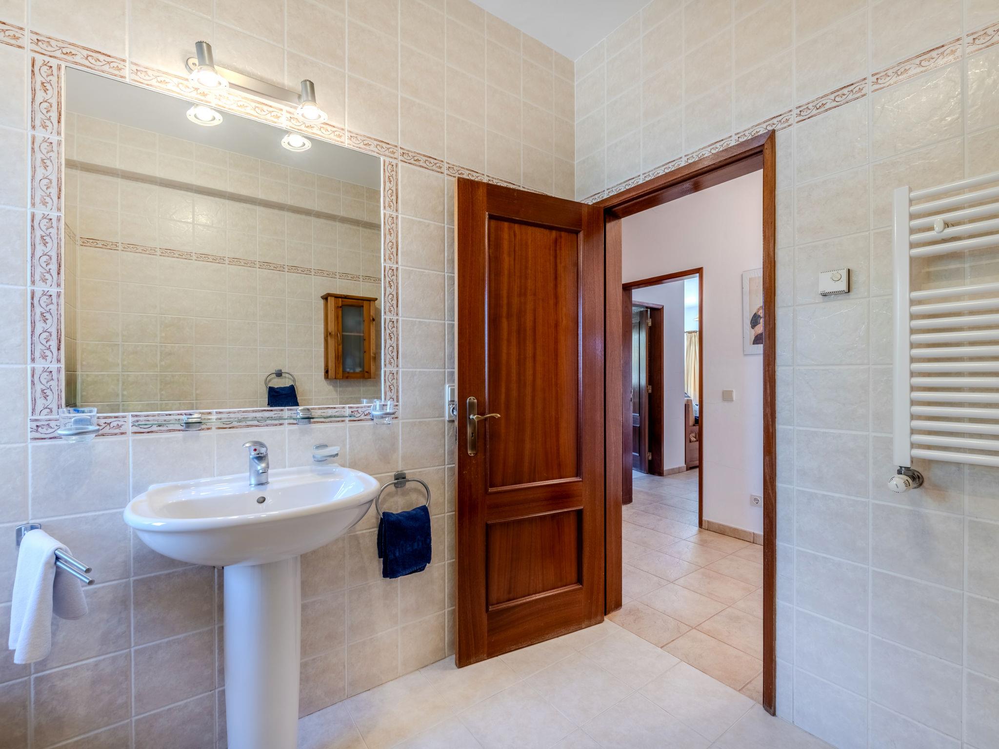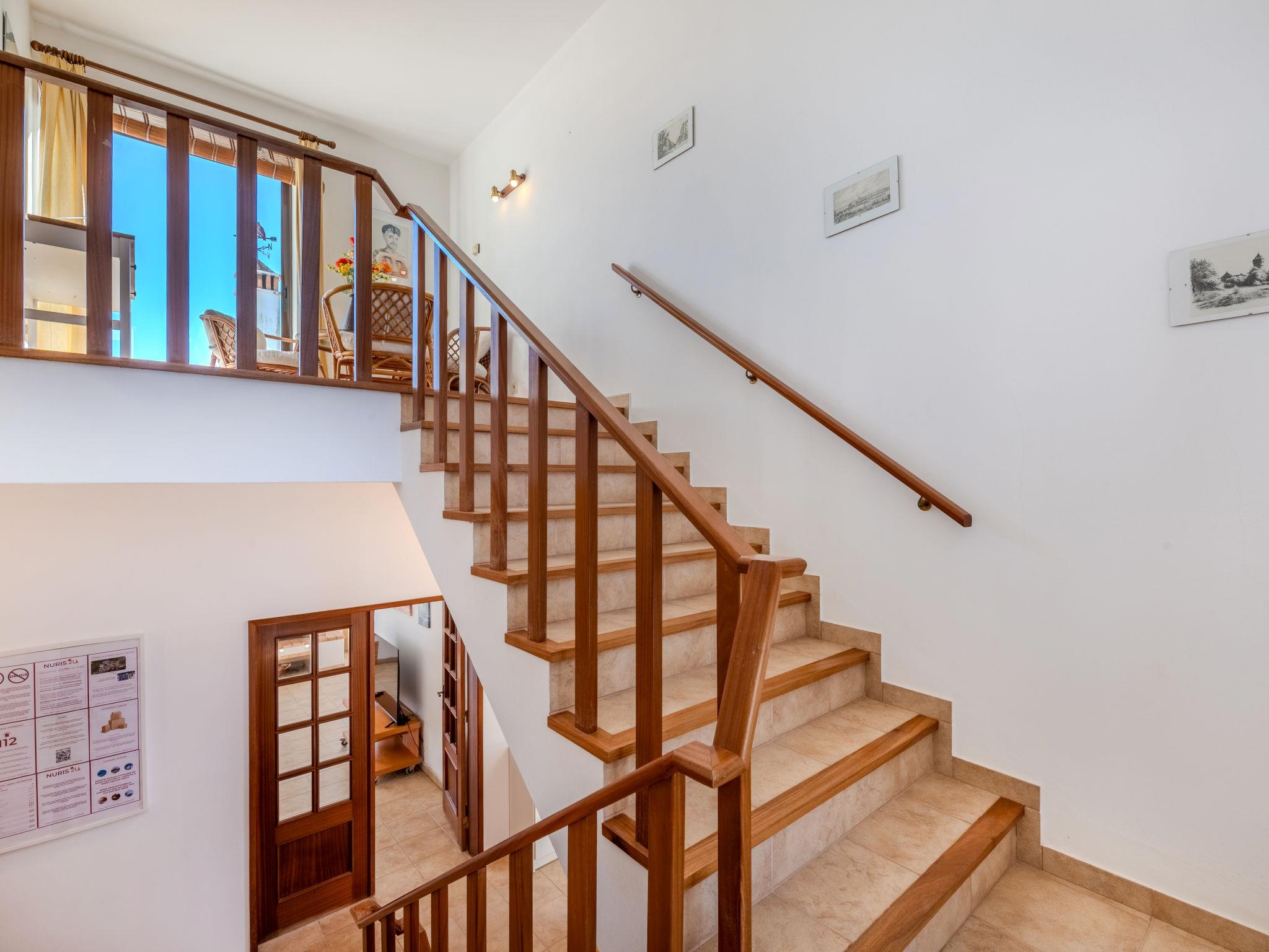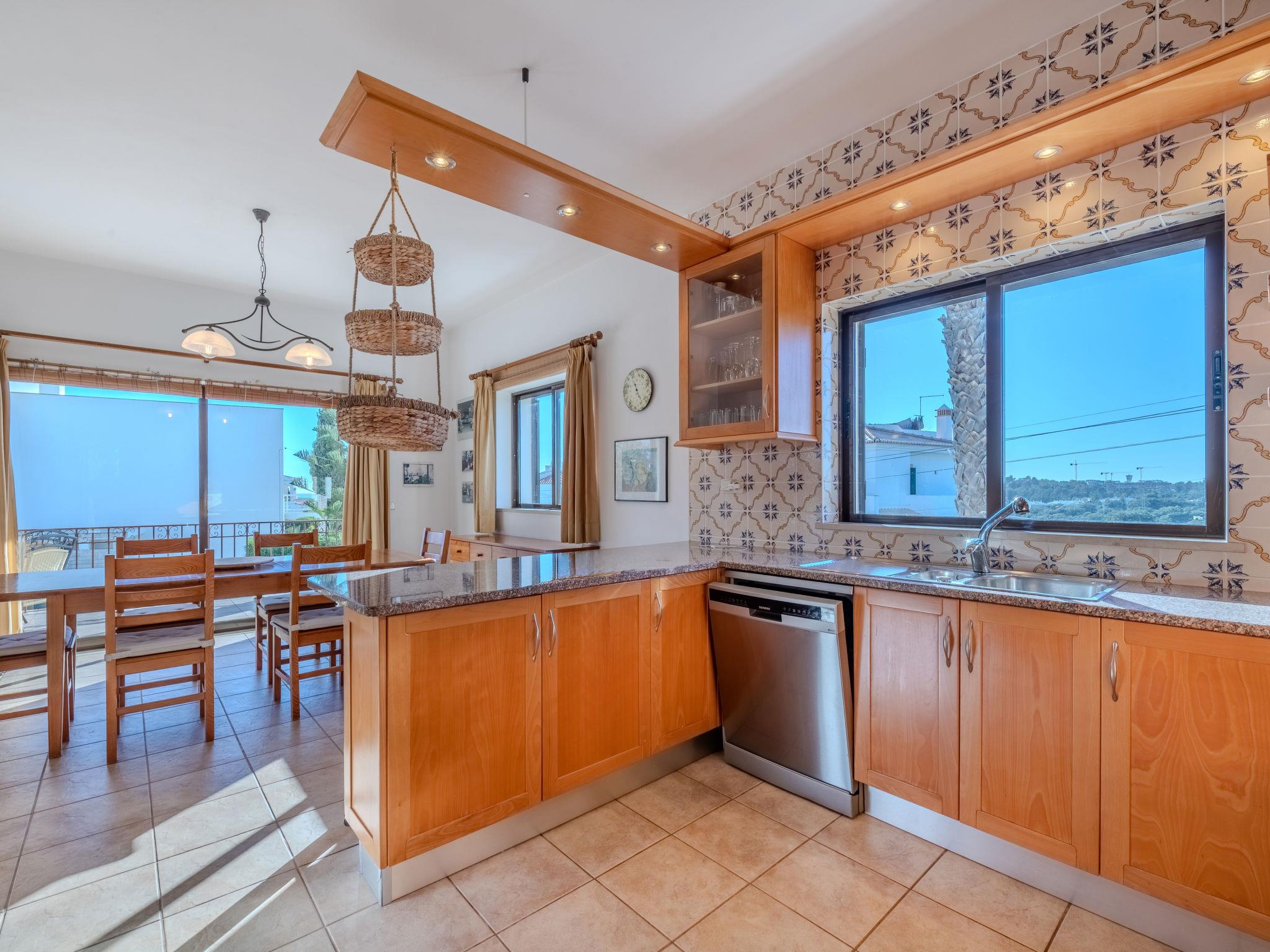"Ninho do Mocho", 4-room house 270 m2 on 2 levels. Spacious, practical and comfortable furnishings: living/dining room with open-hearth fireplace, cable TV, flat screen, air conditioning and forced-air heating. Exit to the balcony. 1 large room with 2 beds (100 cm, length 200 cm), air conditioning and forced-air heating. Exit to the balcony. 1 room with 1 french bed (160 cm, length 200 cm). Open kitchen (oven, 4 induction hot plates, toaster, kettle, electric coffee machine, Capsules for coffee machine (Dolce Gusto) extra). 2 baths/bidet/WC, sep. WC. Underfloor heating. Heating available only from 01.11. to 31.03. Upper floor: 1 room with 2 beds (95 cm, length 195 cm), air conditioning and forced-air heating. Exit to the terrace. Shower/WC. Large balcony, large terrace, garden. Terrace furniture, deck chairs. Partial view of the sea, the swimming pool and the garden. Facilities: washing machine, dryer, iron, children's high chair, baby cot for up to 2 year olds, hair dryer. Internet (WiFi, free). Parking at the house. Maximum 1 small pet/ dog allowed. 36079/AL