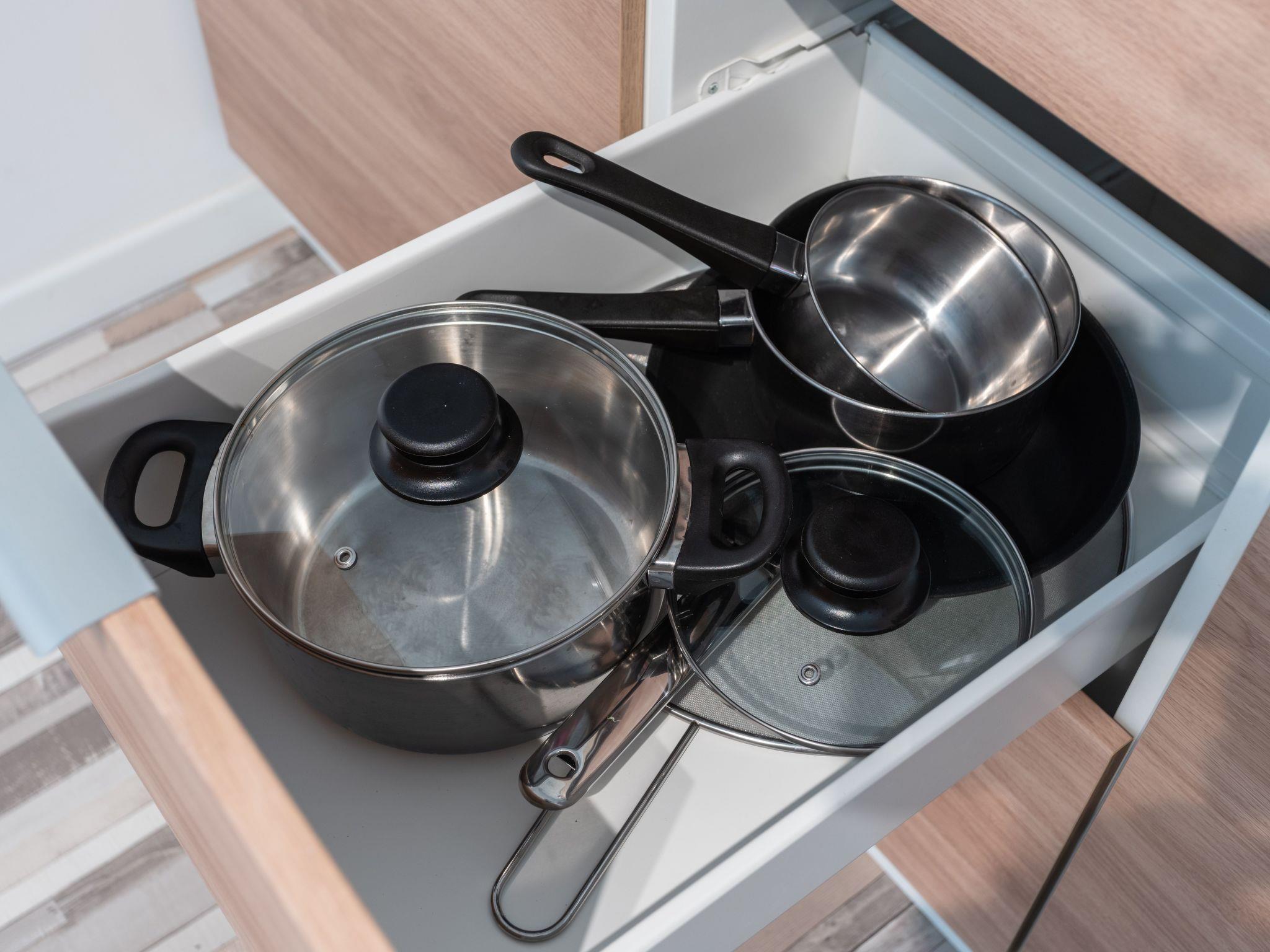 The kitchen is also equipped with modern crockery and kitchen utensils.
