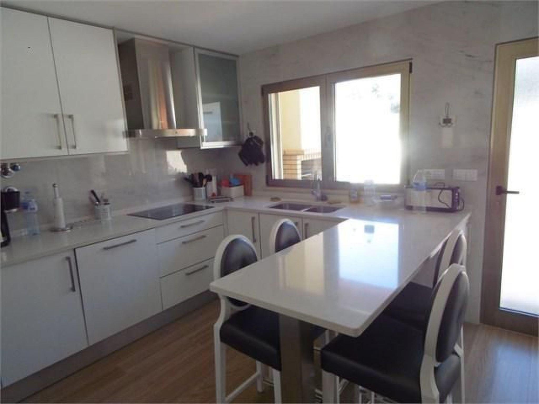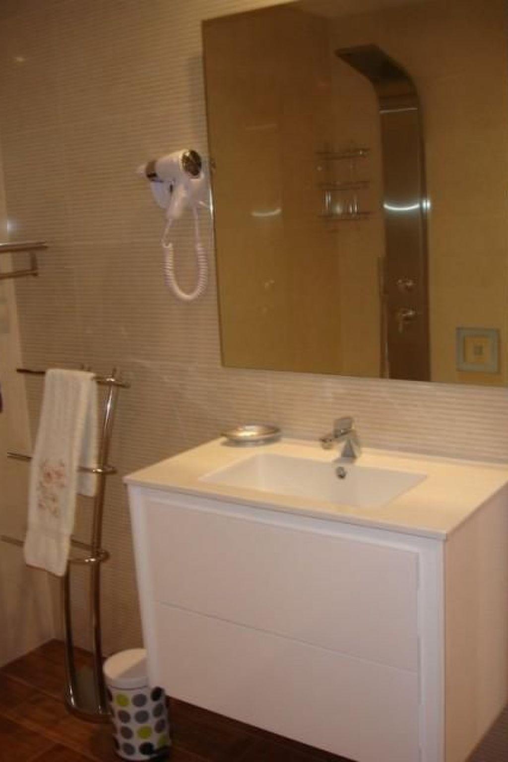 From the double bedroom (160 cm) on the first floor, you have access to an unfurnished terrace. There is also a second terrace without garden furniture on the first floor. There is a roof terrace on the second floor. There is a solar system here. There are three designer sun loungers and three PVC sun loungers at the private pool. Relax on the terrace with garden furniture: There is a garden table with six chairs, a three-seater garden sofa, two outdoor armchairs and a small table. The swimming pool is surrounded by a small garden. A barbecue is available for relaxing evenings after a day at the pool. The property is fenced and therefore ideal for children.