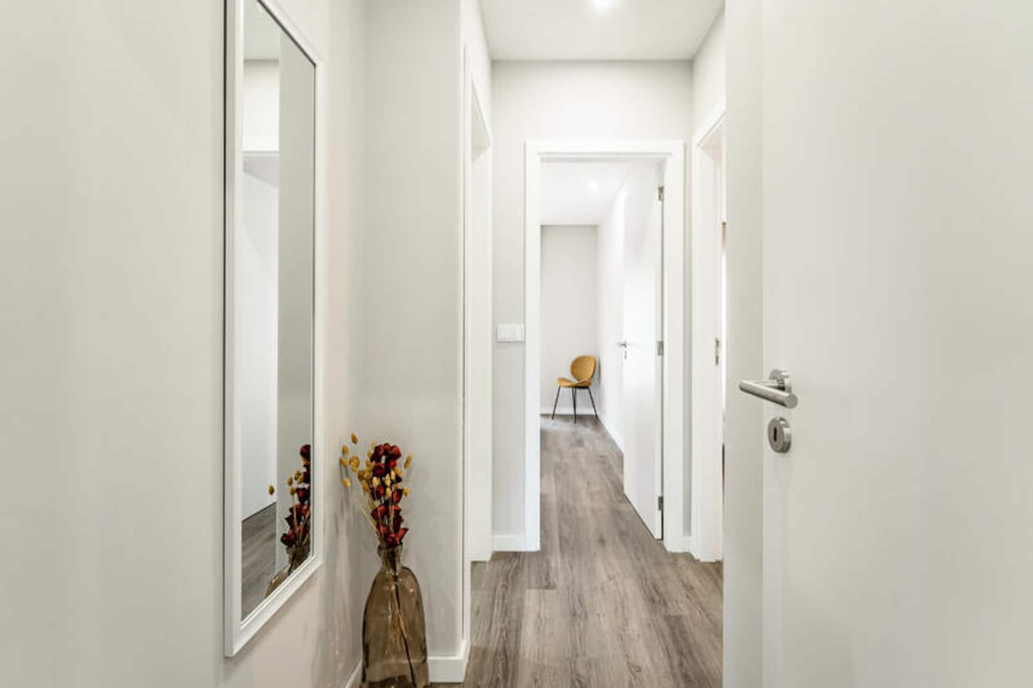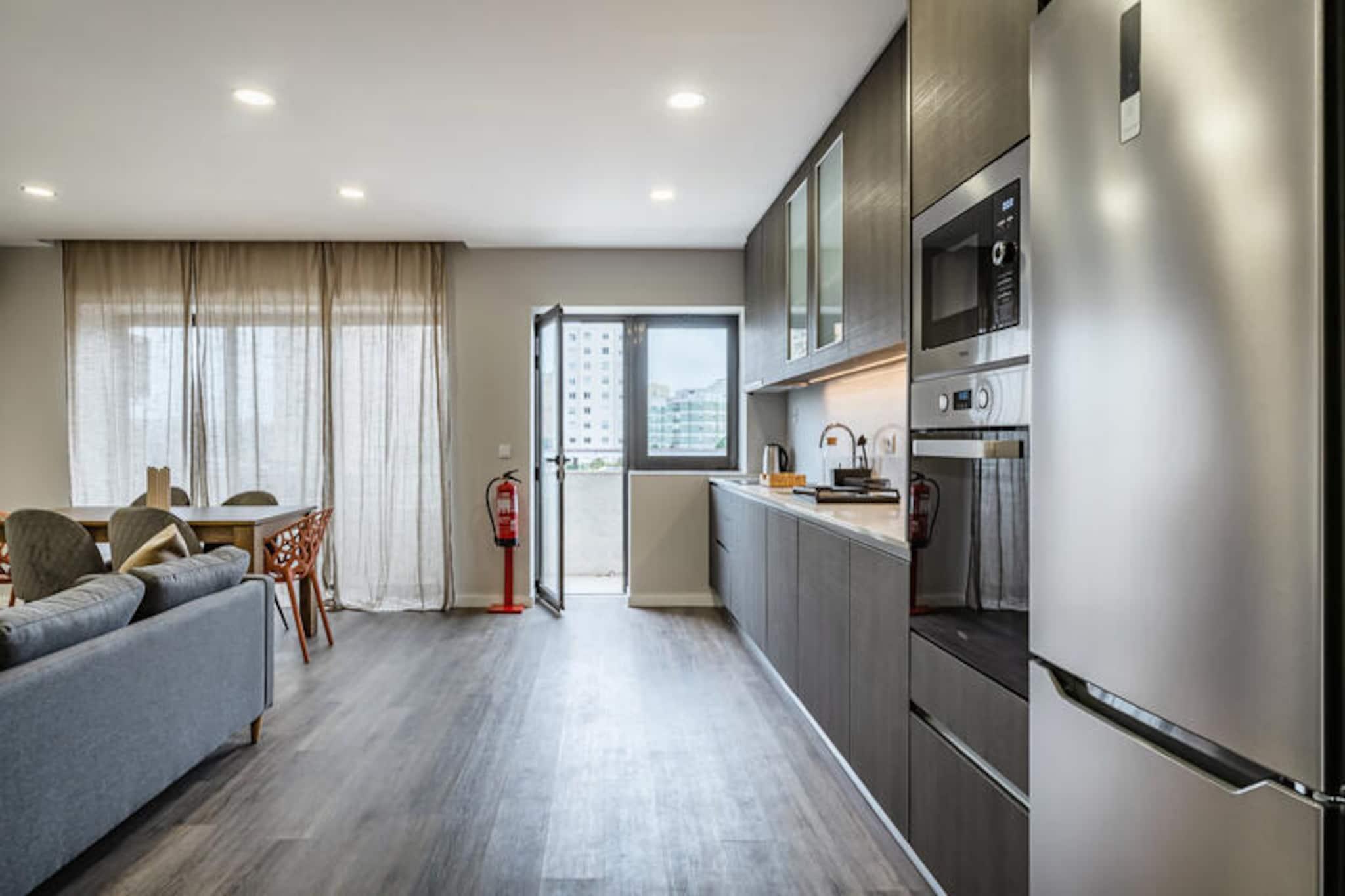 I hjärtat av pulserande Porto erbjuder denna eleganta och moderna lägenhet en lugn tillflyktsort mitt i stadens dynamiska energi. Med sin moderna design och genomtänkta bekvämligheter utgör den den perfekta basen för att utforska de kulturella och kustnära skatterna i norra Portugal. Oavsett om du är här för en stadssemester eller en längre vistelse, välkomnar denna fastighet dig med komfort och bekvämlighet. Lägenheten är 90 m² stor och har två mysiga sovrum med plats för upp till fyra gäster. Den öppna planlösningen badar i naturligt ljus, vilket skapar en varm och inbjudande atmosfär. Det fullt utrustade köket, komplett med keramikhäll, diskmaskin och kaffebryggare, gör det enkelt att laga mat hemma. Moderna bekvämligheter som Wi-Fi, luftkonditionering, satellit-TV och tvättmaskin garanterar en problemfri vistelse. Lägenheten har också en hiss för extra bekvämlighet, vilket gör den tillgänglig för alla gäster. Fastigheten ligger bara 200 meter från tunnelbane- och busstationen Casa da Música och erbjuder utmärkta förbindelser till Portos ikoniska landmärken. Inom en kort bilresa kan du nå den gyllene sanden på Matosinhos-stranden eller den karga skönheten på Foz-stranden. För golfentusiaster ligger Miramar golfbana bara 15 km bort. Den livliga stormarknaden Mercadona ligger bara 150 meter från din dörr, perfekt för att bunkra upp med lokala delikatesser. Dessutom ligger Portos historiska tågstation, Estação de Campanhã, bara 5 km bort, vilket gör dagsutflykter till närliggande regioner enkla. Oavsett om du promenerar genom Portos charmiga gator, njuter av färska skaldjur vid kusten eller njuter av en avkopplande kväll i bekvämligheten av denna välutrustade lägenhet, lovar din vistelse att bli oförglömlig. Upptäck den perfekta blandningen av urban sofistikering och kustnära charm i detta exceptionella semesterhus.