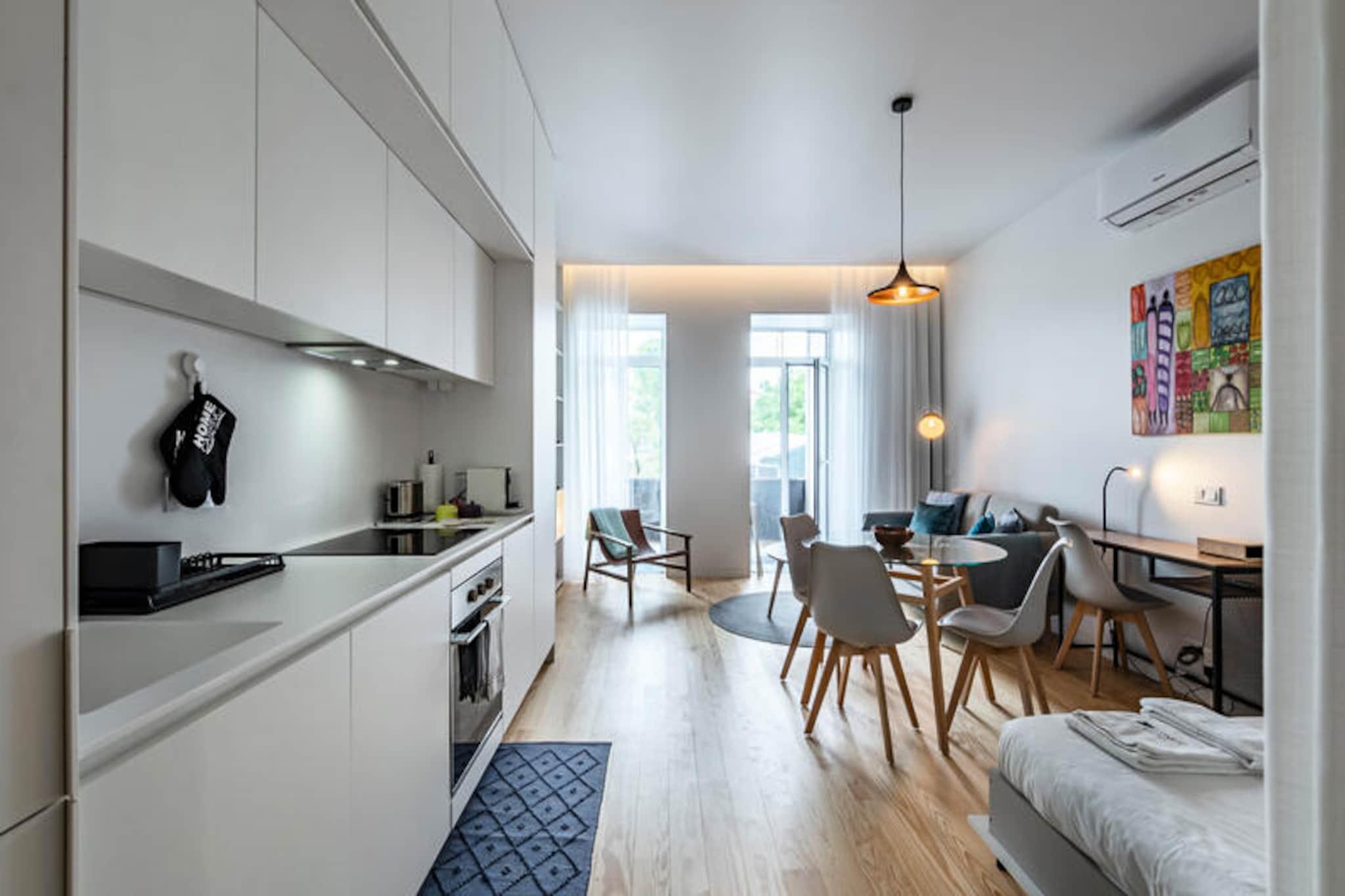 I hjärtat av Porto, där kullerstensgator möter det moderna stadslivets milda surr, erbjuder denna eleganta studiolägenhet en lugn tillflyktsort för två. Med sin fridfulla utsikt över trädgården och sitt centrala läge är det den perfekta blandningen av urban bekvämlighet och fridfull charm. Oavsett om du är här för att utforska Portos historiska skatter eller bara koppla av, är denna mysiga oas en idealisk bas. Kliv in i denna vackert designade studio på 52 m² och upptäck ett utrymme som känns både modernt och välkomnande. Lägenheten är utrustad med allt du behöver för en bekväm vistelse, inklusive luftkonditionering, Wi-Fi, en platt-TV med satellitkanaler på flera språk och ett fullt utrustat kök i öppen planlösning med keramikhäll, diskmaskin och kaffebryggare. Balkongen inbjuder dig att njuta av en lugn morgonkaffe eller ett glas vin på kvällen medan du blickar ut över den grönskande omgivningen nedanför. Genomtänkta detaljer som tvättmaskin, strykjärn och hårtork garanterar en bekymmersfri vistelse. Läget är lugnt men centralt, och du har nära till Portos ikoniska landmärken, livliga marknader och charmiga kaféer. Ta en lugn promenad till Ribeira-distriktet, beundra de vackra azulejo-kaklen på São Bento-stationen eller njut av ett glas portvin vid floden Douro. För dig som söker en blandning av kultur, gastronomi och avkoppling är denna studio din port till det bästa Porto har att erbjuda. Oavsett om du är ett par på en romantisk semester eller en ensamresenär som söker inspiration, erbjuder denna lägenhet en perfekt blandning av komfort och läge, som inbjuder dig att skapa oförglömliga minnen i en av Portugals mest förtrollande städer.