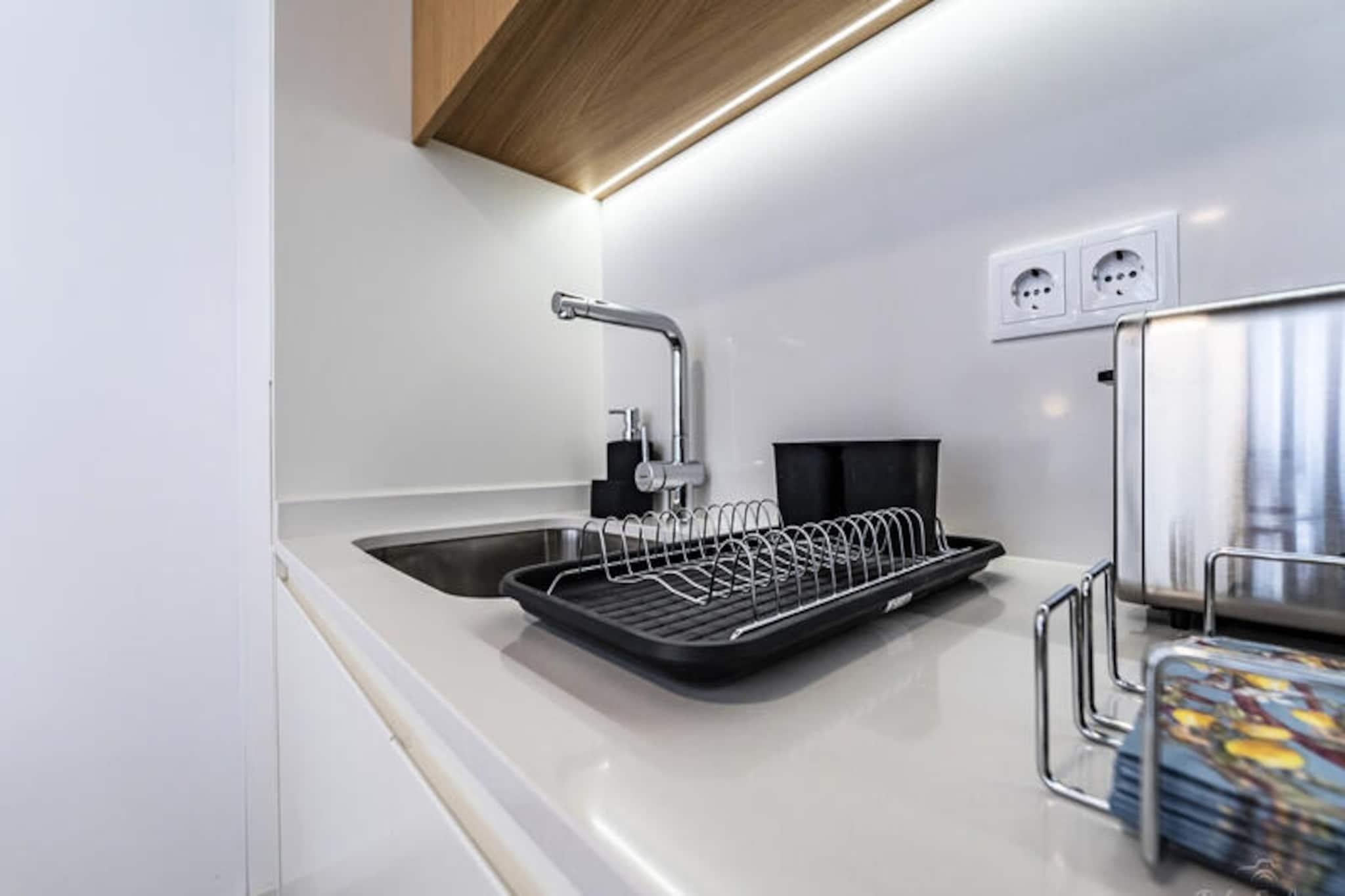 I Portos pulserande hjärta, där historisk charm möter modern bekvämlighet, erbjuder denna mysiga lägenhet en intim tillflyktsort för två. Belägen i ett livligt men lugnt område är det den perfekta basen för att utforska stadens rika kultur, ikoniska arkitektur och skönhet vid floden. Tänk dig att börja dagen med en kaffe på den privata balkongen och njuta av atmosfären i en av Portugals mest förtrollande städer. Oavsett om du är här för en romantisk semester eller en kulturell flykt, inbjuder denna lägenhet dig att uppleva Porto när den är som bäst. \n\nStig in och upptäck ett omsorgsfullt utformat utrymme på 45 m², där komfort och funktionalitet smälter samman sömlöst. Lägenheten har ett ljust sovrum med en mjuk säng, vilket garanterar vilsamma nätter efter dagar av utforskande. Köket med öppen planlösning är fullt utrustat med moderna apparater, inklusive kylskåp, mikrovågsugn, ugn och till och med diskmaskin, vilket gör det enkelt att laga mat med färska lokala ingredienser. Ytterligare bekvämligheter som Wi-Fi, luftkonditionering, tvättmaskin och satellit-TV på flera språk garanterar en bekväm och uppkopplad vistelse. \n\nPrecis utanför din dörr väntar Portos skatter. Vandra genom kullerstensgatorna för att upptäcka det ikoniska Ribeira-distriktet, beundra de intrikata azulejos på São Bento-stationen eller njut av ett glas portvin på ett kafé vid floden. Lägenhetens centrala läge ger dig också enkel tillgång till kollektivtrafik, så att du kan utforska närliggande sevärdheter som Dourodalen eller de fantastiska stränderna i Foz do Douro. \n\nOavsett om du njuter av stadens kulinariska läckerheter, utforskar dess historiska landmärken eller bara kopplar av i ditt hem hemifrån, erbjuder denna lägenhet den perfekta blandningen av avkoppling och äventyr. Låt Portos magi fängsla dig från denna charmiga tillflyktsort.