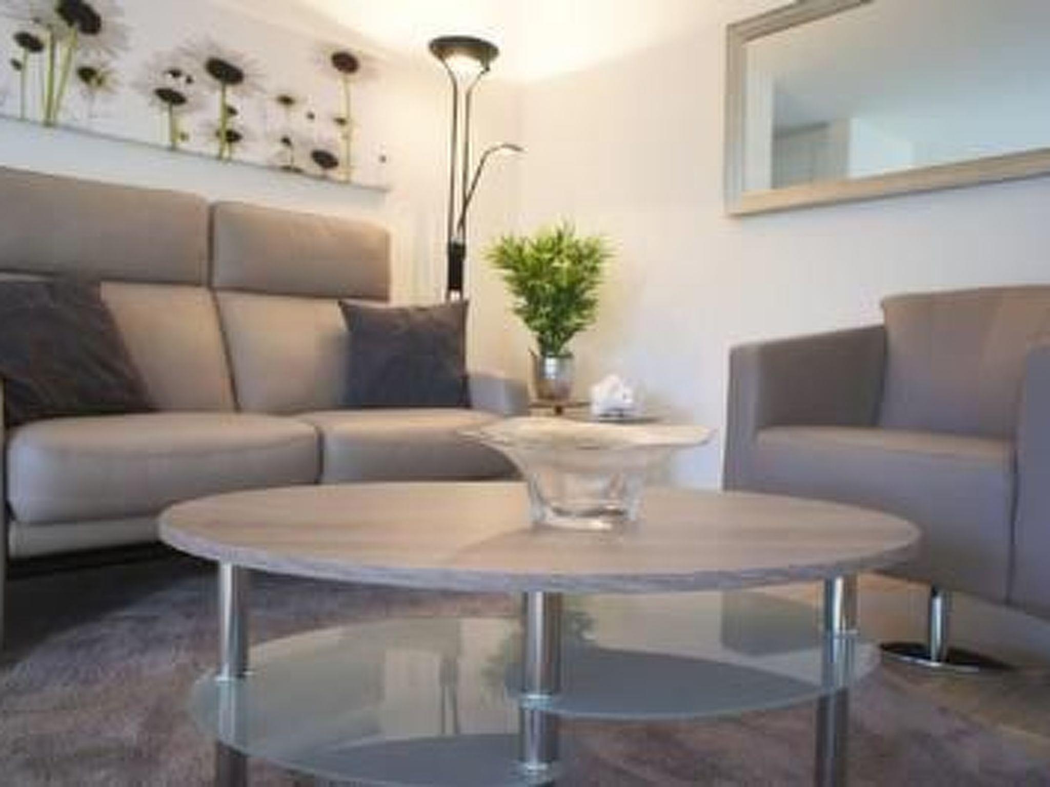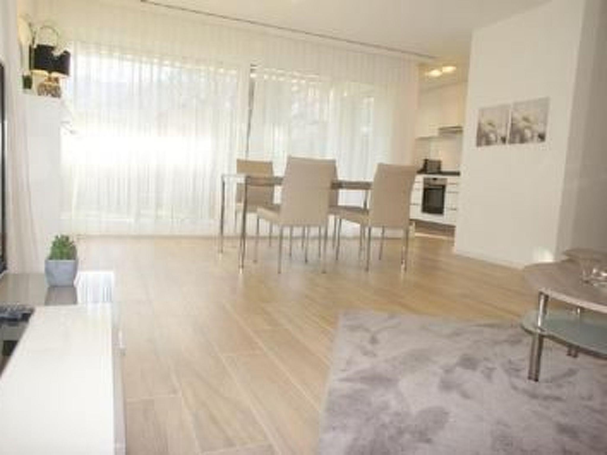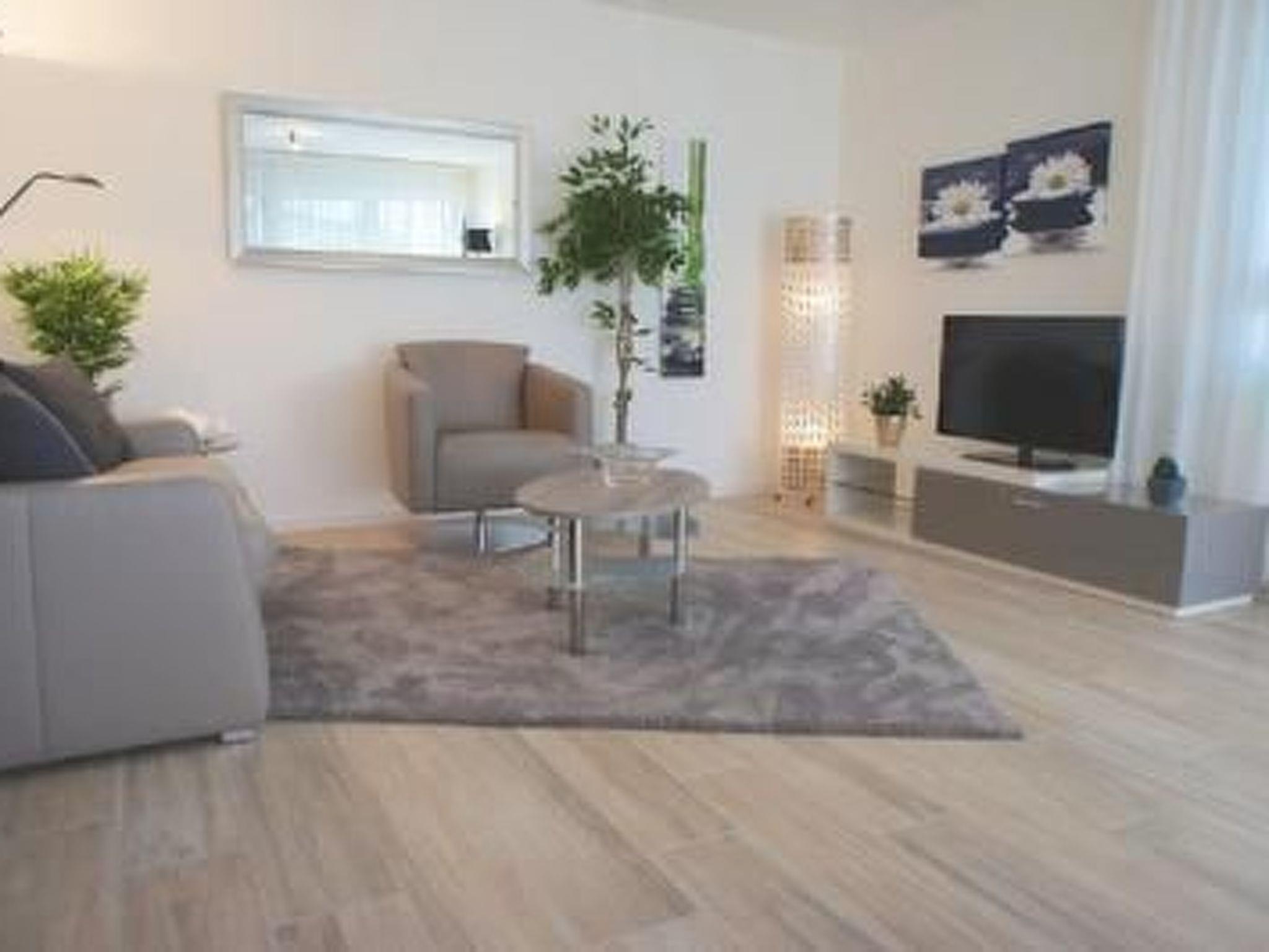The centrepiece of this charming flat is undoubtedly the living area, which not only provides plenty of light and a friendly atmosphere thanks to its generous windows, but is also equipped with a high-quality folding bed that offers additional sleeping accommodation for one guest. The high-gloss kitchen is equipped with everything your heart desires, including a coffee machine and dishwasher, to ensure you have a carefree stay. In addition, the ability to darken the bedrooms as required ensures a restful night's sleep, while the communal washing machine in the building adds to the convenience.