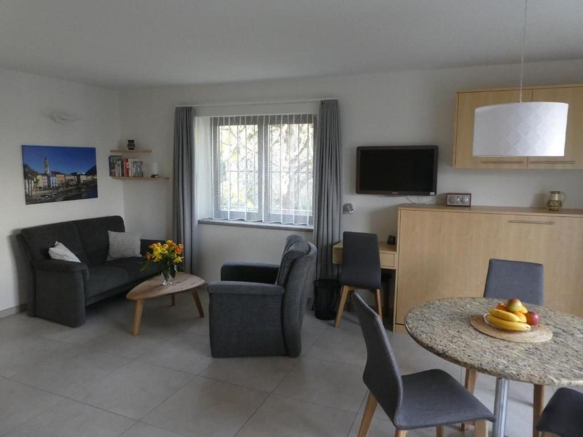 Garden flat: Cosy one-room flat with seating area (15 m2) on the east side and view of the garden. Table and deckchairs are available on the seating area. Living/bedroom with three full-size foldaway beds, a sofa, armchair and dining table. Separate kitchen, bathroom with WC, washbasin and shower. Newly designed garden in spring 2023, behind the house a large garden (800 m2), surrounded by trees and palm trees with granite table, granite bench under a pergola and barbecue area invites you to linger. This garden with table tennis table, climbing tower with slide, swing and sandpit is also an ideal playground for children. In spring 2023, we redesigned the garden (raising the terrain, reseeding the lawn, pergola). The garden is now accessible via a footpath directly from the public car park. Bicycles, trailers and pushchairs can be parked in the garden in a wooden garage with a charging socket.